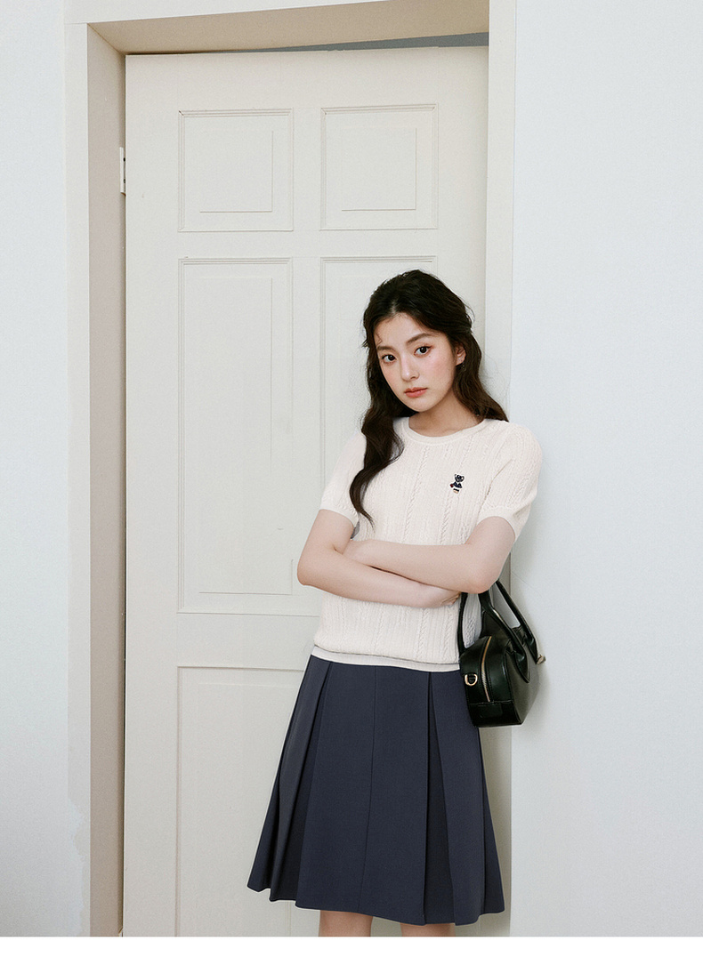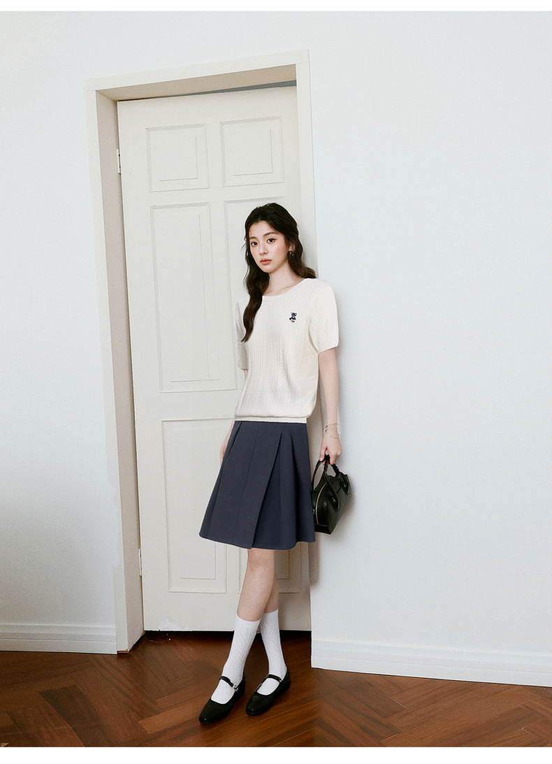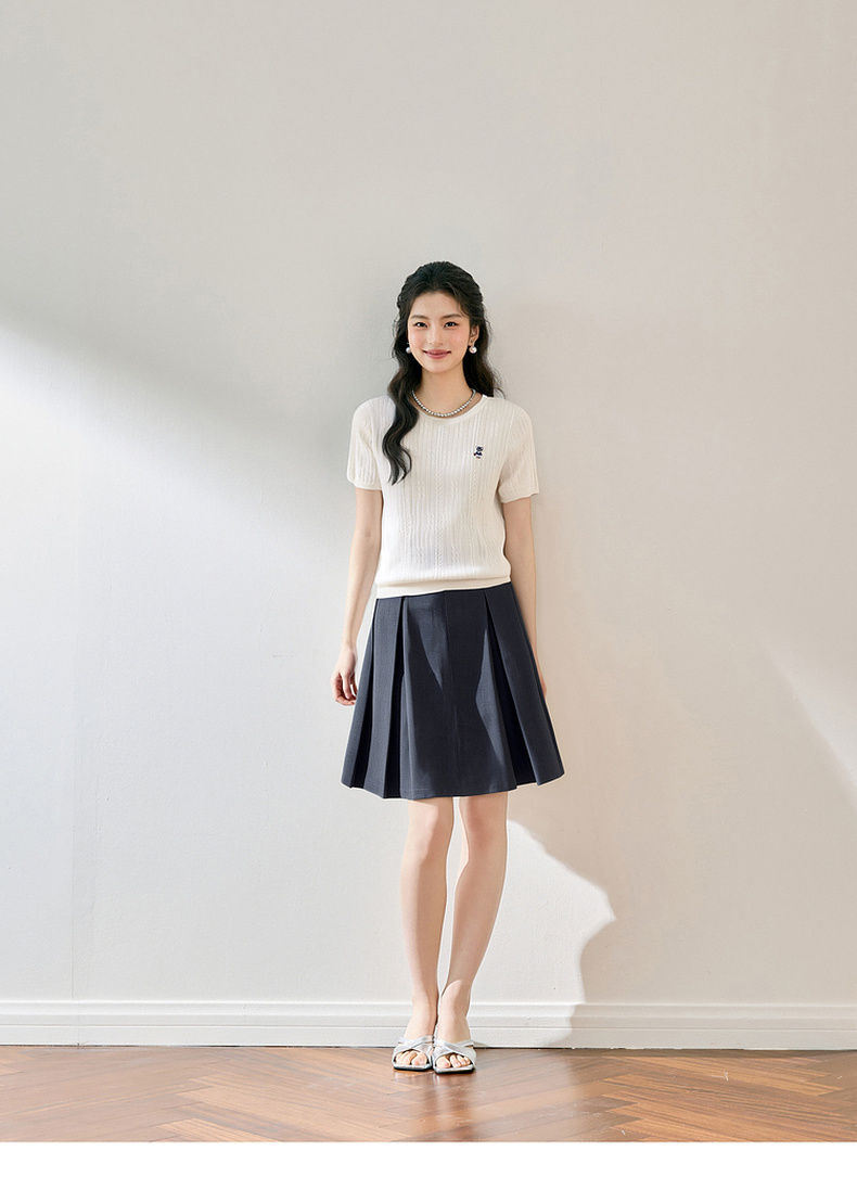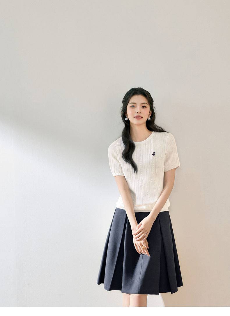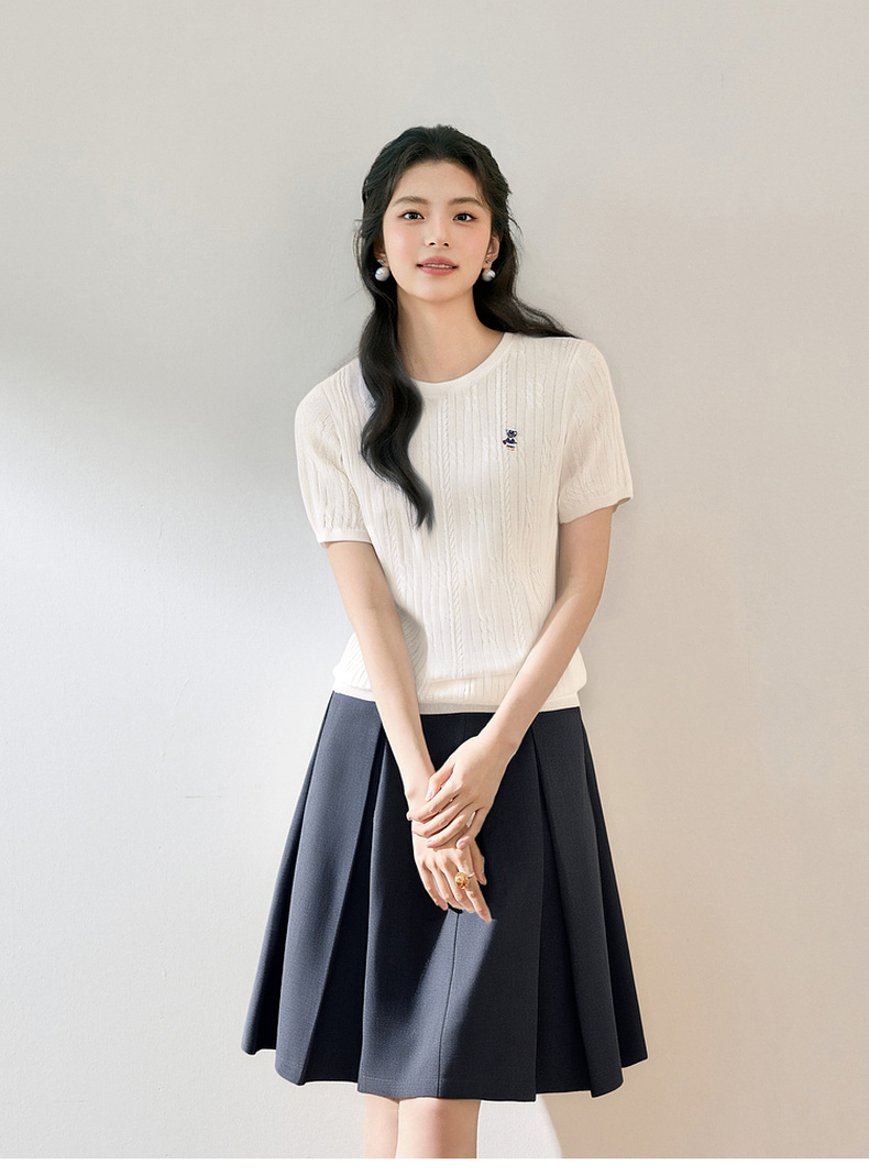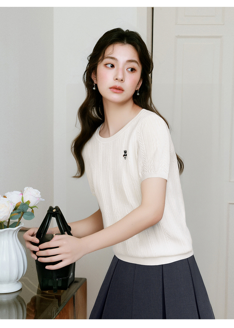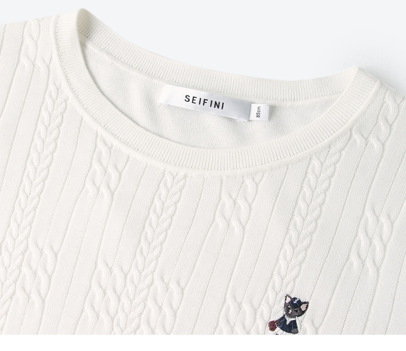【商场同款】【萌宠系列】诗凡黎猫咪刺绣圆领针织衫2025夏短袖上衣3G4630931