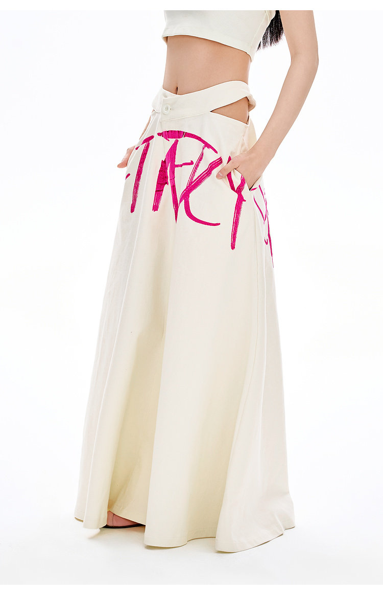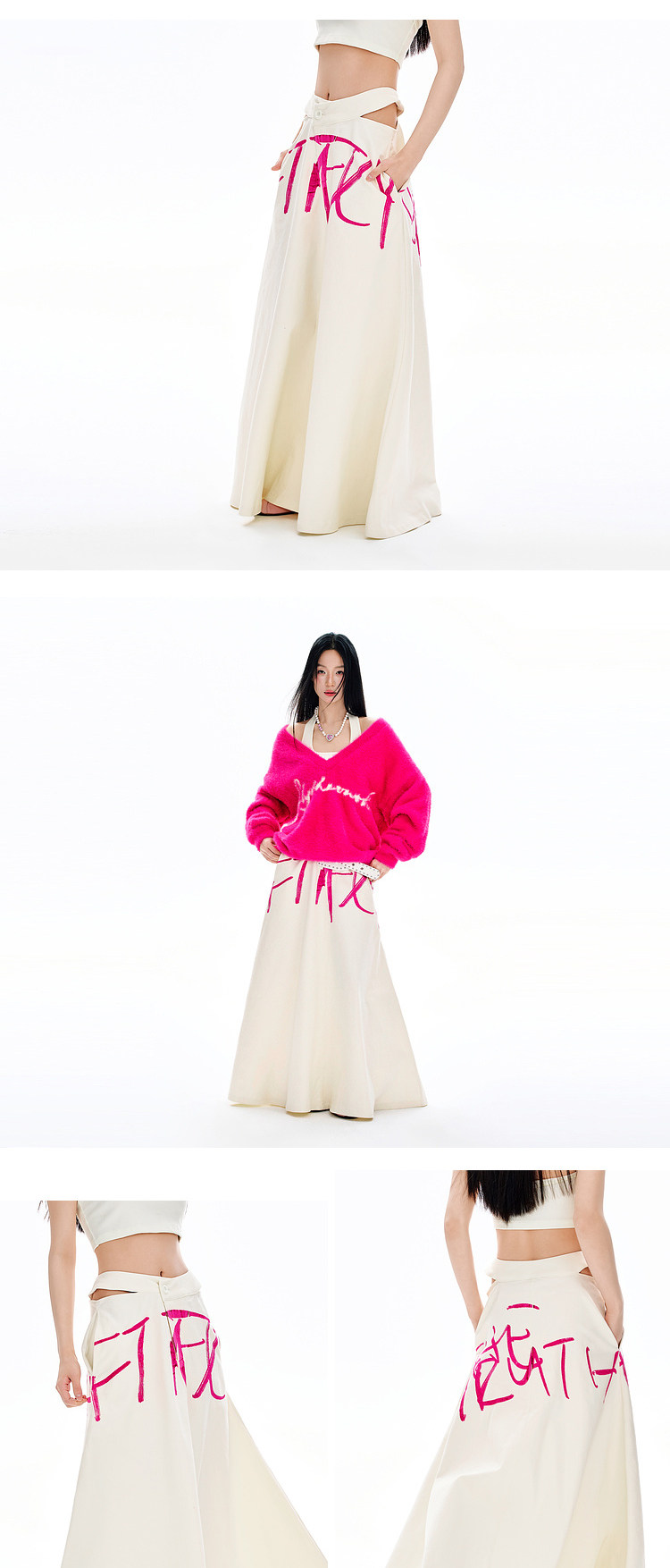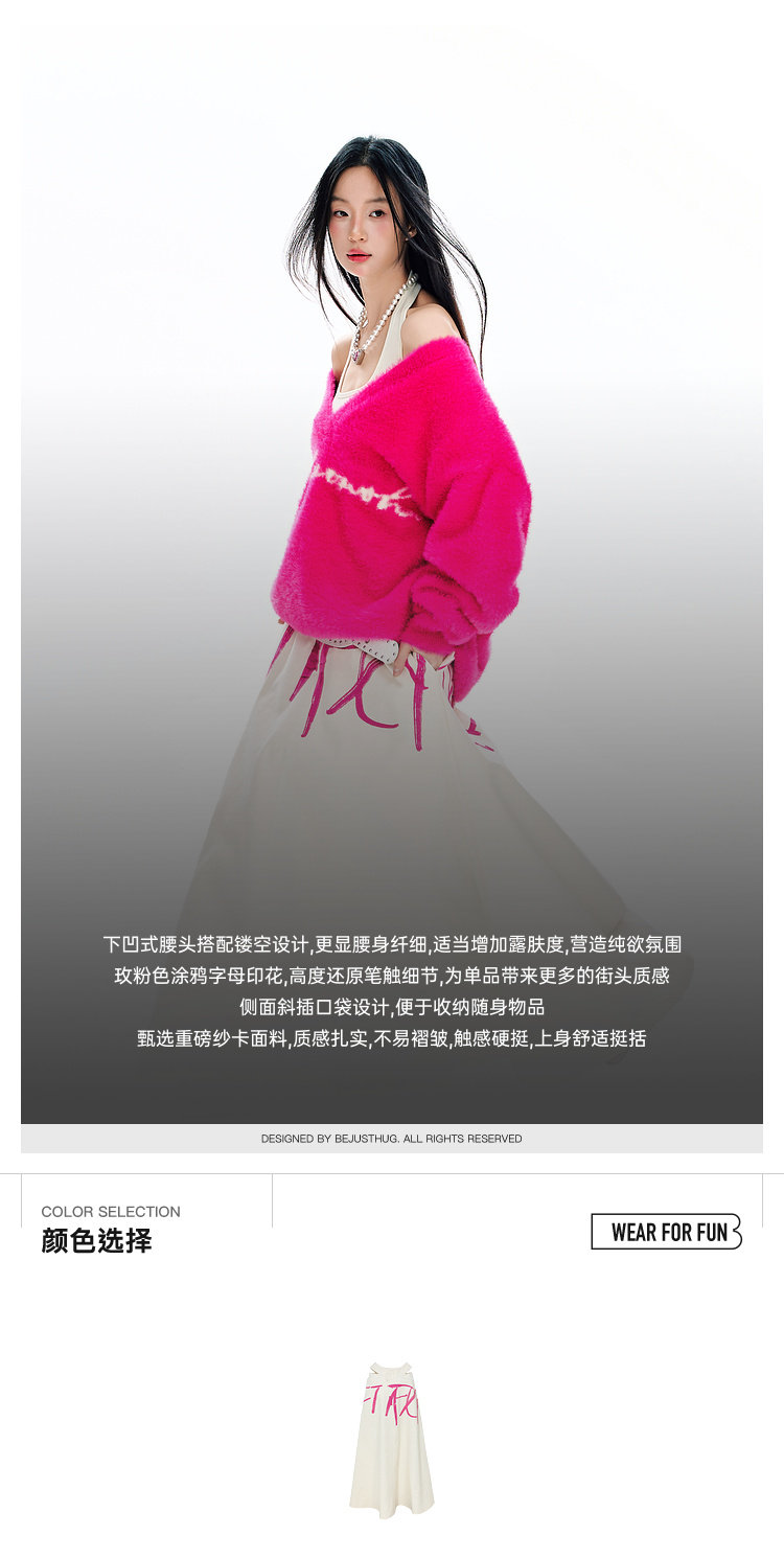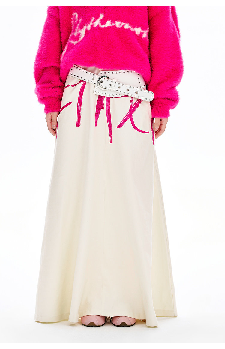 FTT FlyTheTruth 长款高腰半身裙女春季气质潮流粉色字母印花伞裙