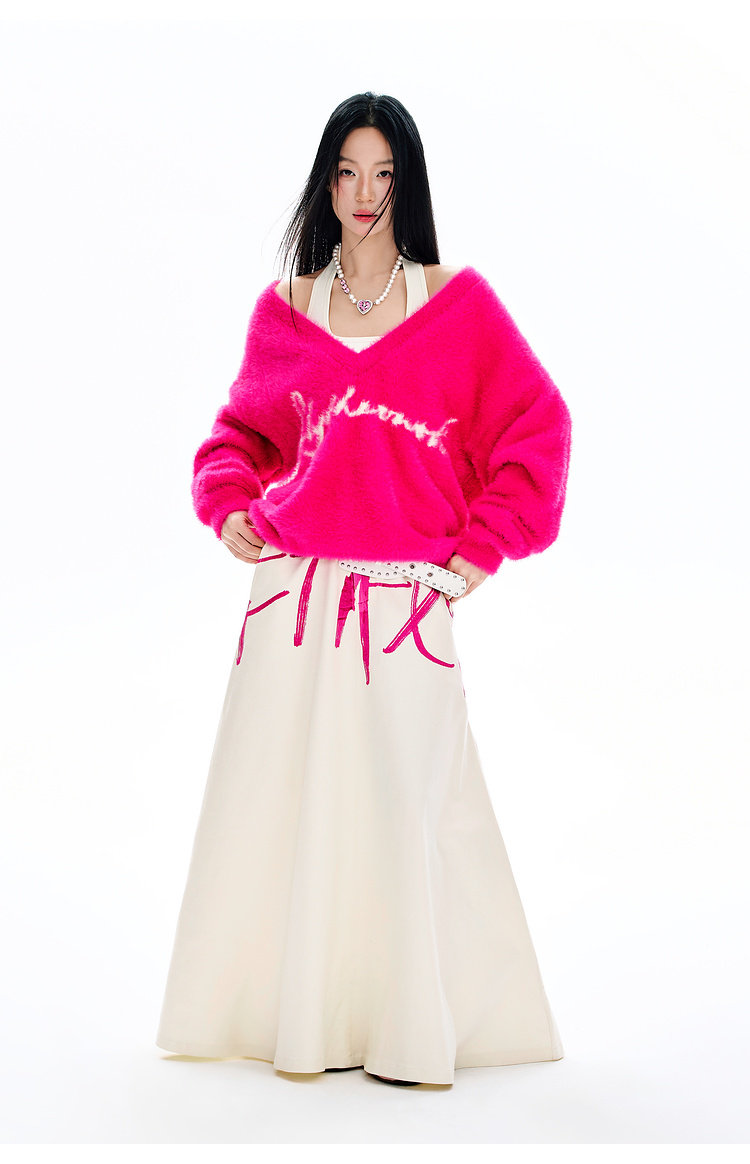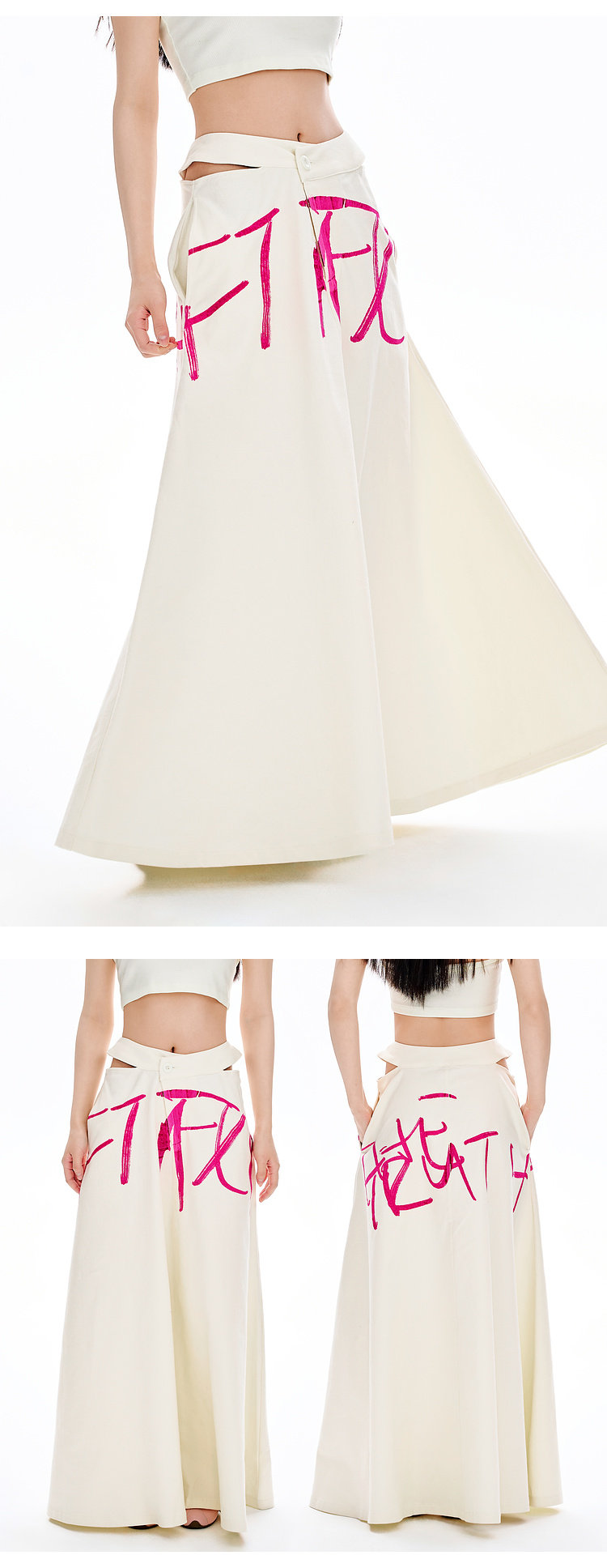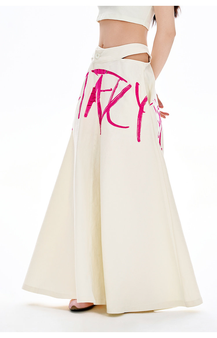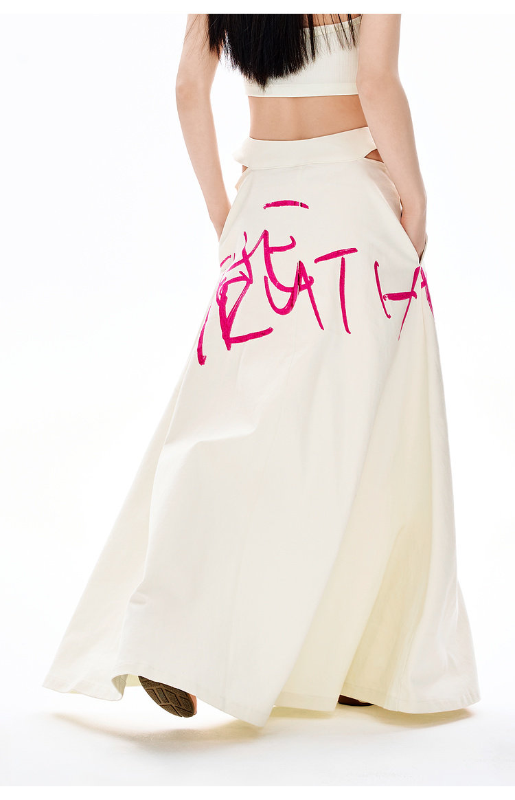 FTT FlyTheTruth 长款高腰半身裙女春季气质潮流粉色字母印花伞裙