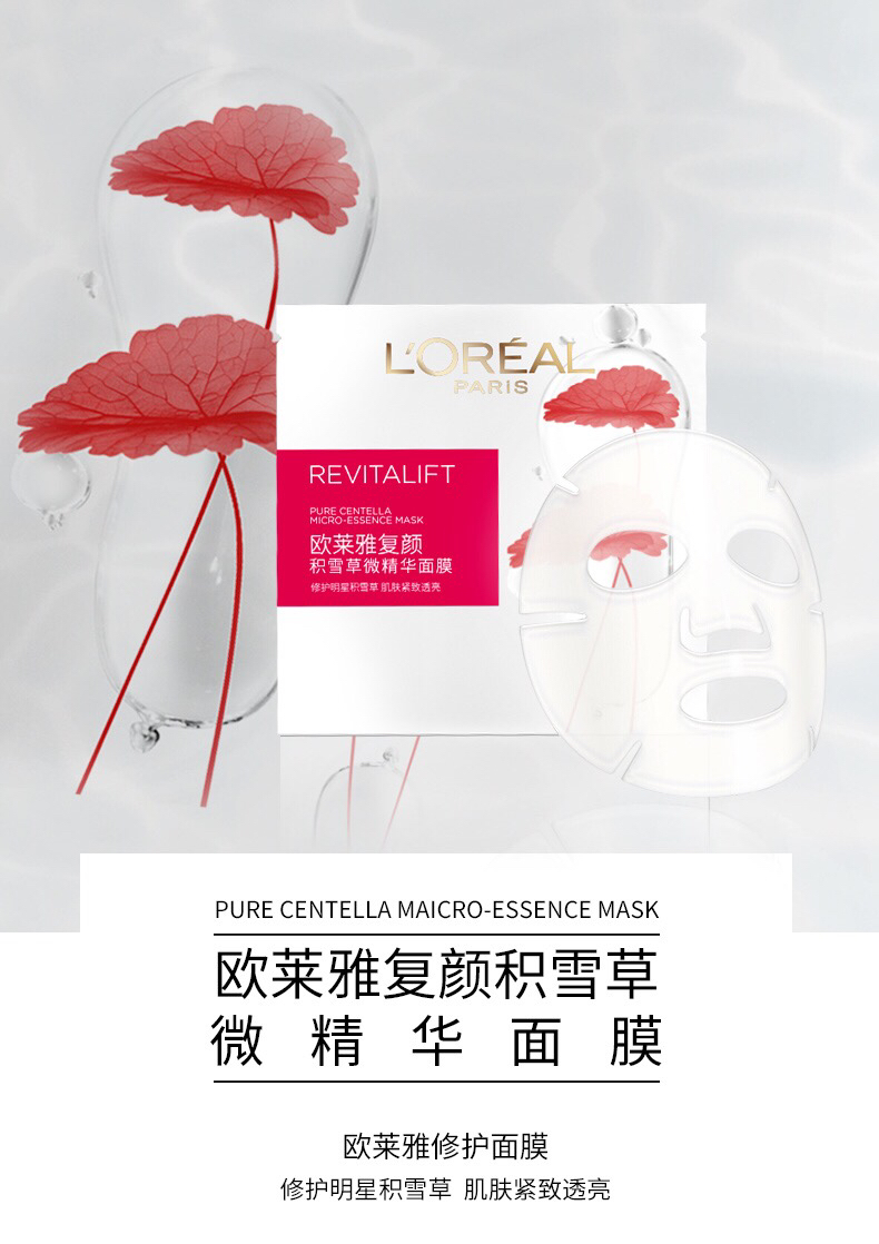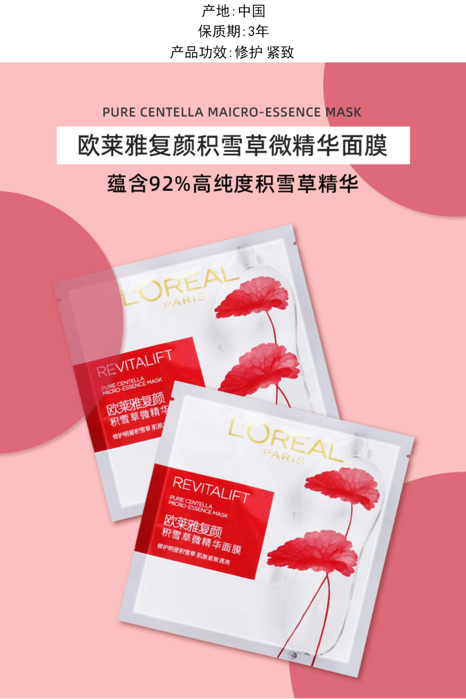 欧莱雅复颜积雪草微精华面膜-补水保湿淡纹修-15片-金卡会员6折