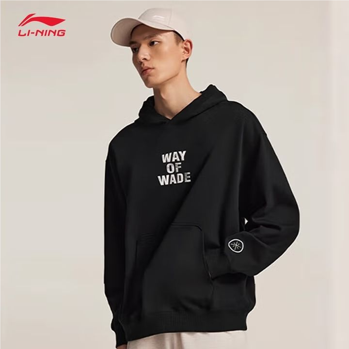 李宁男子2025秋季套头印花连帽运动上衣健身卫衣AWDV259-1