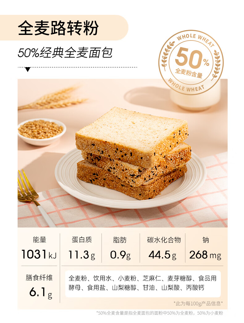 【分仓直发包邮】七年五季芝麻吐司602g*2袋
