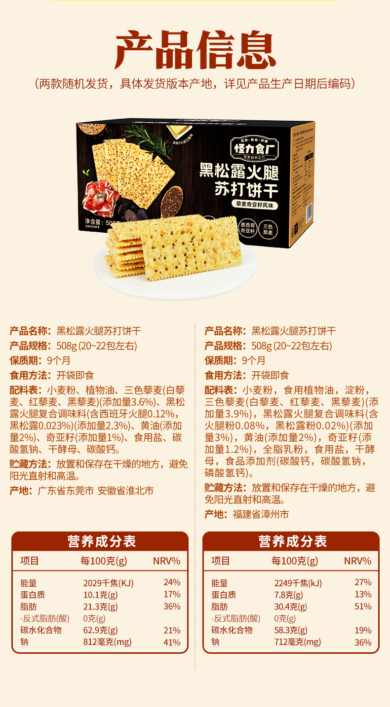 【苏打饼干(三个口味)丨黑松露火腿+玛格丽特+牛油果鳕鱼】非油炸,恒温慢培!轻薄酥脆,咸香浓郁!0反式脂肪酸,配料干净!随时随地,一口解馋!508g!