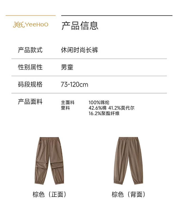 英氏儿童裤子男童长裤针织束脚裤春夏新款休闲长裤YRKCJ1S009A