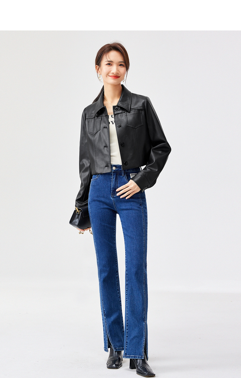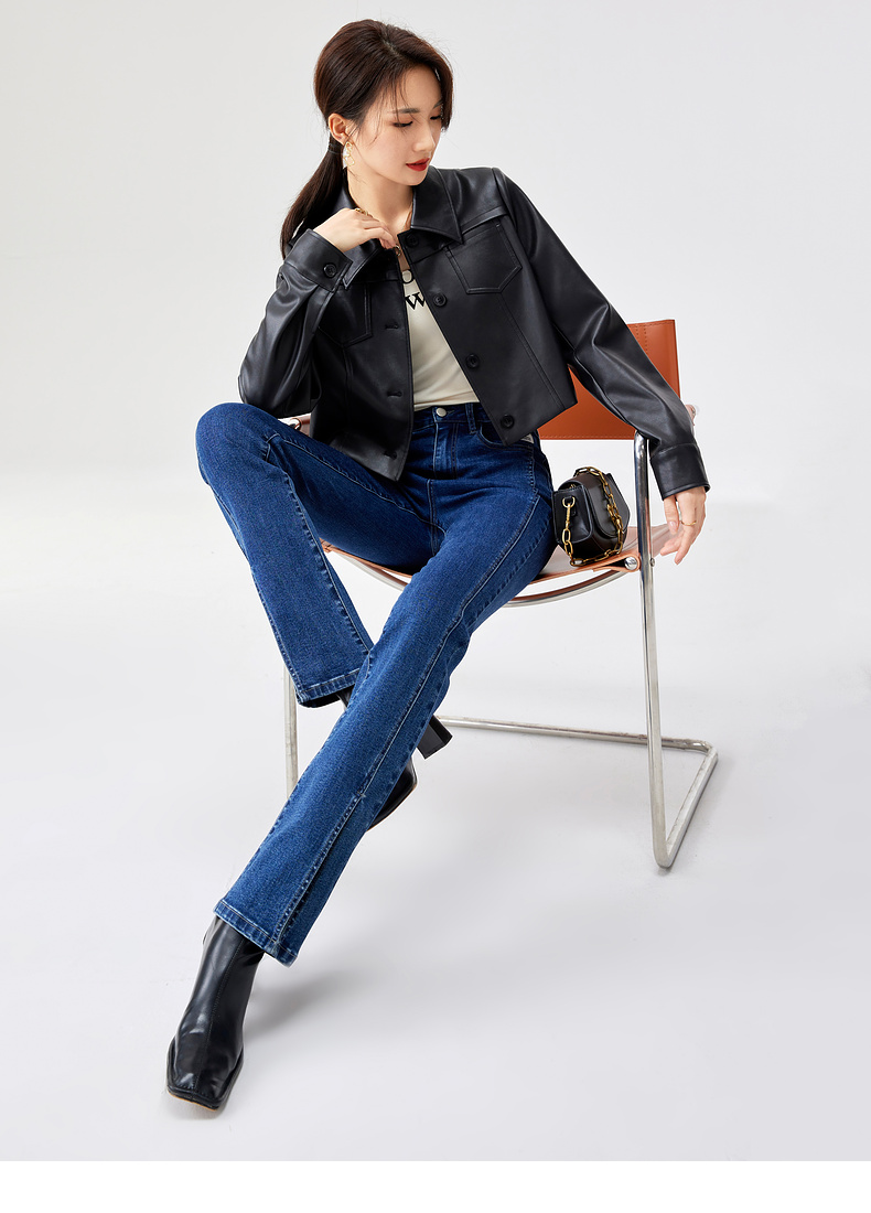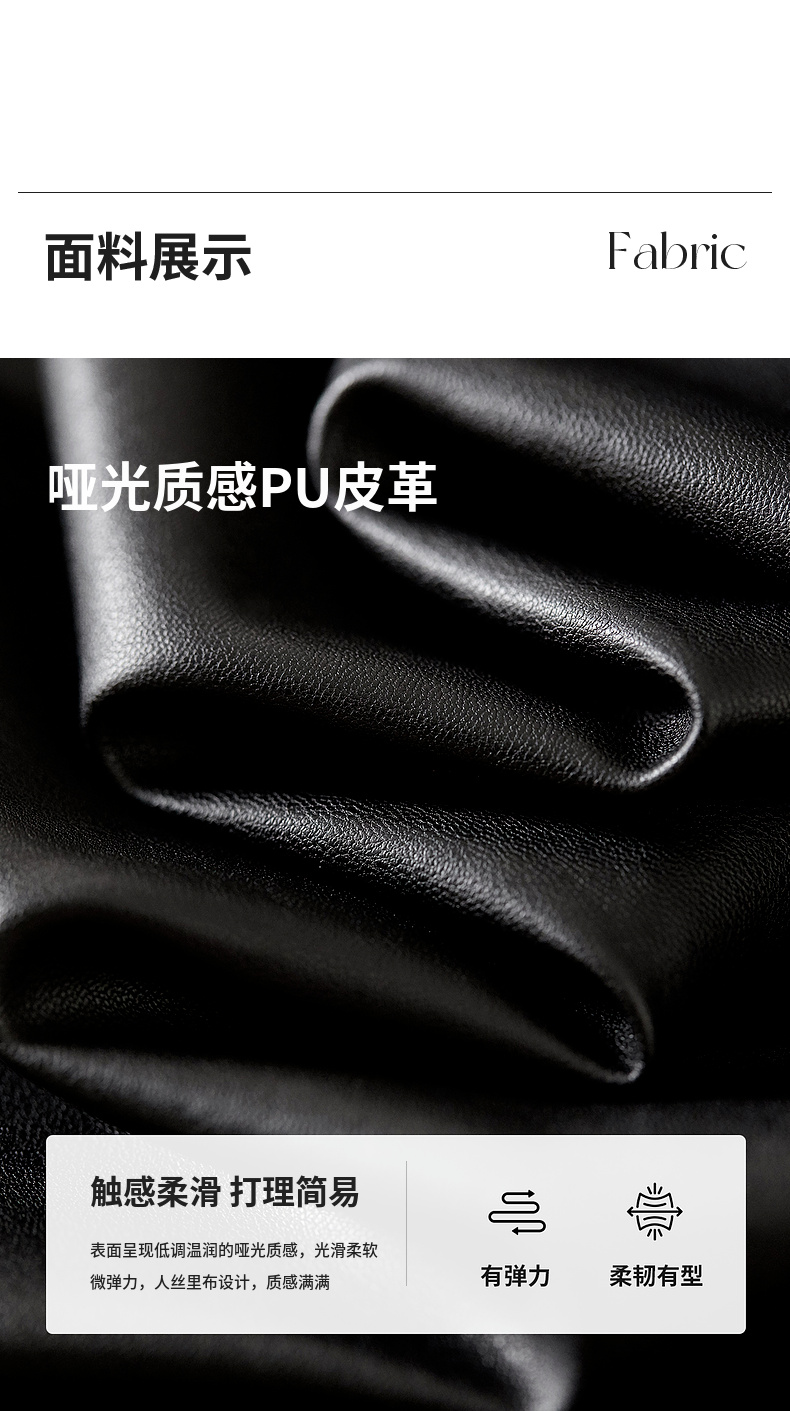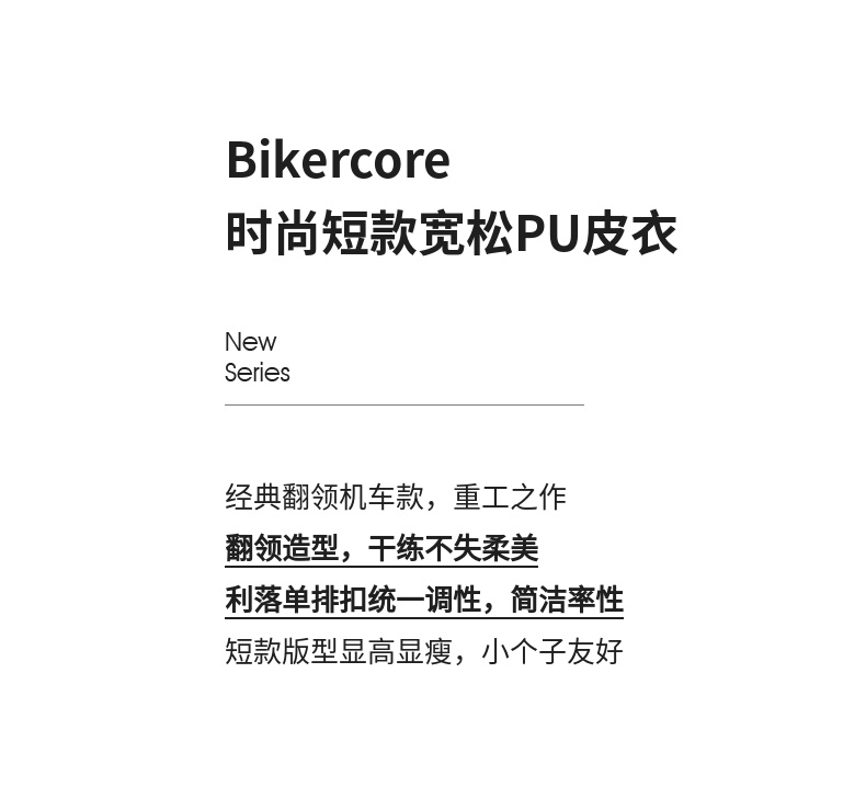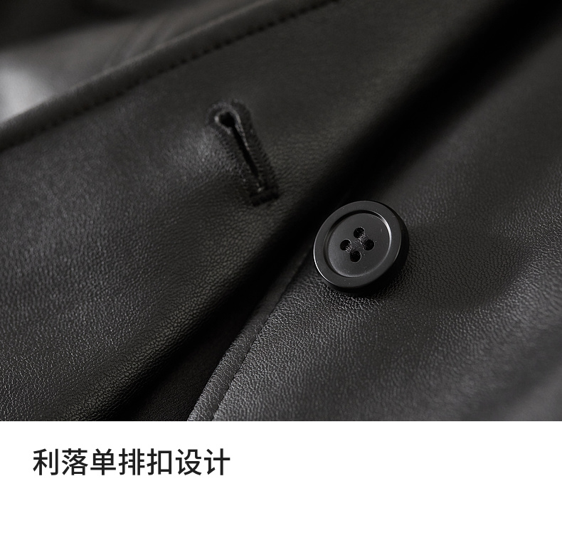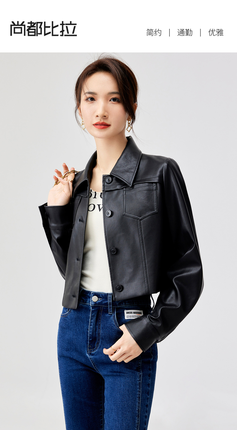【内购】舒适休闲翻领对称真口袋单排扣宽松短款PU皮衣外套-153GD3913X