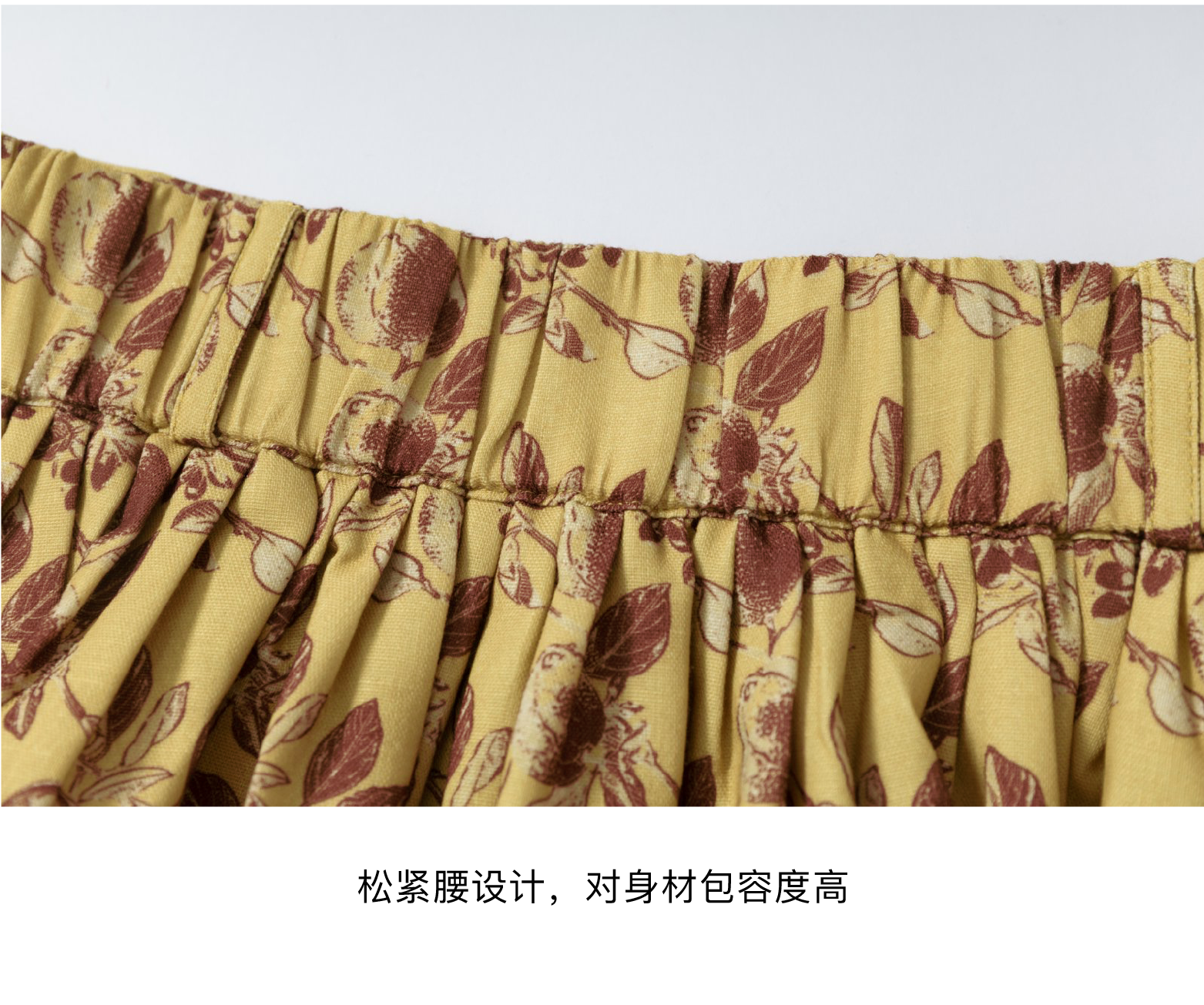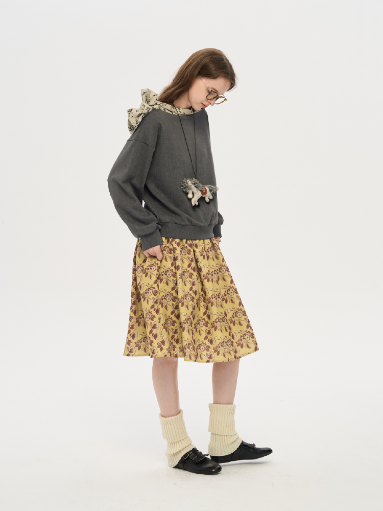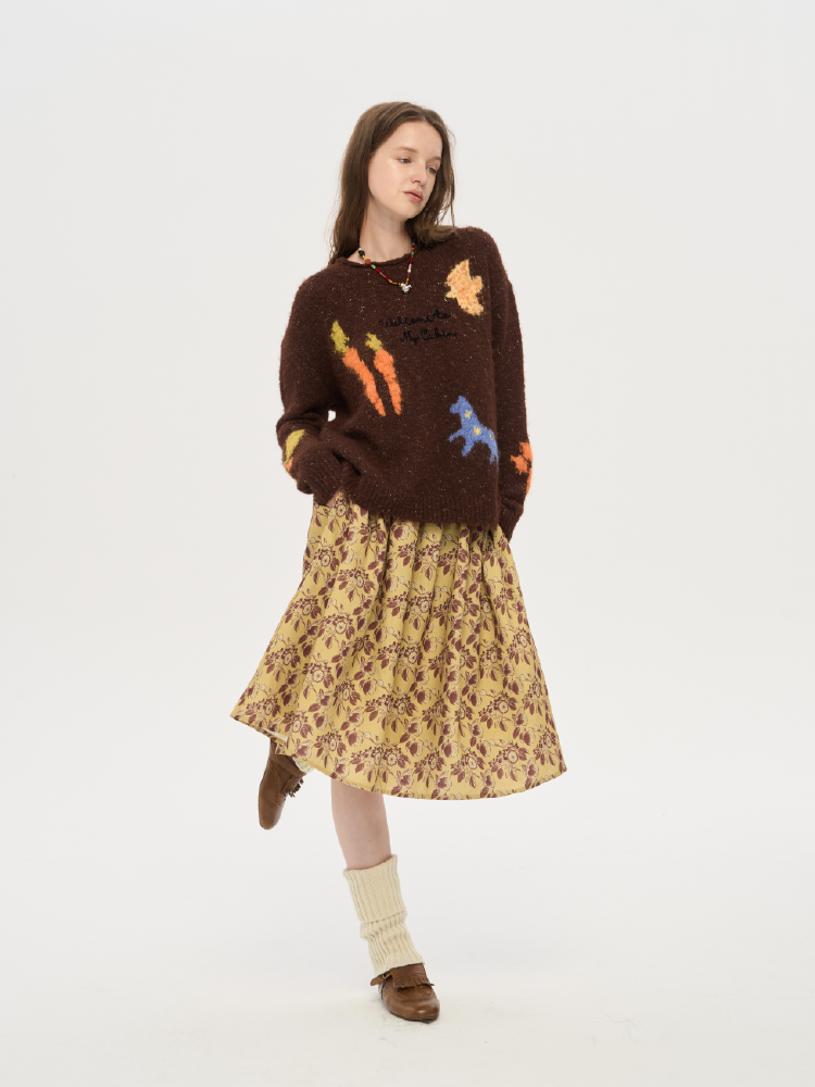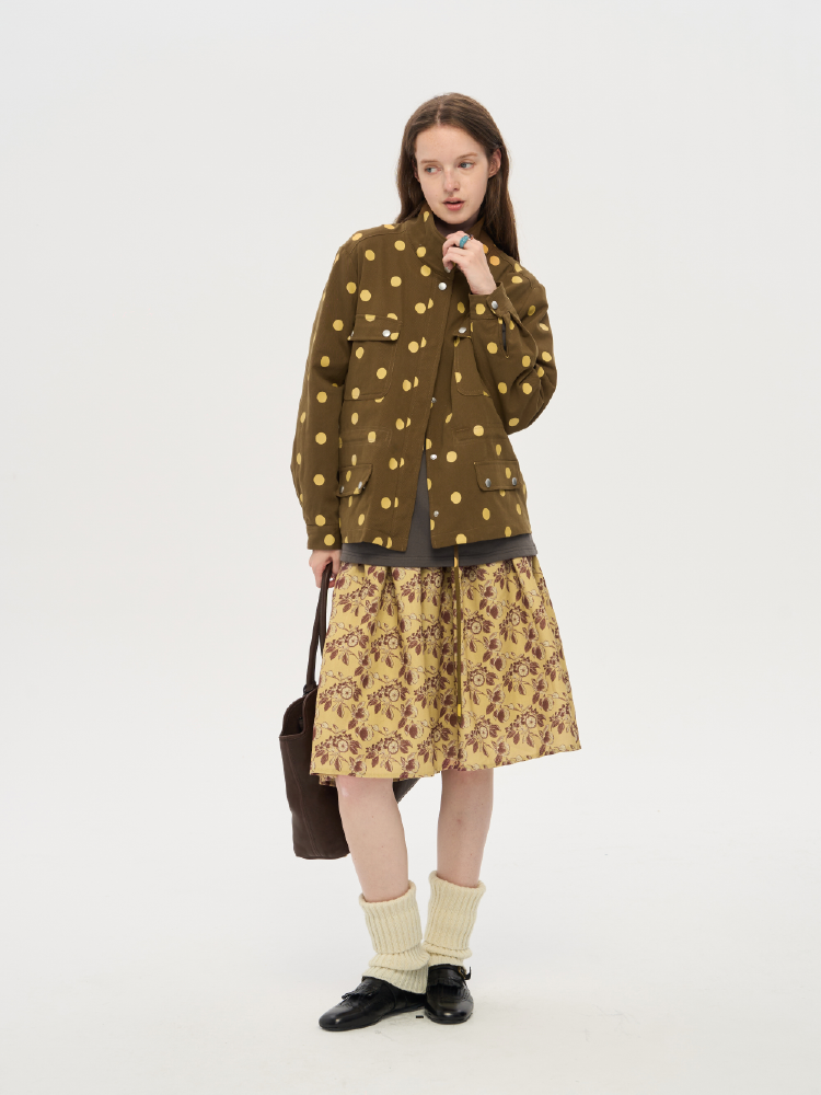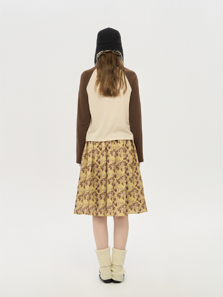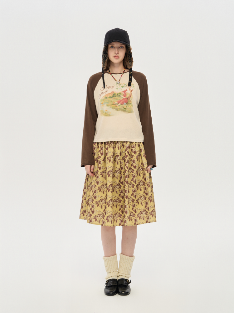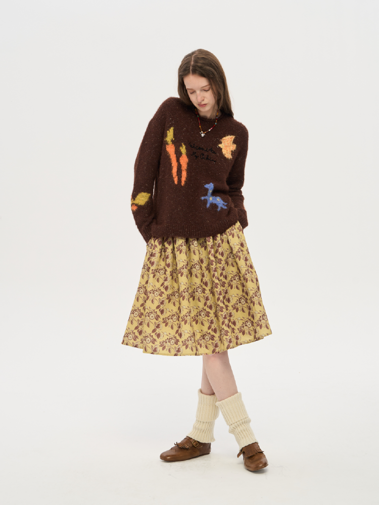 local tag/lt25awk12/秋天果实 手绘印花半裙 姜黄色复古蓬蓬裙