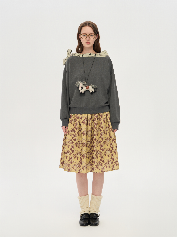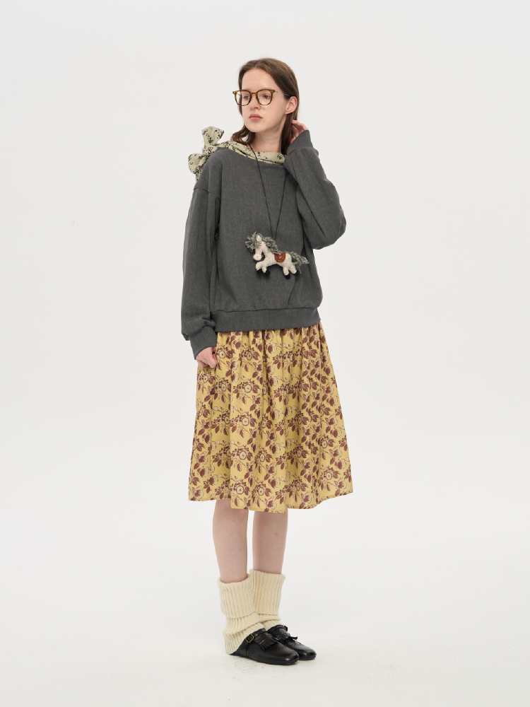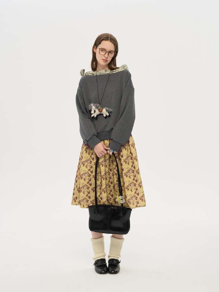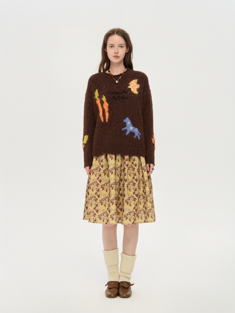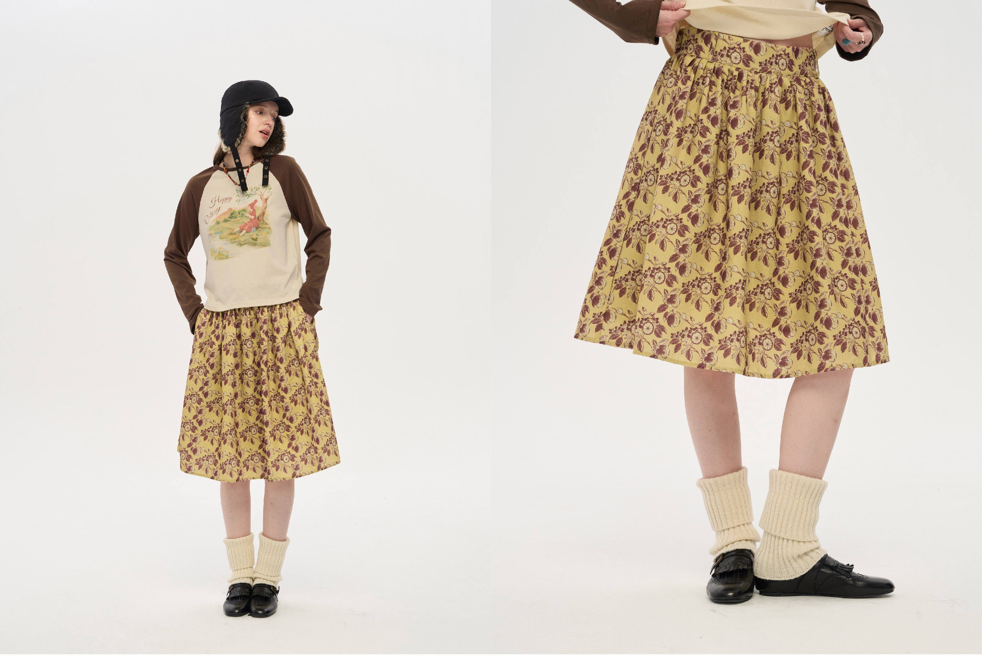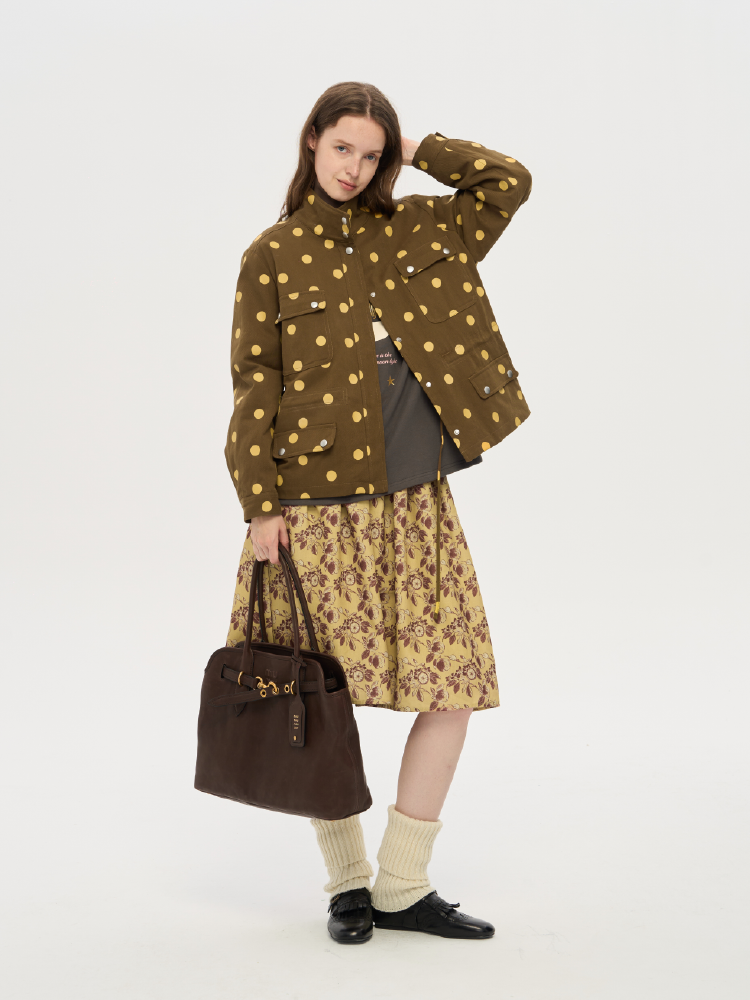 local tag/lt25awk12/秋天果实 手绘印花半裙 姜黄色复古蓬蓬裙