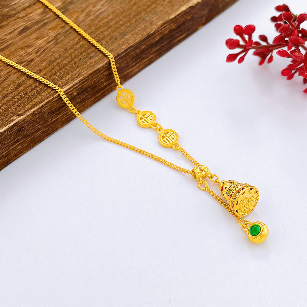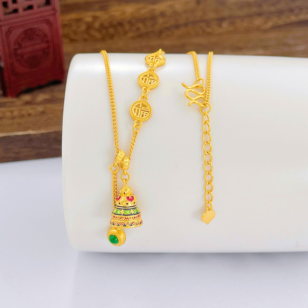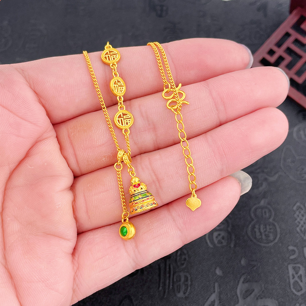 【限时克减150元】足金999 古法调节间镂空福牌项链低温珐琅许愿塔套链(YGFTL00064)(预售产品下单后不退款不退货不换货不补差价(预售产品下单后不退款不退货不换货不补差价