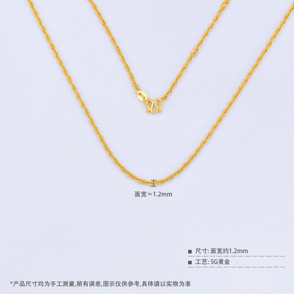 【限时克减150元】足金999 5G黄金16-17-18寸调节麻绳项链(AG5GXL00021-3)补差价)补差价)预售产品下单后不退款不退货不换货不补差价