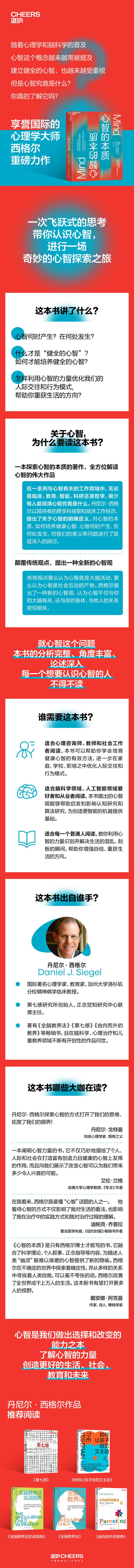 随着心理学与脑科学的日益普及和人工智能时代的来临,心智这个概念越来越常被提及,然而在一系列与心智有关的工作领域中,无论是临床、教育、智能、科研还是哲学,很少有人能说清心智究竟是什么。知名心理学家、畅销书作家丹尼尔·西格尔以其特有的跨学科背景和临床工作经历,提出了关于心智的明确定义,对心智的本质、如何培养健康心智、心智何时产生、在何处发生、对我们的意义等问题进行了层层深入的探讨。