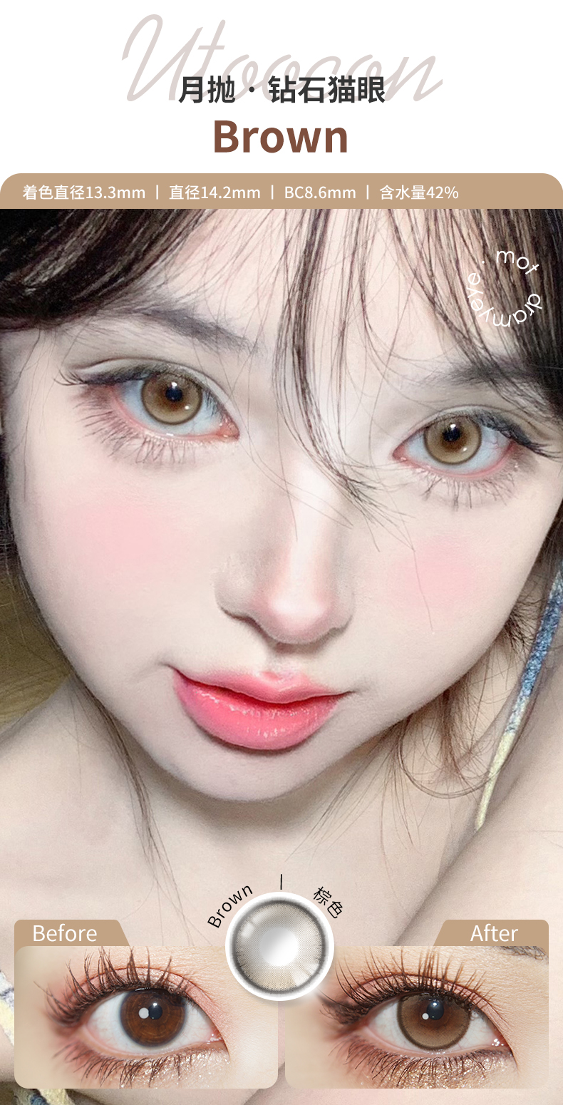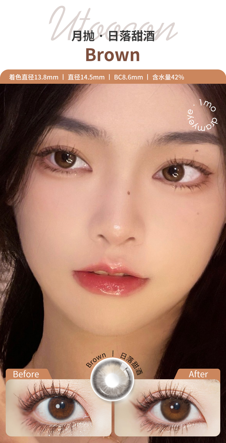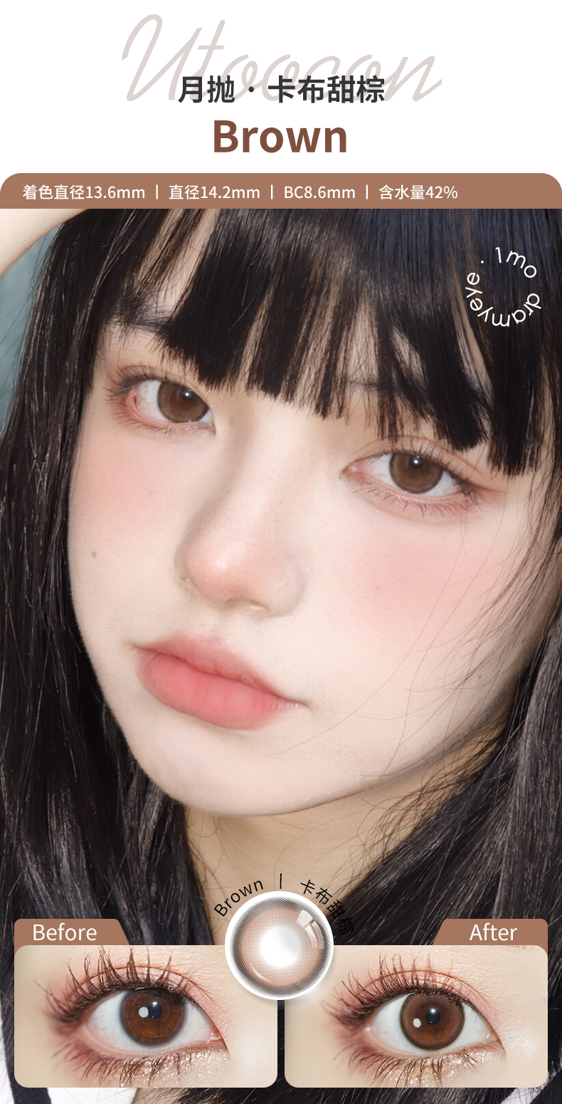 「3副均¥46」UTOOCON 月抛 | 蜜桃可可/半糖牛乳/小腮红/小卧蚕/贝果/蛋黄仔/小甜酒 网红爆款 共27款