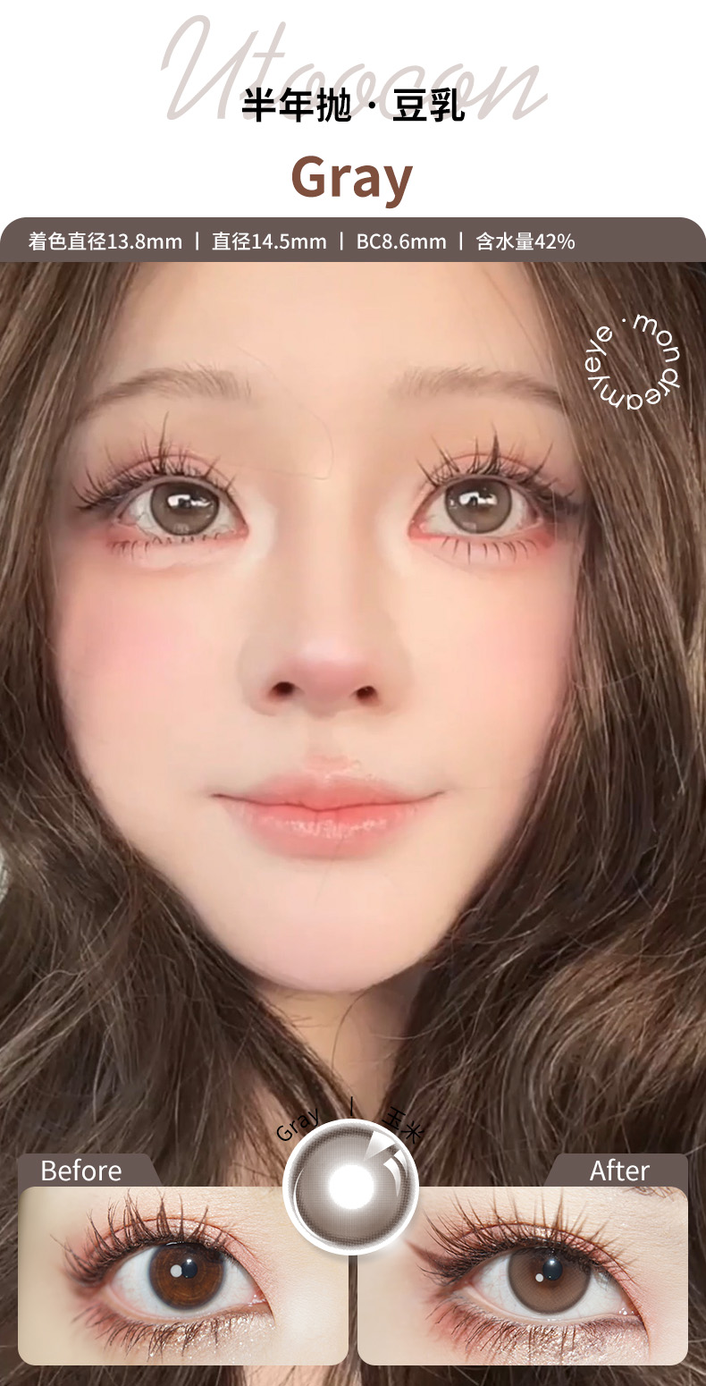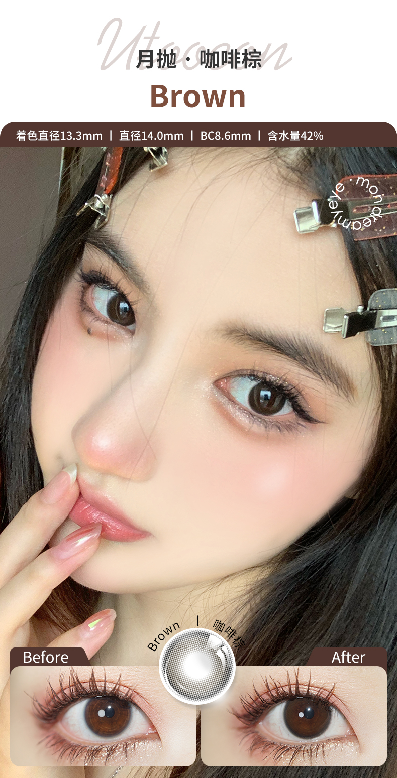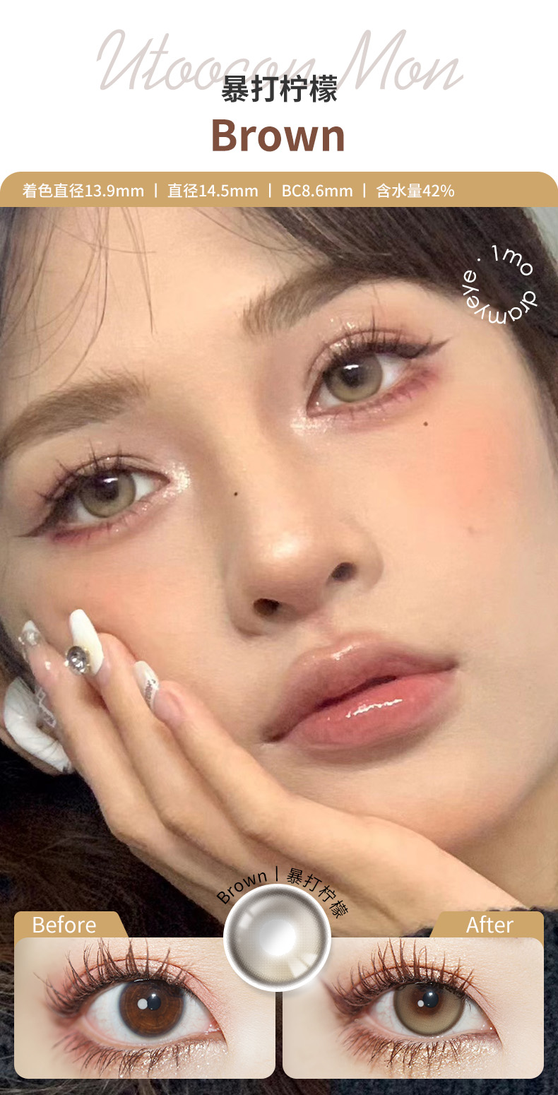 「3副均¥46」UTOOCON 月抛 | 蜜桃可可/半糖牛乳/小腮红/小卧蚕/贝果/蛋黄仔/小甜酒 网红爆款 共27款