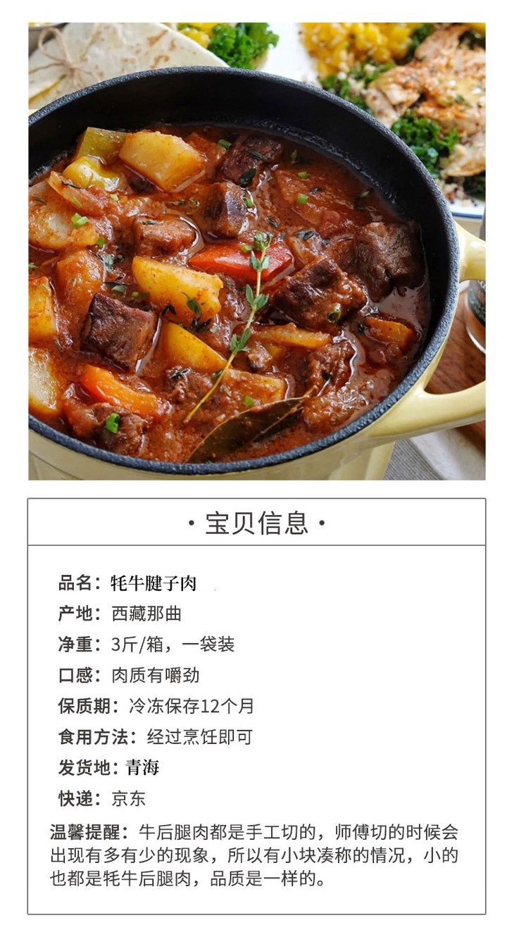 【牦牛腱子肉】4300米海拔放养,青藏直发,现宰发出,高蛋白低脂肪,牦牛野性十足,运动量很大,吃它的肉能提高人的抵抗力,而且口感不是普通牛肉能比的,炖上一锅,非常鲜美!