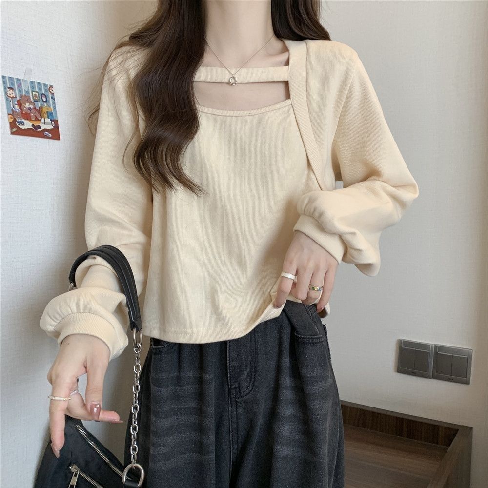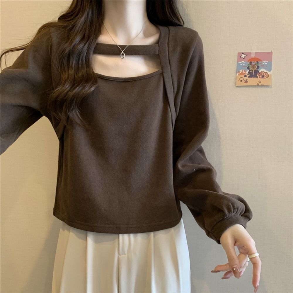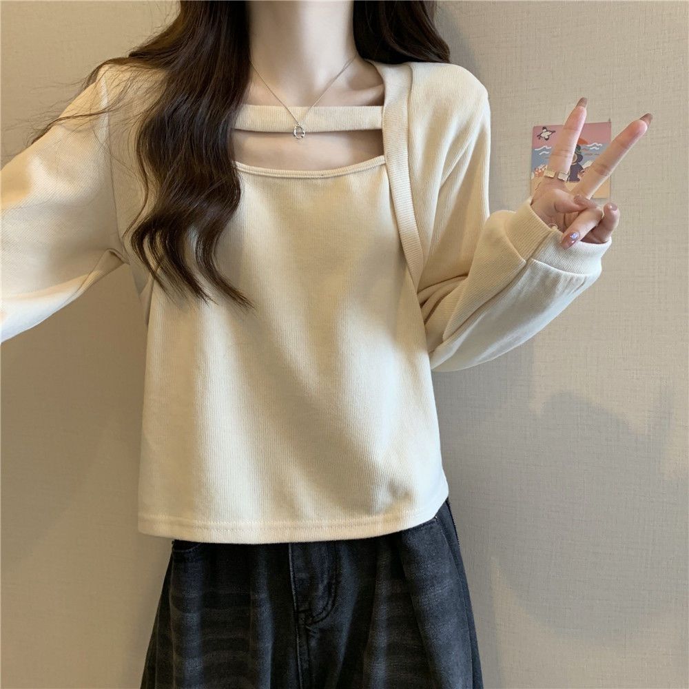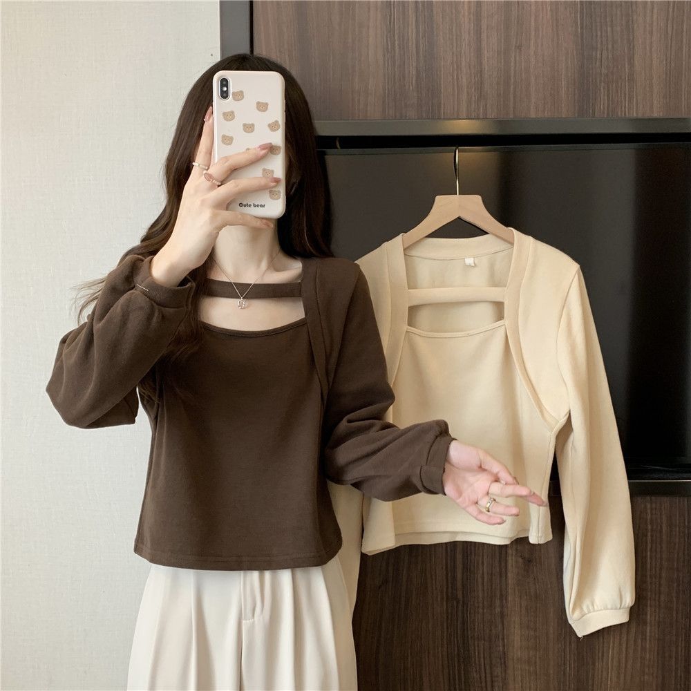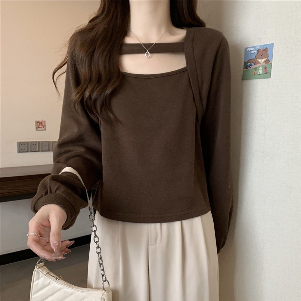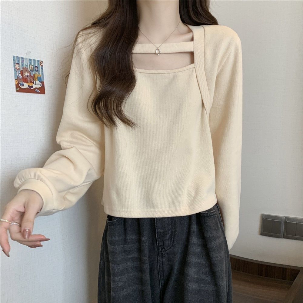 【大码长袖T恤女 2025年春秋新款】胖mm 设计感小众 镂空遮肚 显瘦上衣服