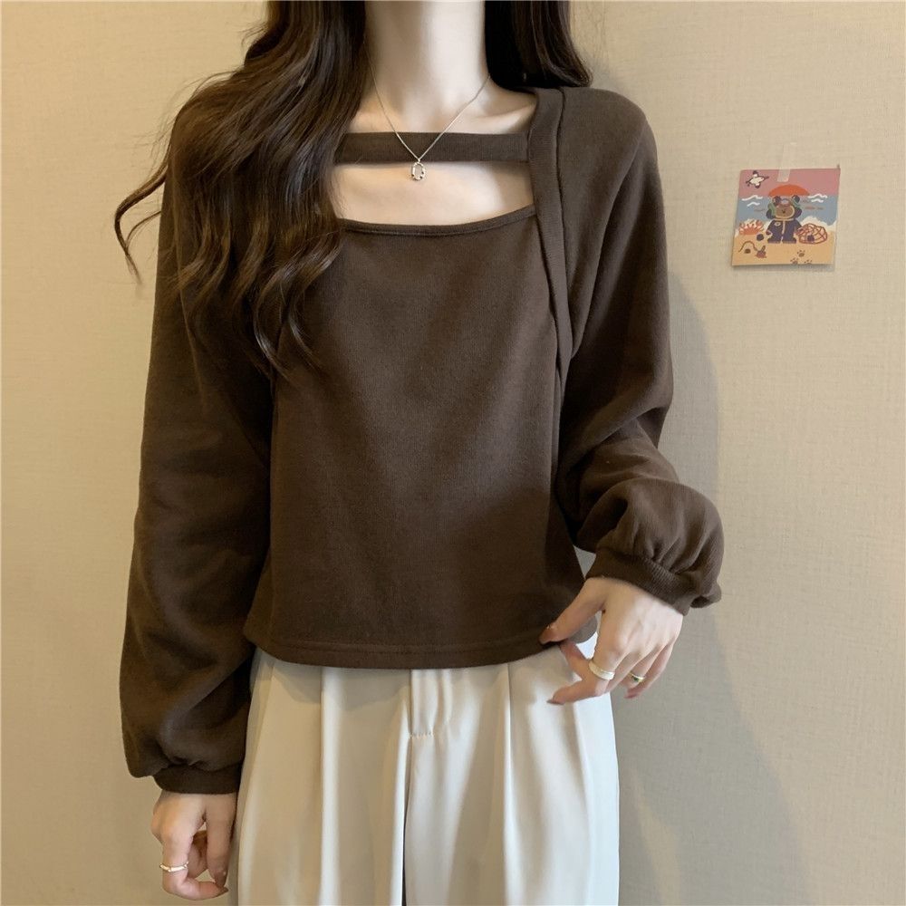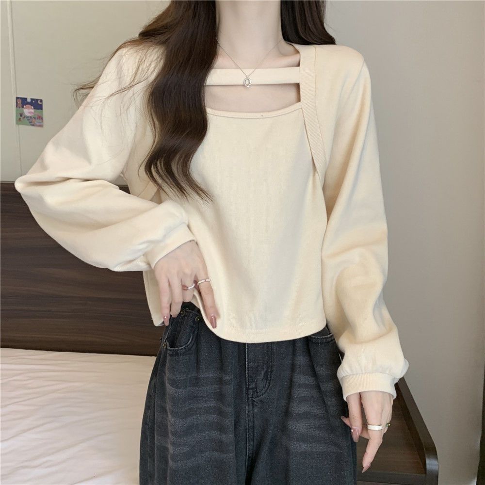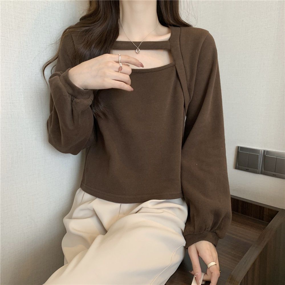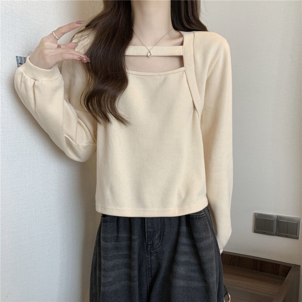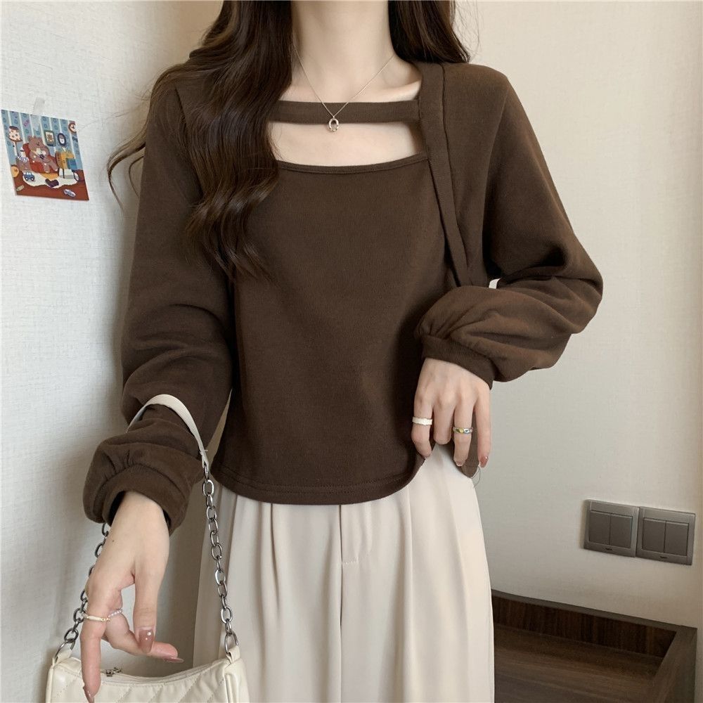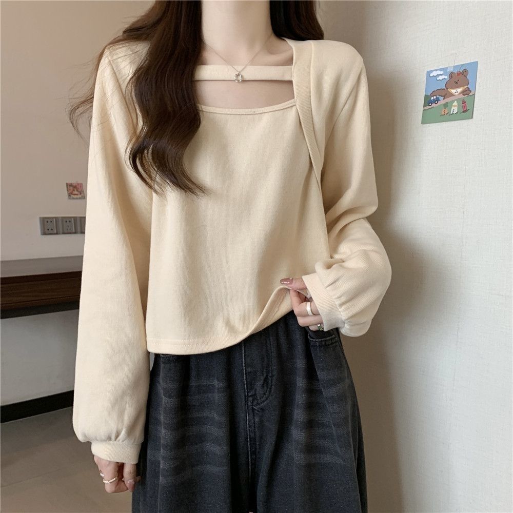 【大码长袖T恤女 2025年春秋新款】胖mm 设计感小众 镂空遮肚 显瘦上衣服