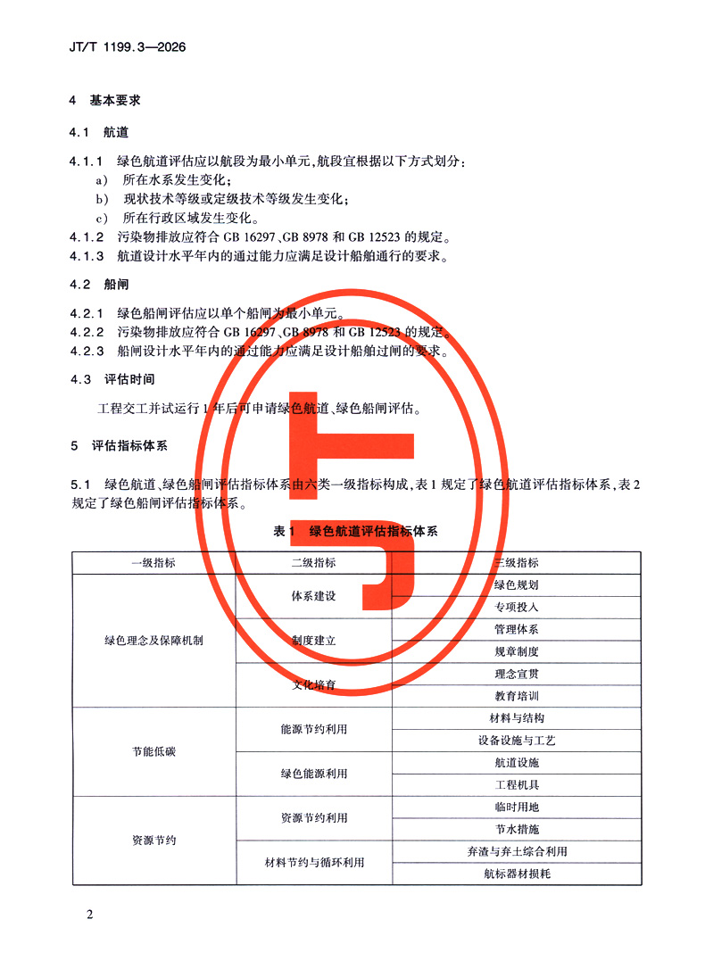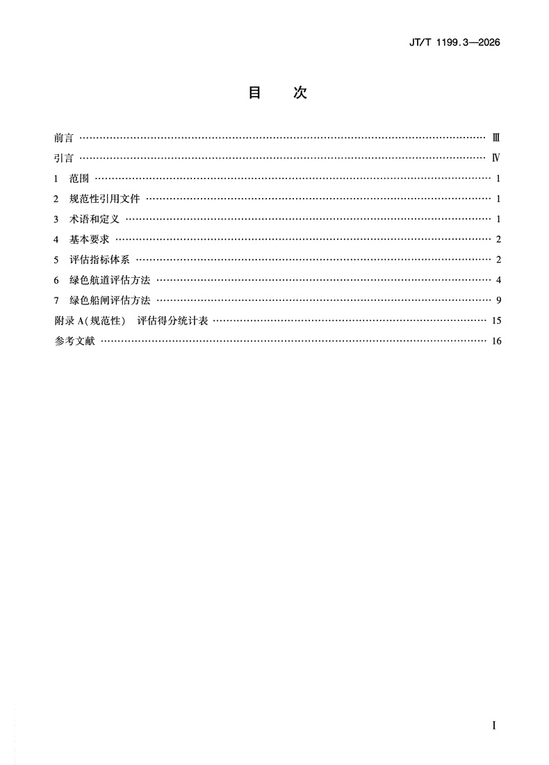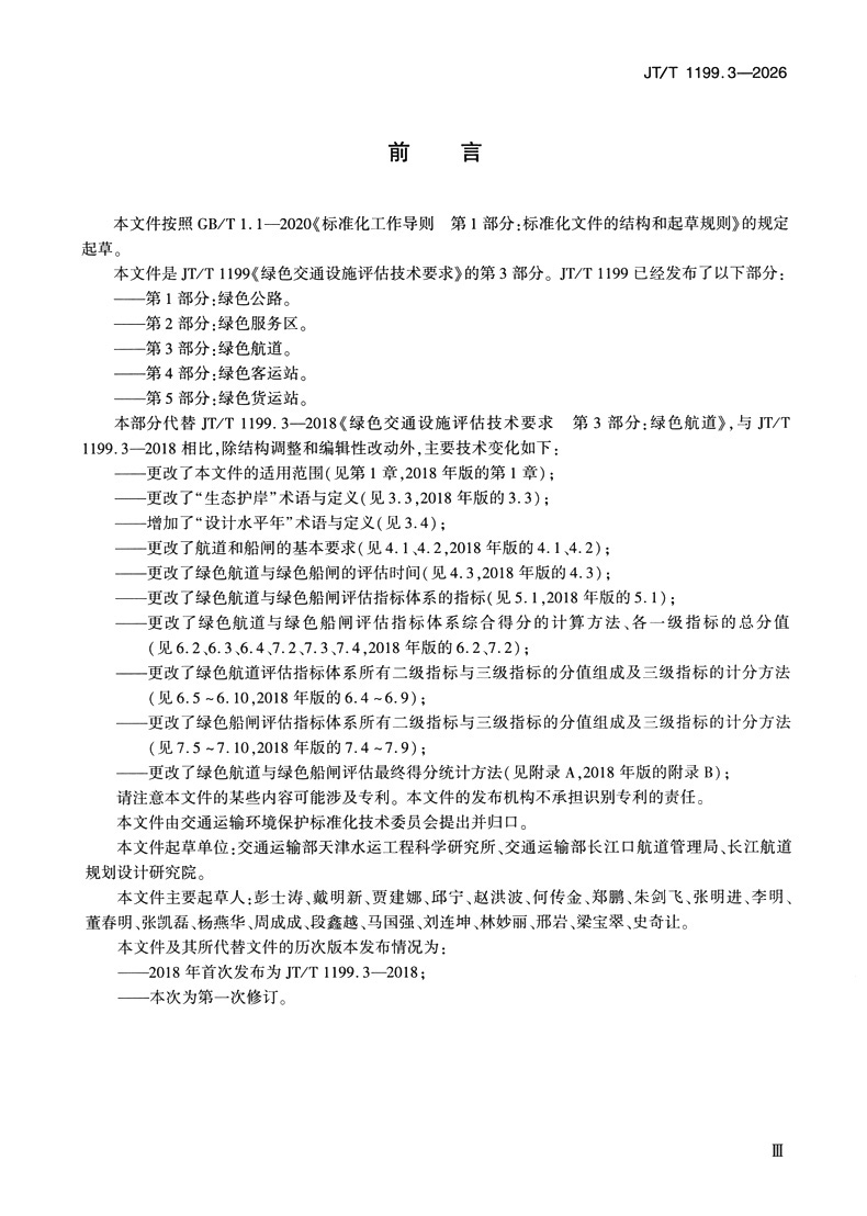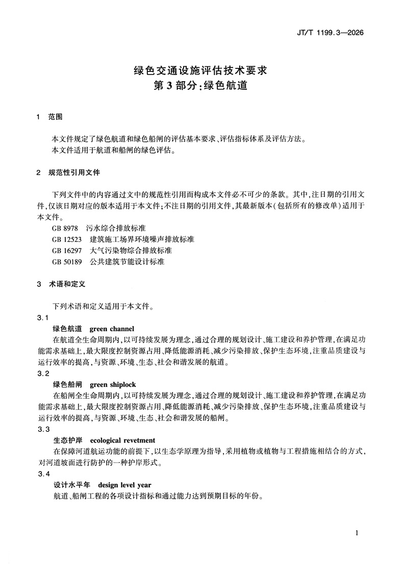 书名:绿色交通设施评估技术要求 第3部分:绿色航道(JT/T 1199.3—2026)