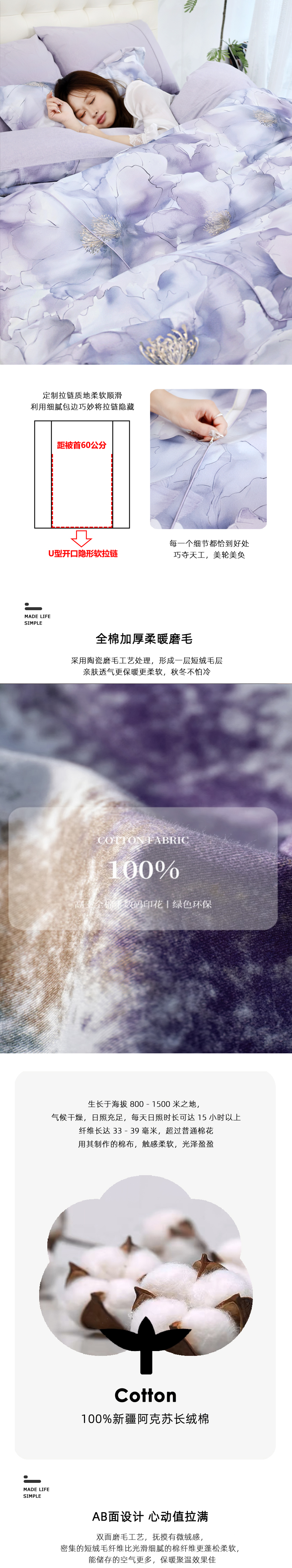 床品四件套 大舱门设计 轻松换被套 磨毛加厚 舱门式懒人被罩 秋冬款
