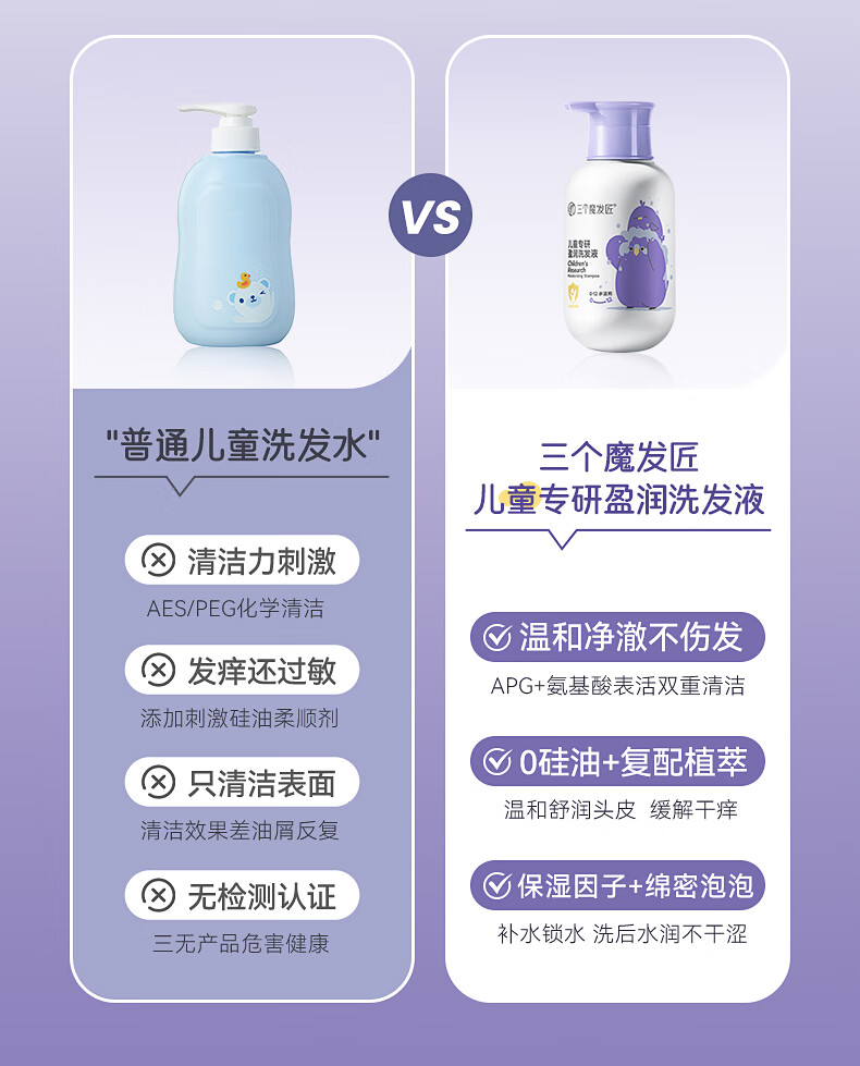 三个魔发匠儿童专研盈润洗发液 洗发水 380ml/1瓶