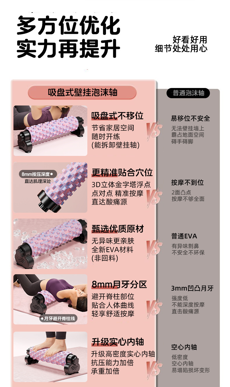 【吸盘式壁挂不占地、两档高度自由调节】瑜伽柱支架款泡沫轴滚背神器狼牙棒滚腿滚轴肌肉放松瘦腿瑜伽器材.TA