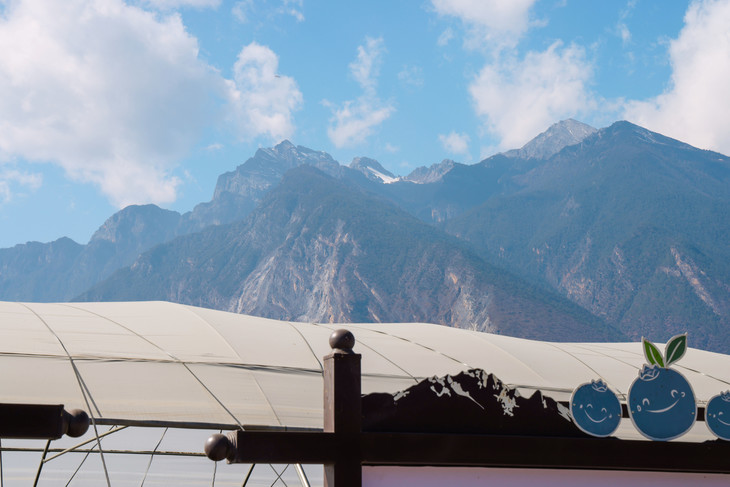 到达蓝莓种植基地,映入眼帘的是远处高耸的雪山