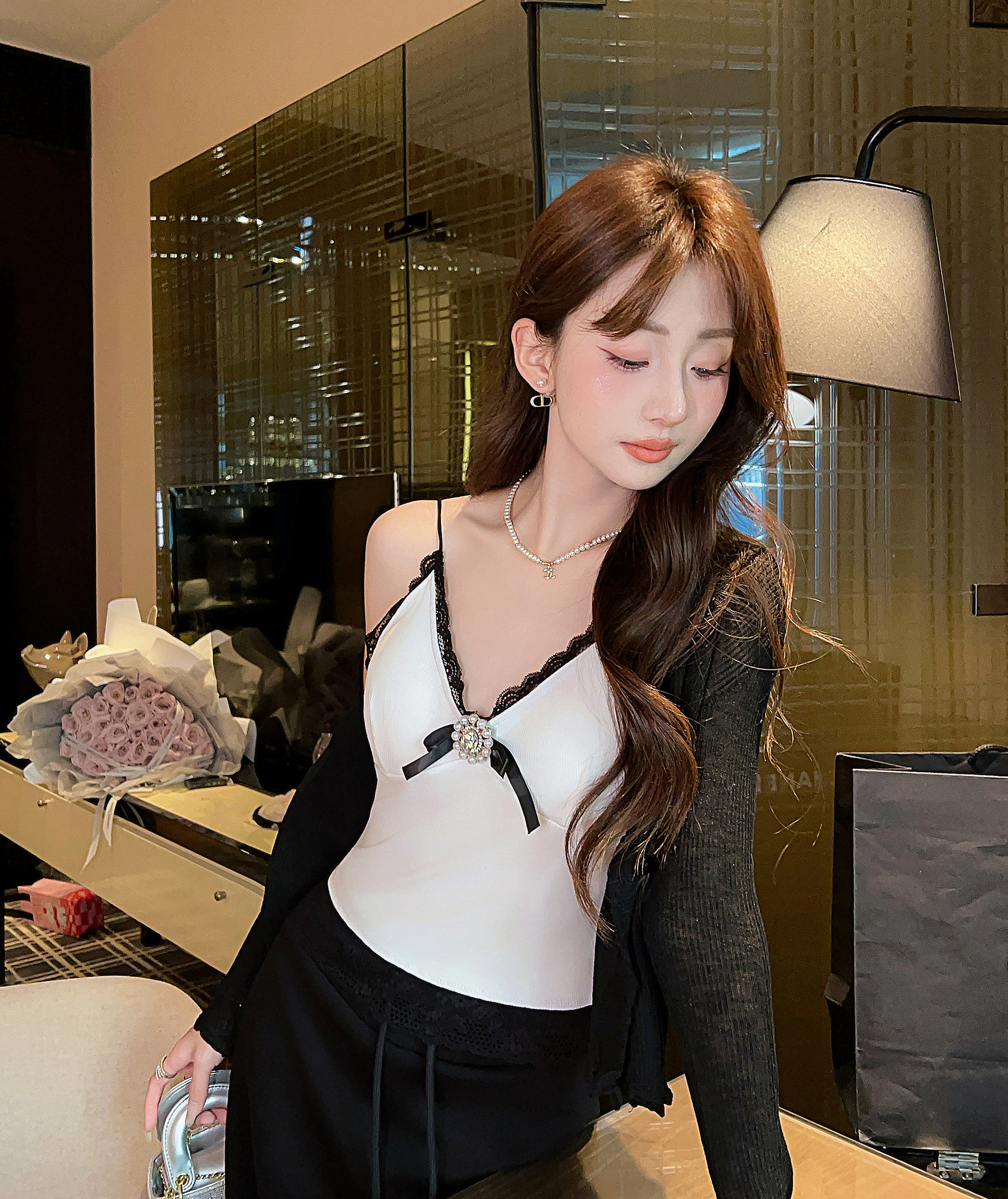 张心子【秘境情书】纯欲风蕾丝花边V领吊带背心女春夏新款打底衫 U2602061