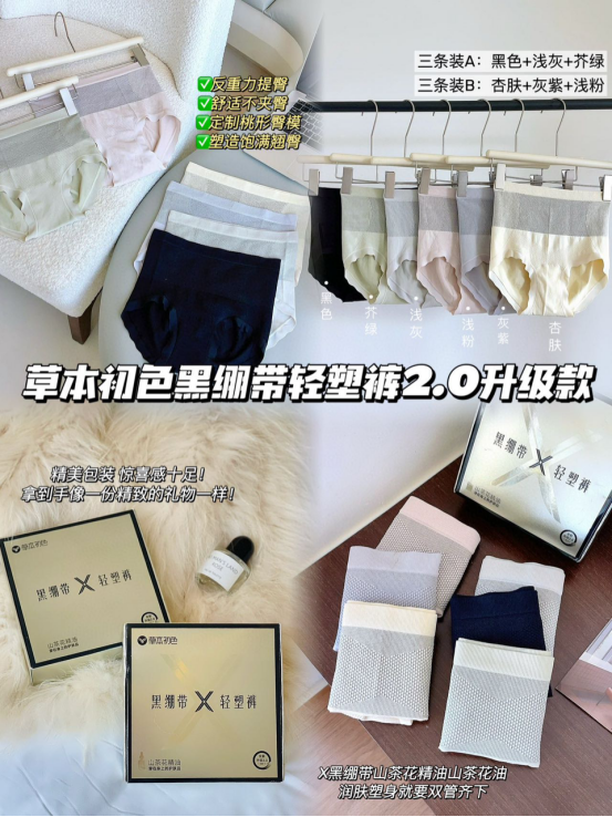 👉【草本初色 黑绷带轻塑裤2.0升级款3条装🎈】 🌟X黑绷带 山茶花精油山茶花油·云感面料 🌟整条内裤没有侧缝线上身更舒服🌻,真正做到零束缚。 🌟反重力提臀,舒适不夹臀,立体全包版型 💥