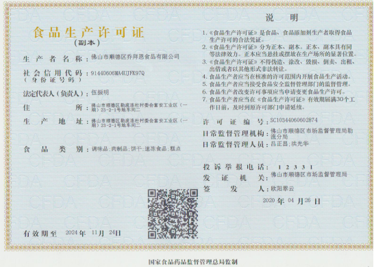 乔拜恩食品厂成立于2015年,佛山十大优质品牌食品厂之一,专门从事肉制品、中式点心、西式糕点、烧腊制品、汁酱加工开发及相关食品的深加工生产,有粤式传统手工制品,也有半机械和全机械流水生产线产品。