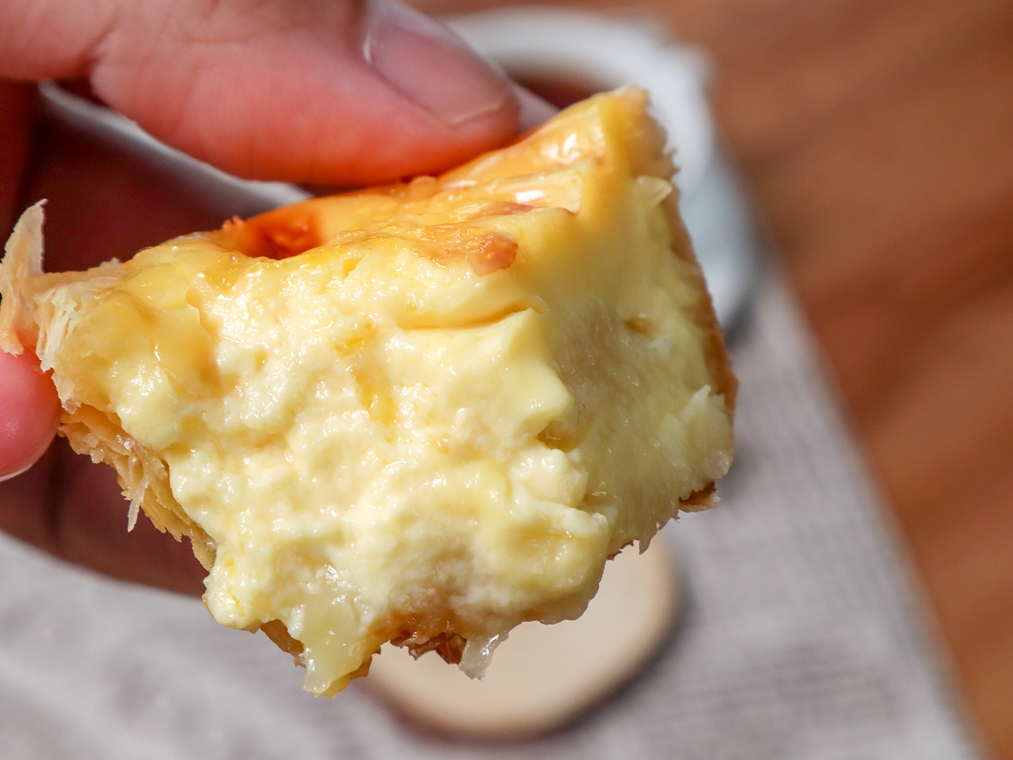 为了确保口感和品质,经过多次调试,我们的榴莲葡挞最终选择了马来西亚D197猫山王果肉,而非榴莲蛋奶浆。虽然表面跟原味葡挞一样,但一口咬下去,香浓纯正的猫山王榴莲味混合着蛋奶的香味散发出来,让原本就精彩的葡挞锦上添花。