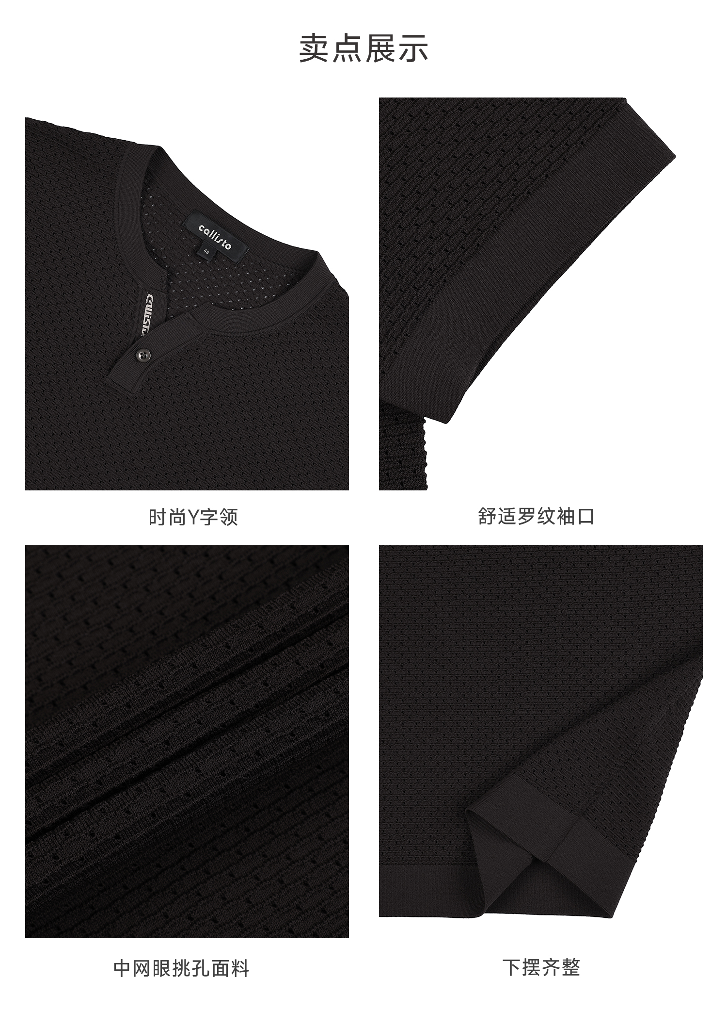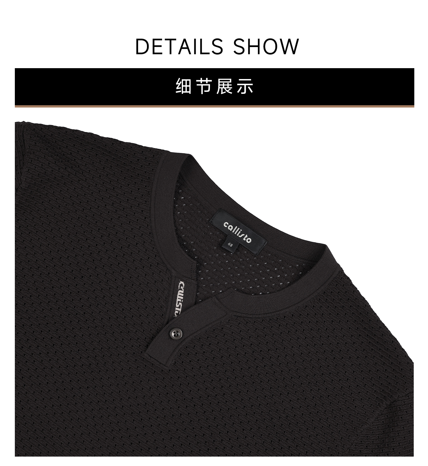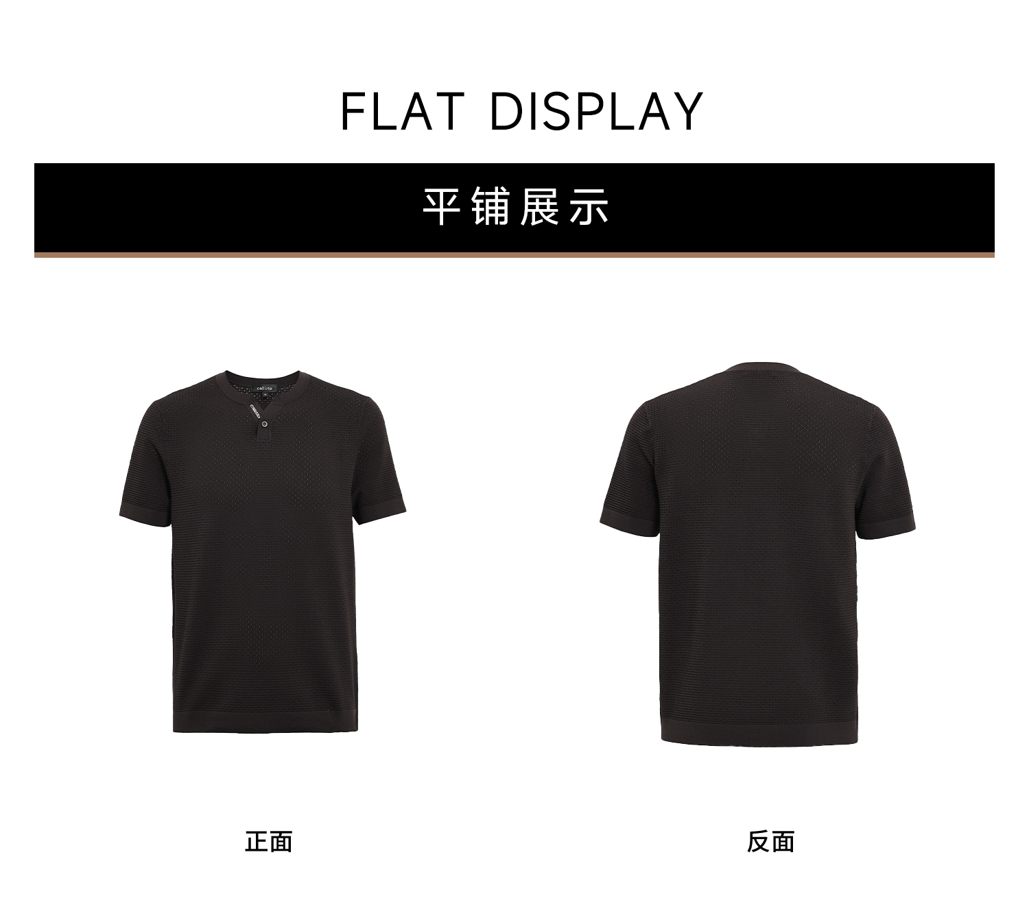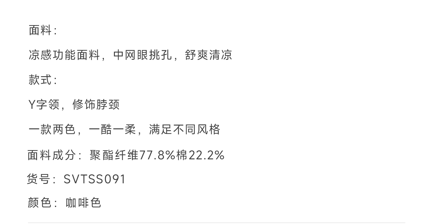 callisto咖色Y字领凉感网眼T恤