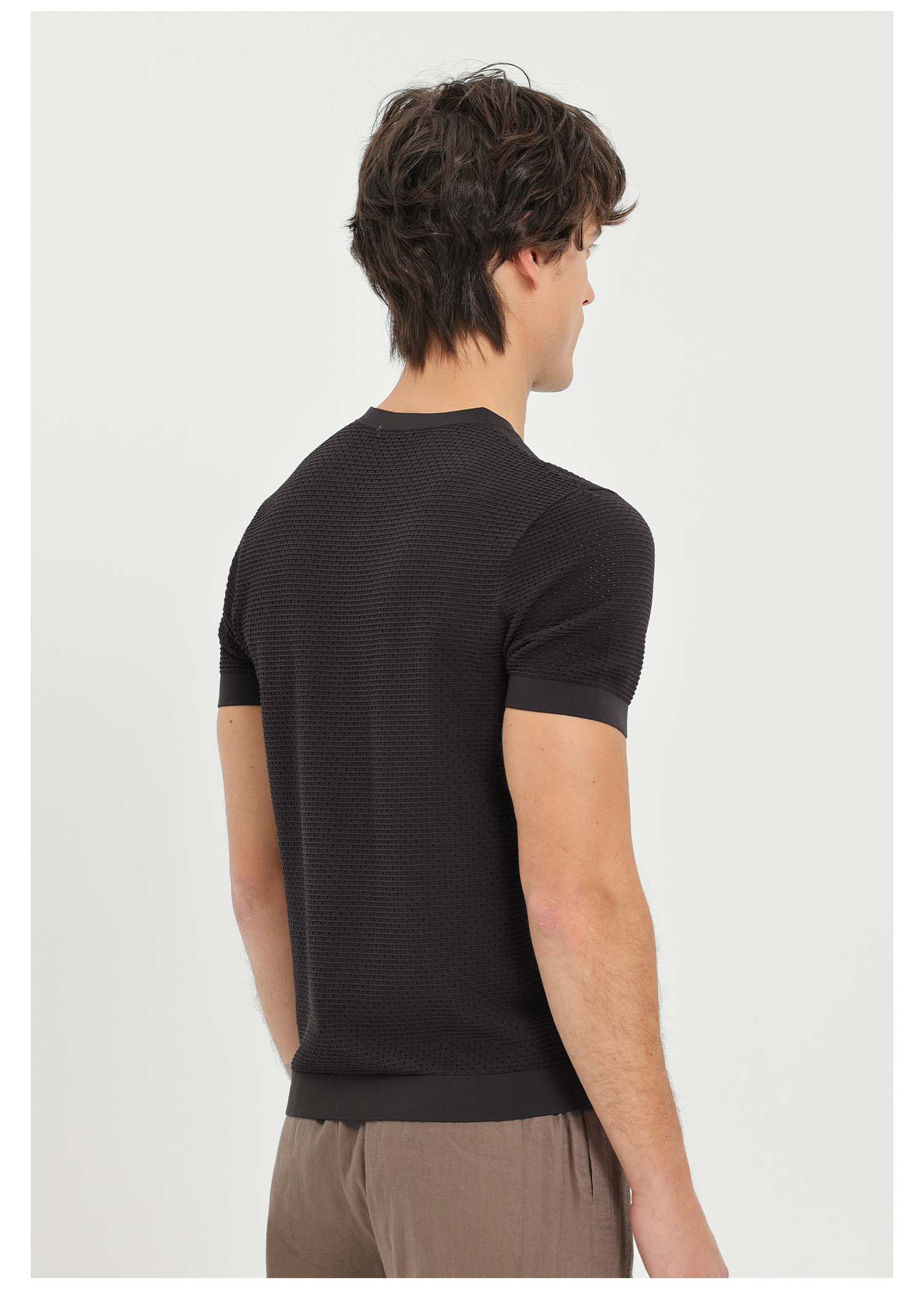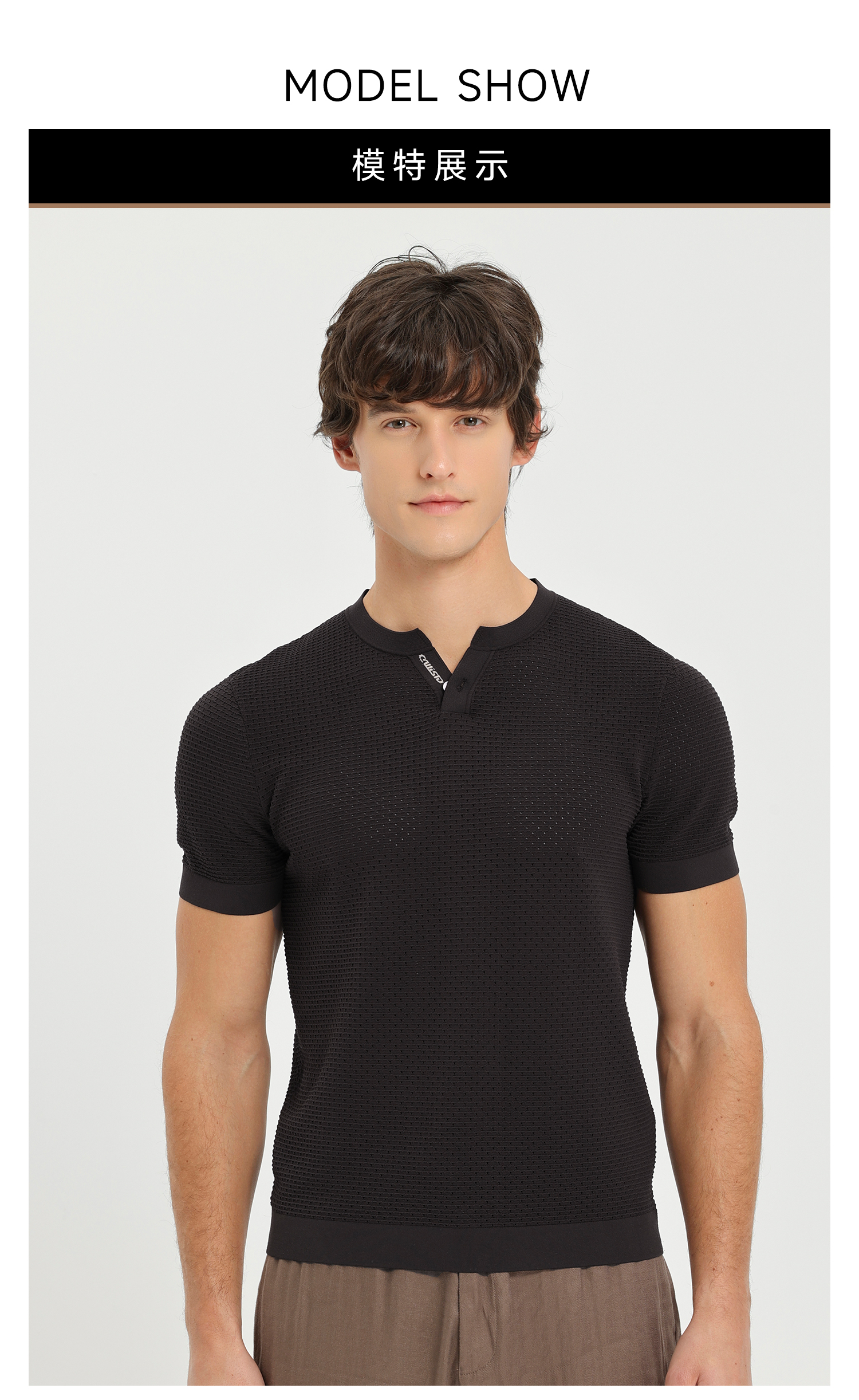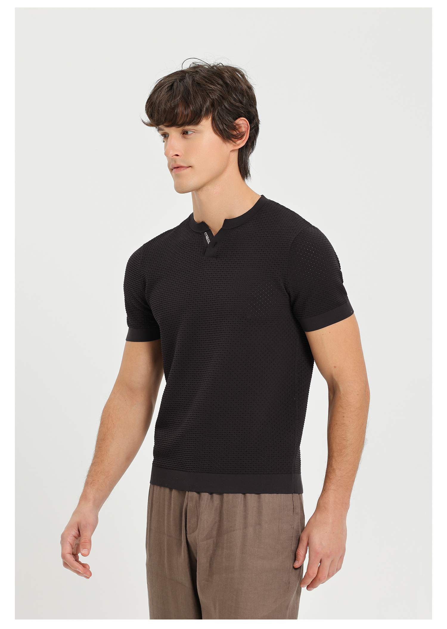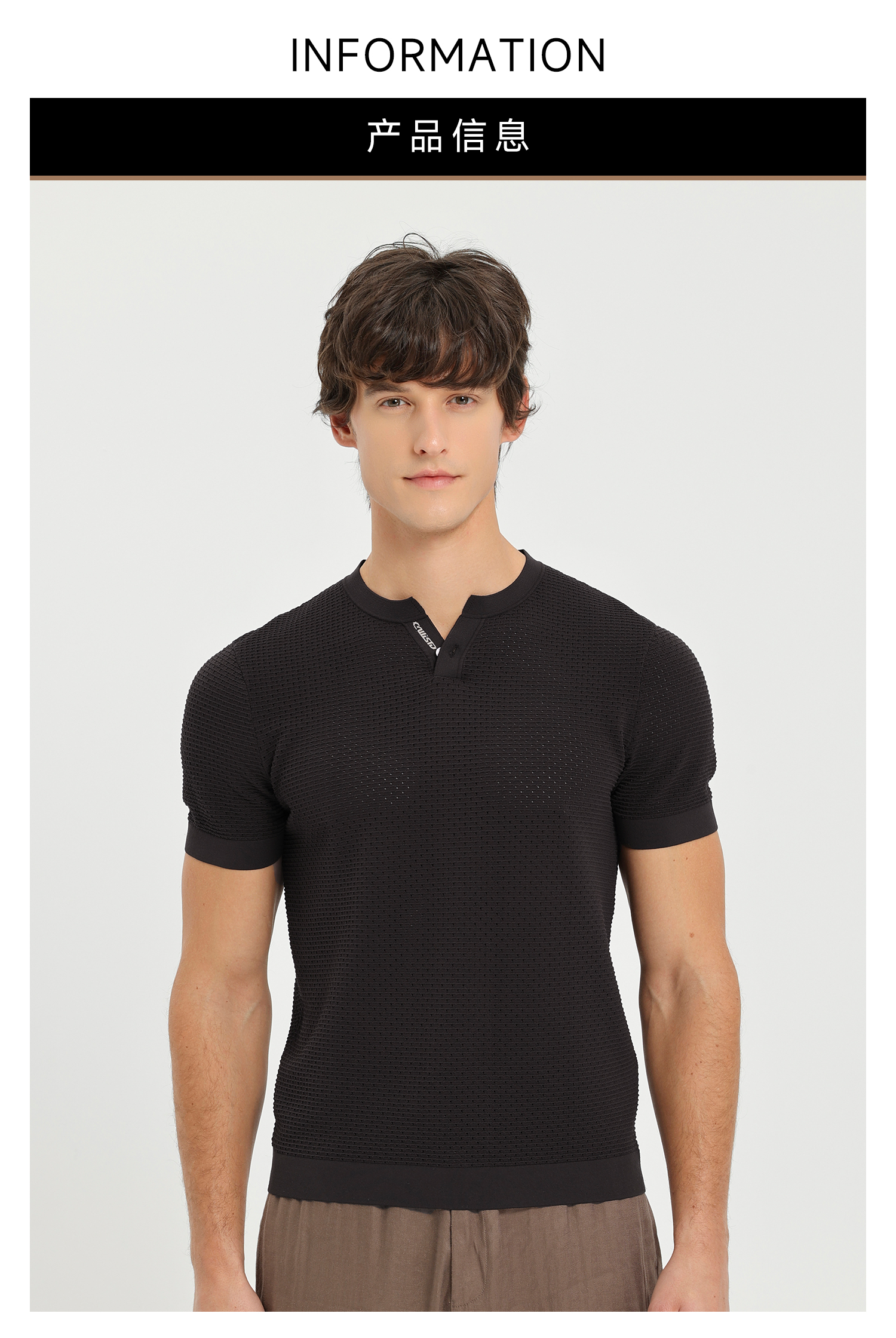 callisto咖色Y字领凉感网眼T恤