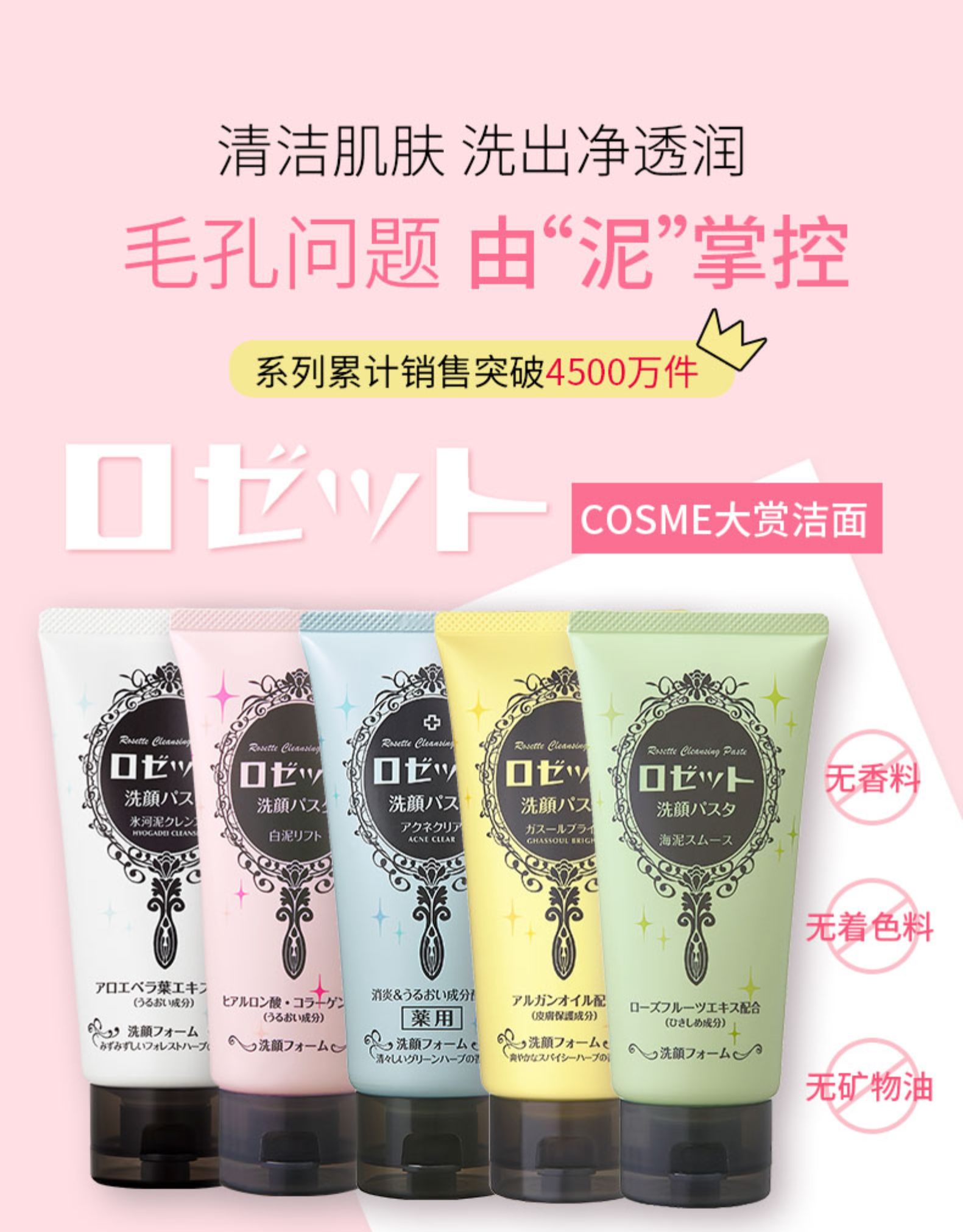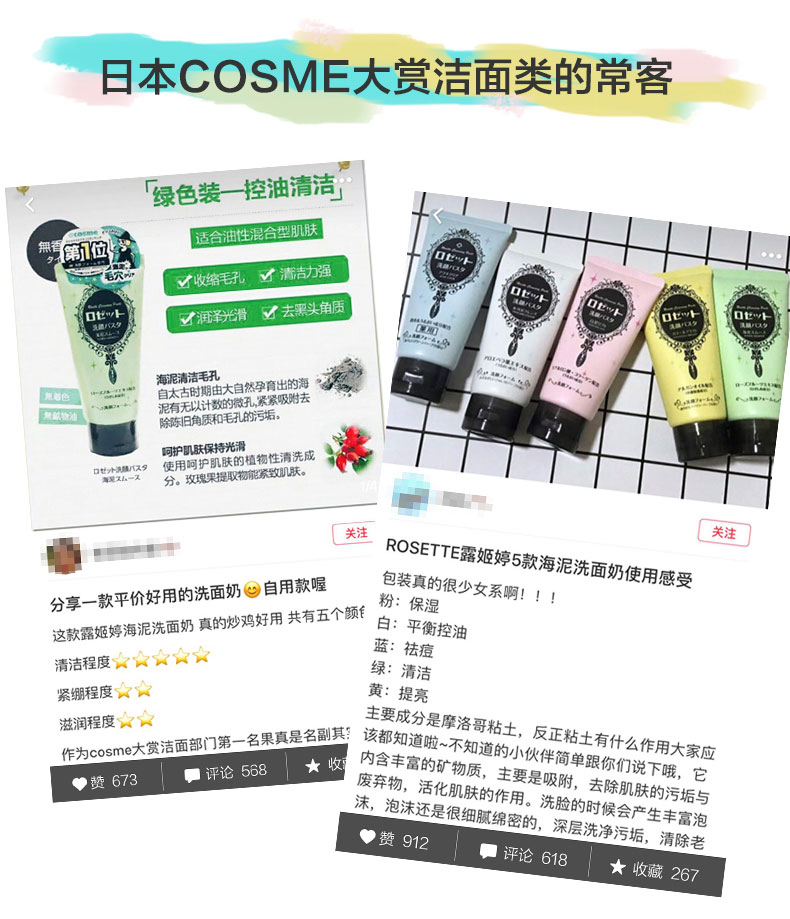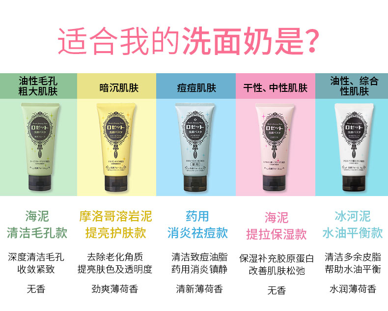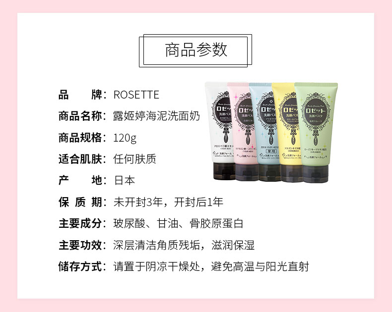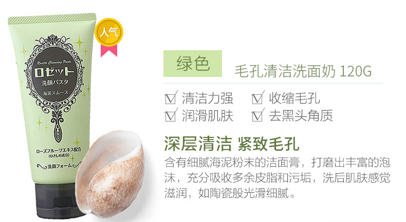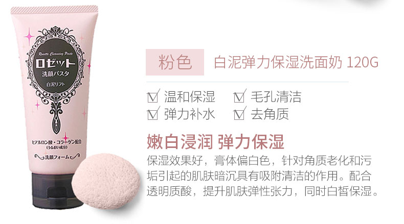 【中欧班列精选】日本洗面奶 原装进口露姬婷(Rosette)氨基酸洁面乳 黄泥/蓝泥/白泥/粉泥洗面奶 120g/支