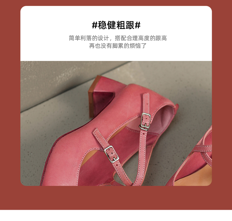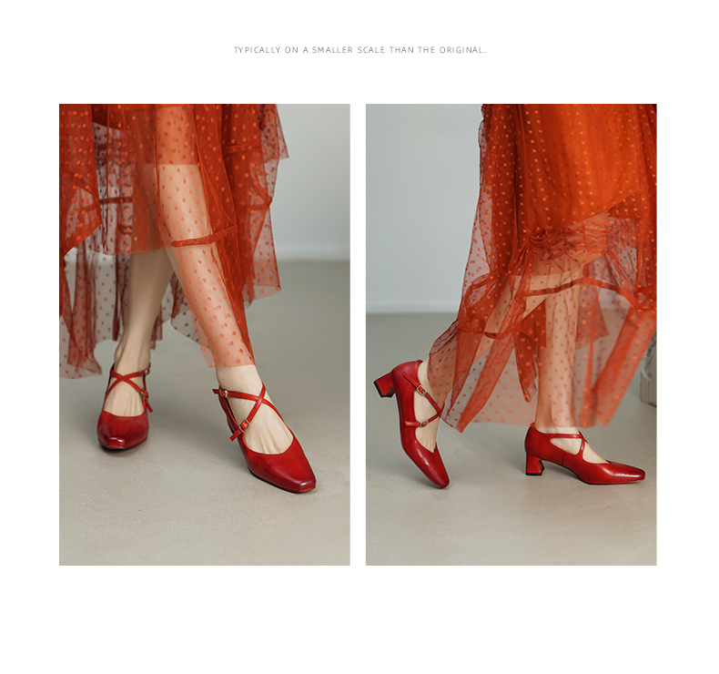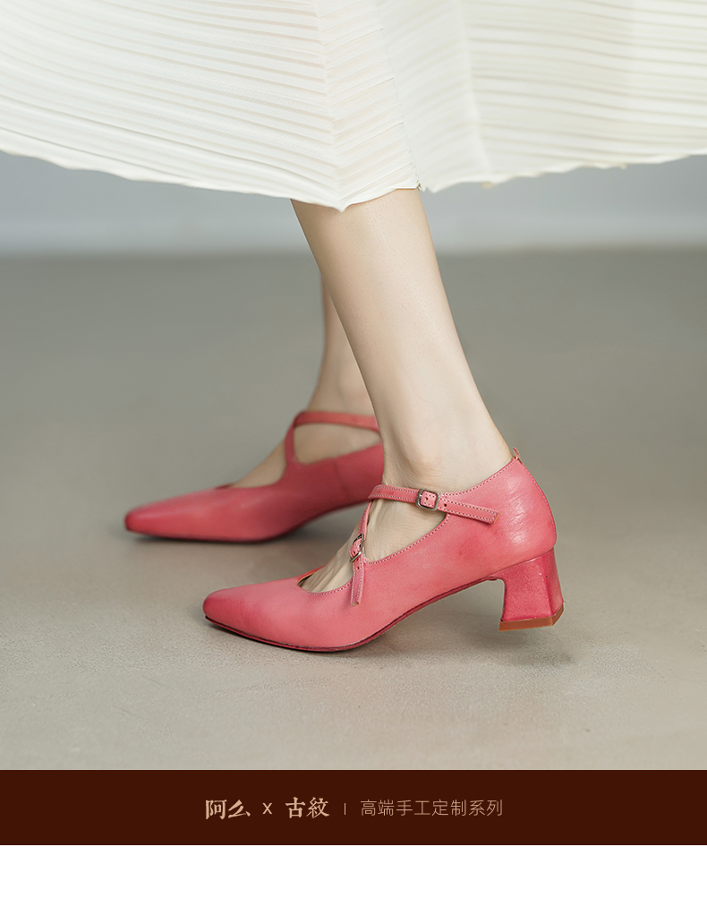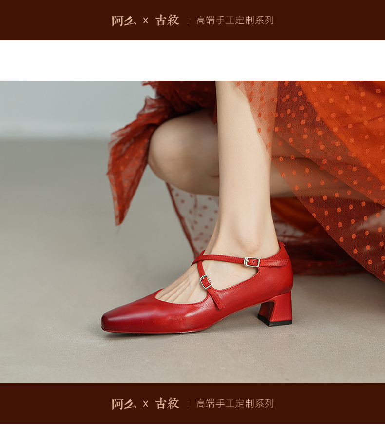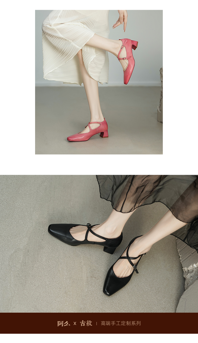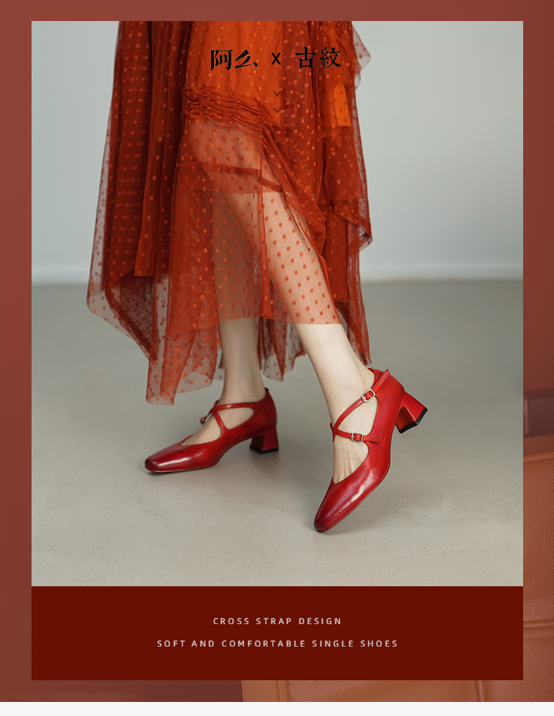 【阿么古纹马皮鞋】2025新款气质交叉复古真皮玛丽珍鞋浅口单鞋4CM