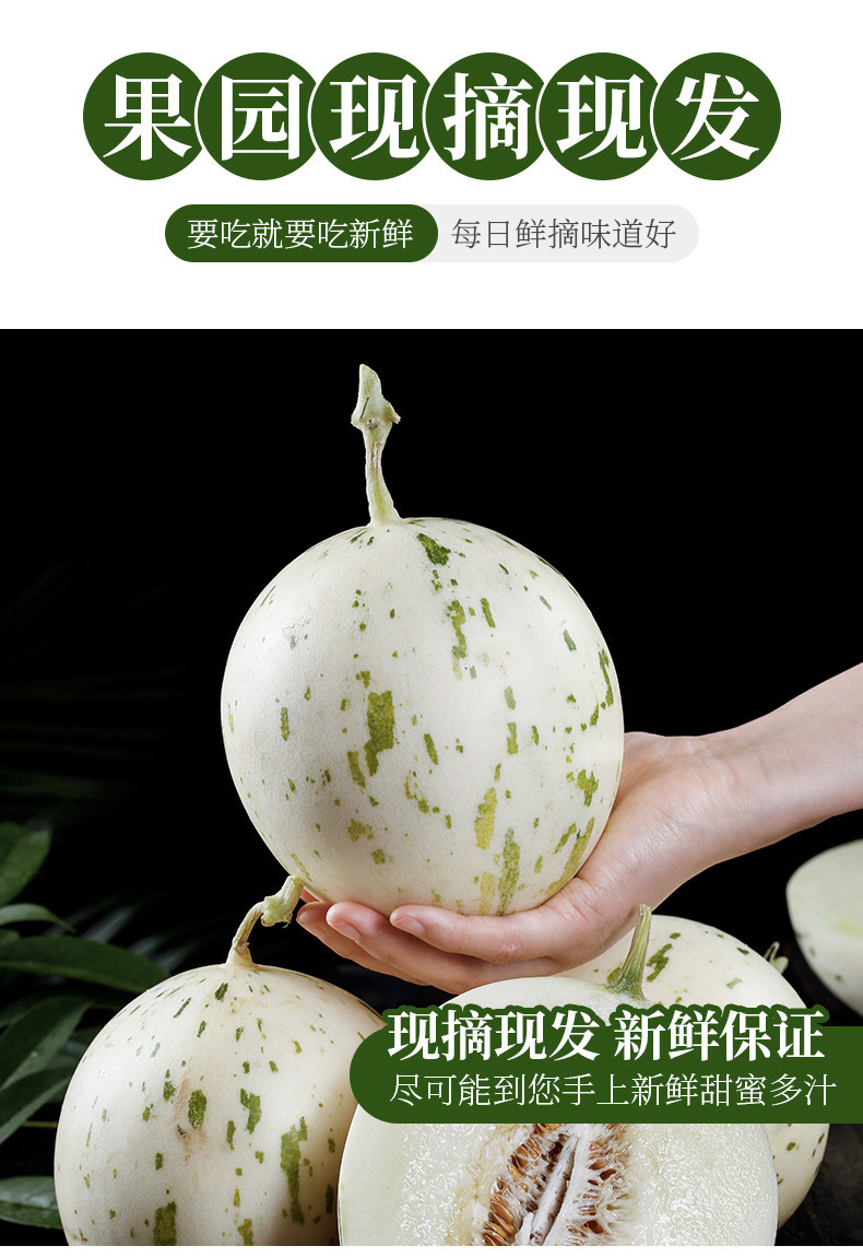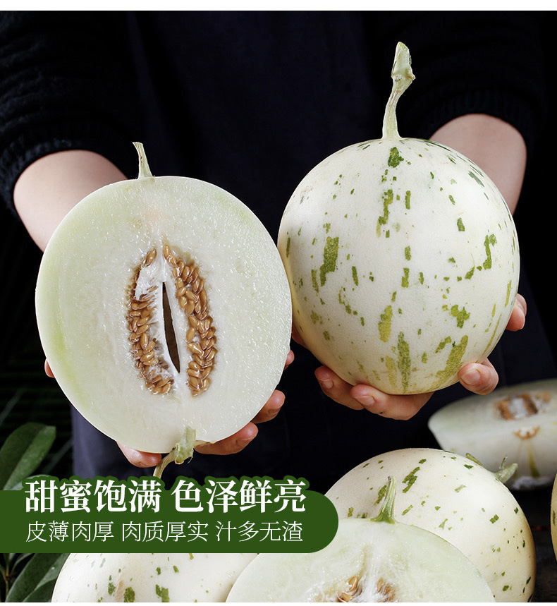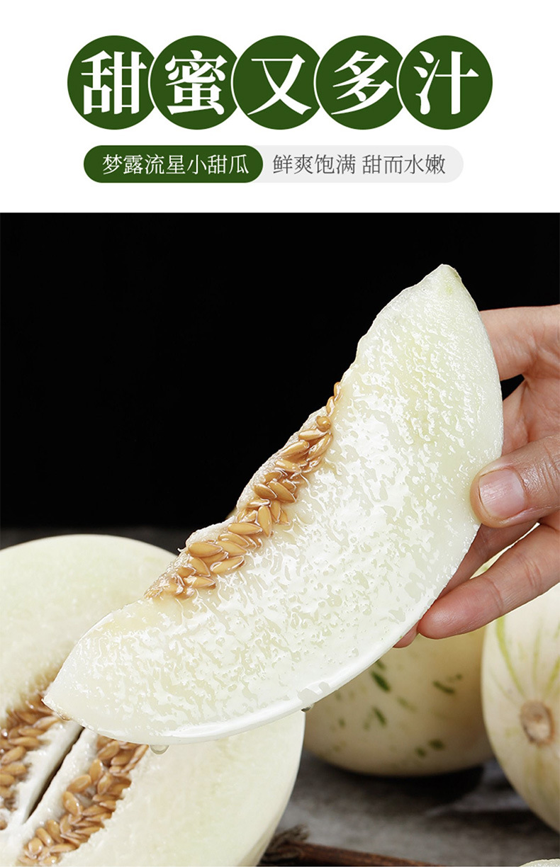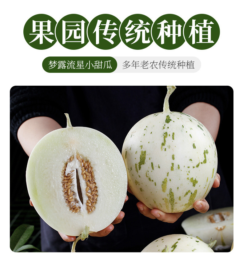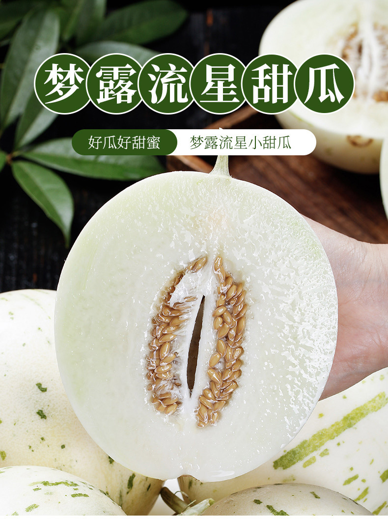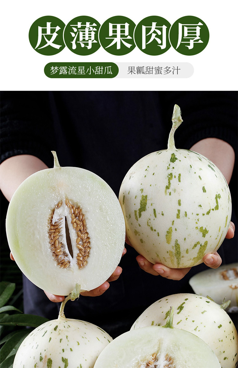 【蜜瓜界女神!梦露流星小甜瓜】冰淇淋口感,皮薄肉厚,爆甜多汁!产地现摘现发,香甜可口,
