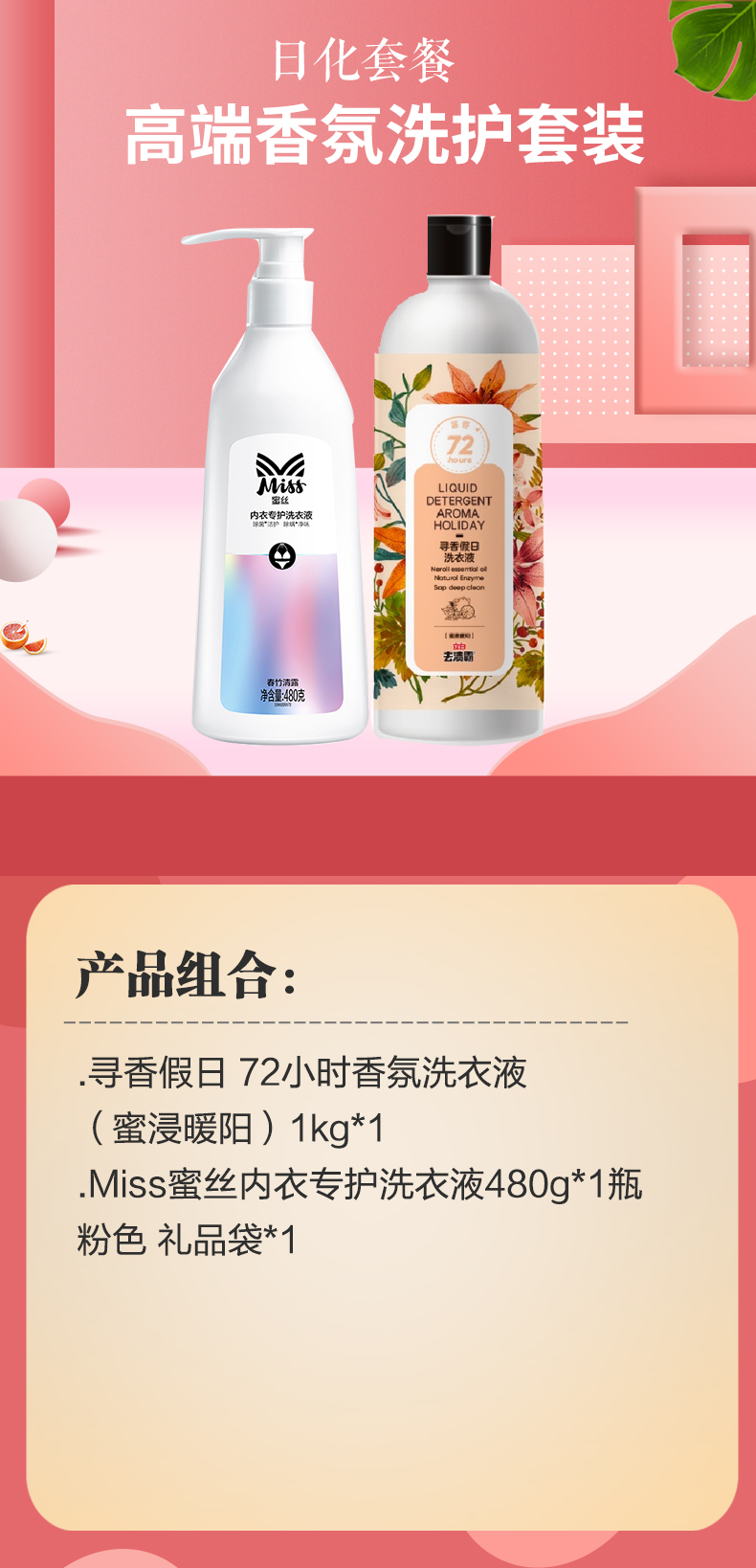 立白 高端香氛洗护套装(寻香假日香氛洗衣液1kg+Miss内衣专护洗衣液480g)