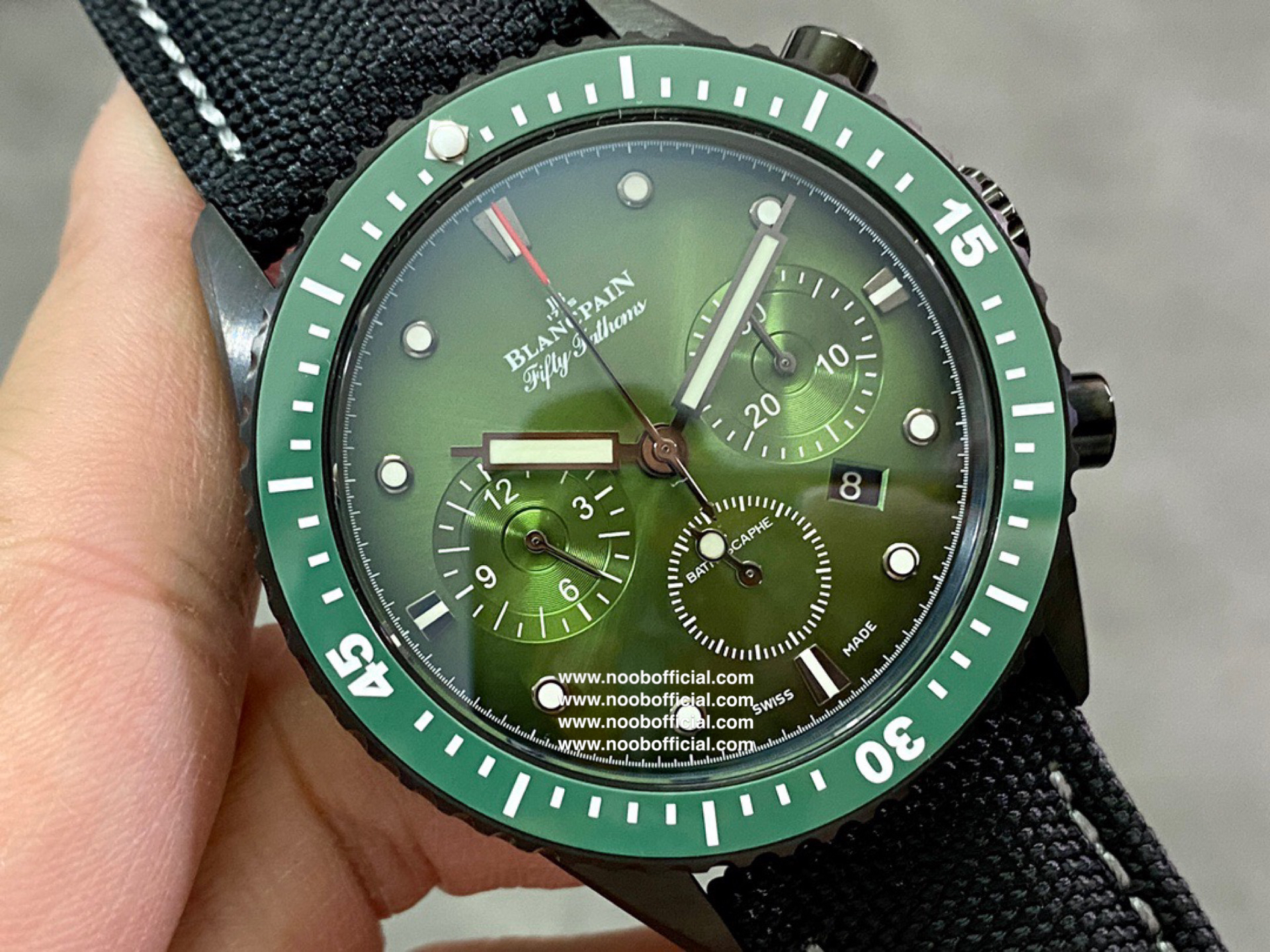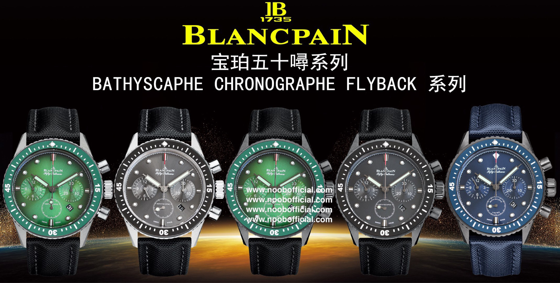 NOOB宝珀五十寻计时深潜器飞返计时码表问世了,直径43mm。