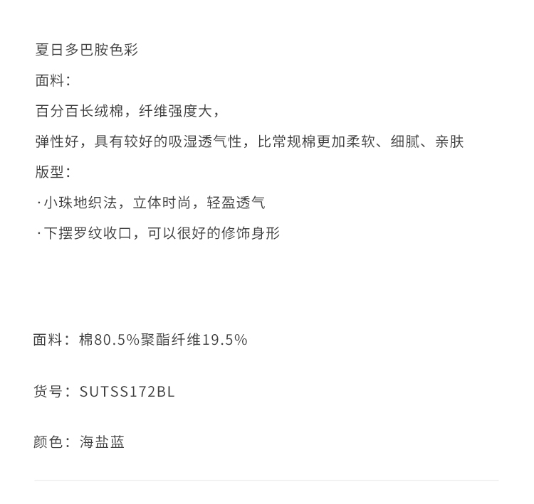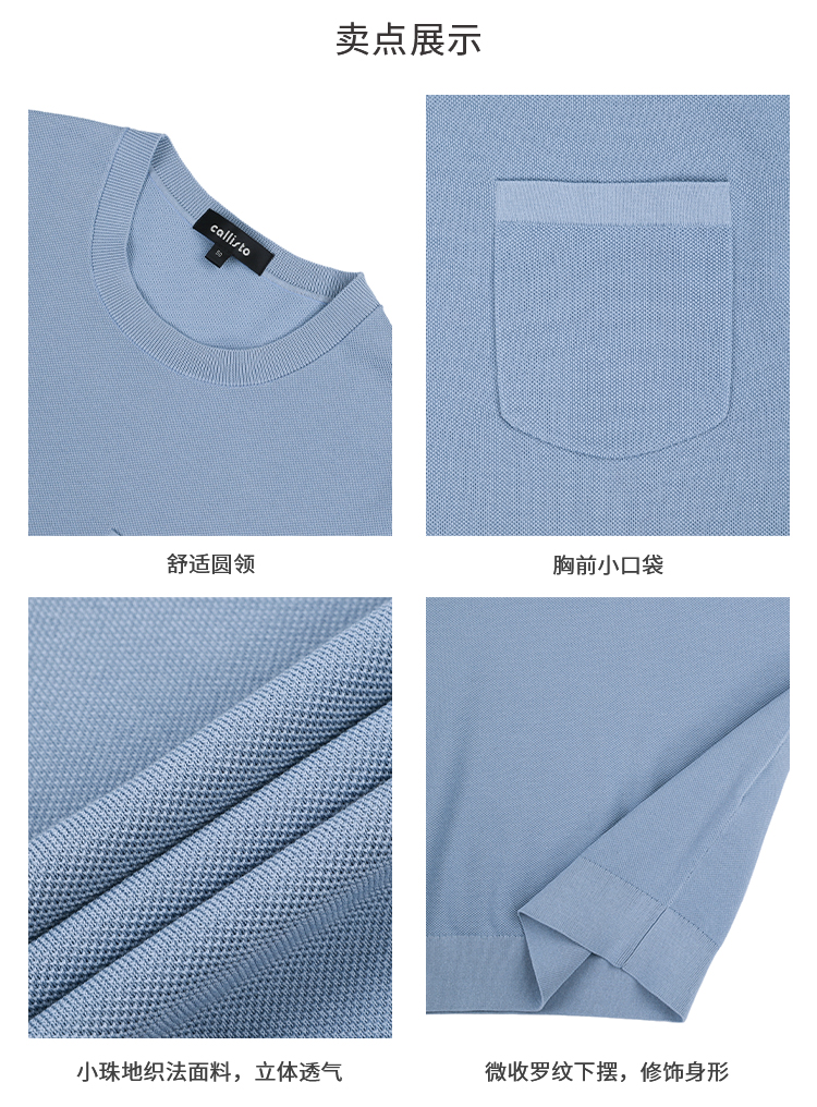 callisto海盐蓝长绒棉弹力T恤