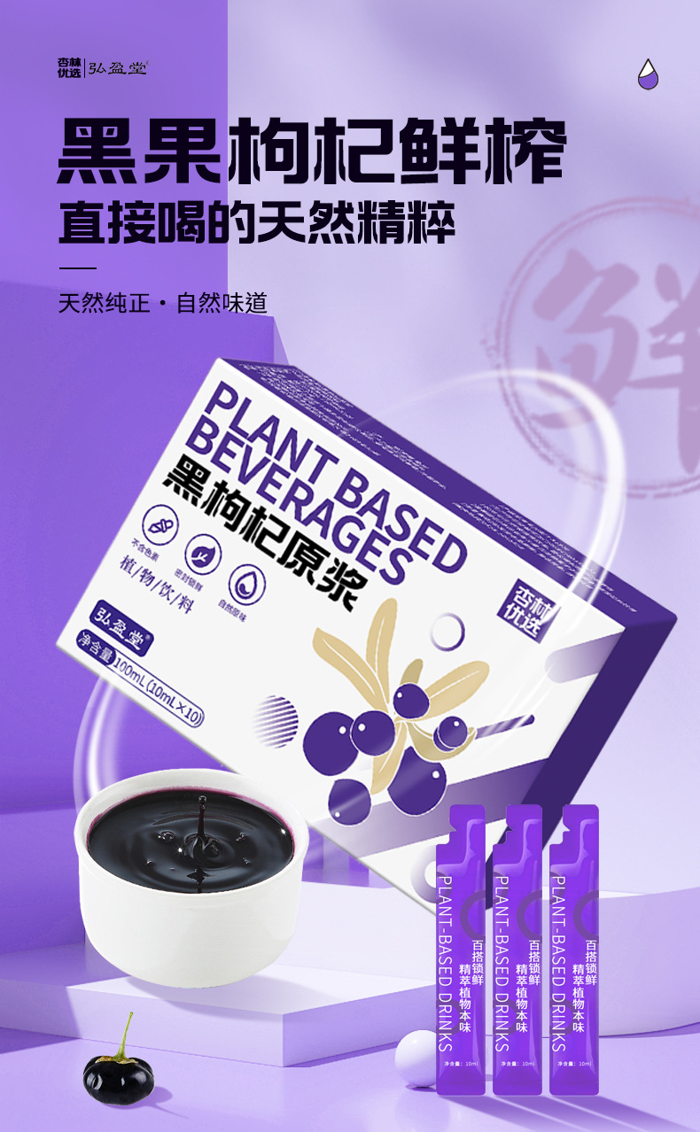 【开袋即饮!杏林优选黑枸杞原浆】方便快捷,花青素圆角便捷易撕小条开袋即饮浓缩原浆健康