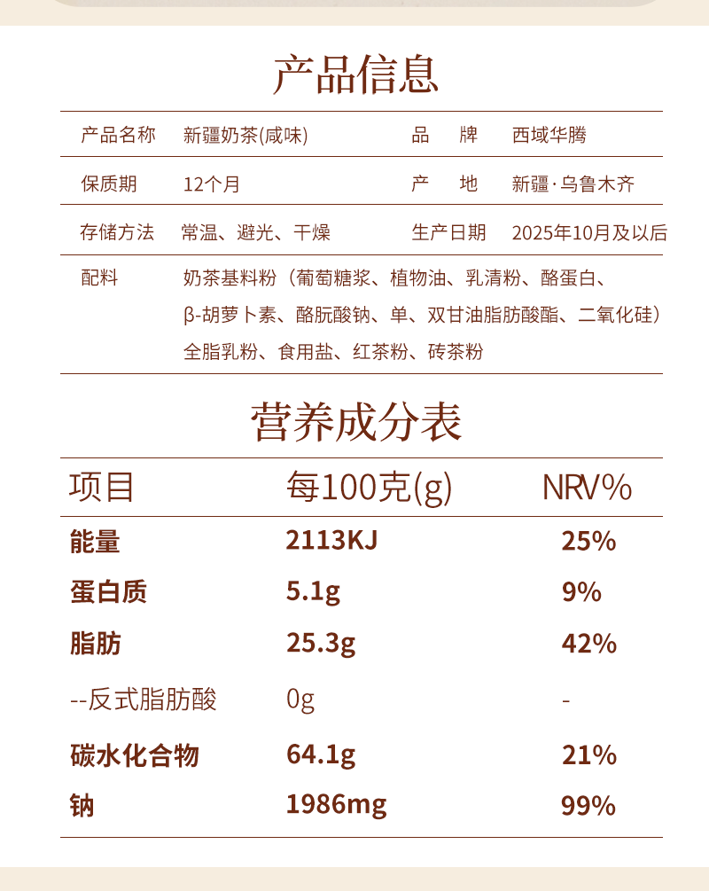 【西域华腾】新疆奶茶粉(咸味&原味)300克盒