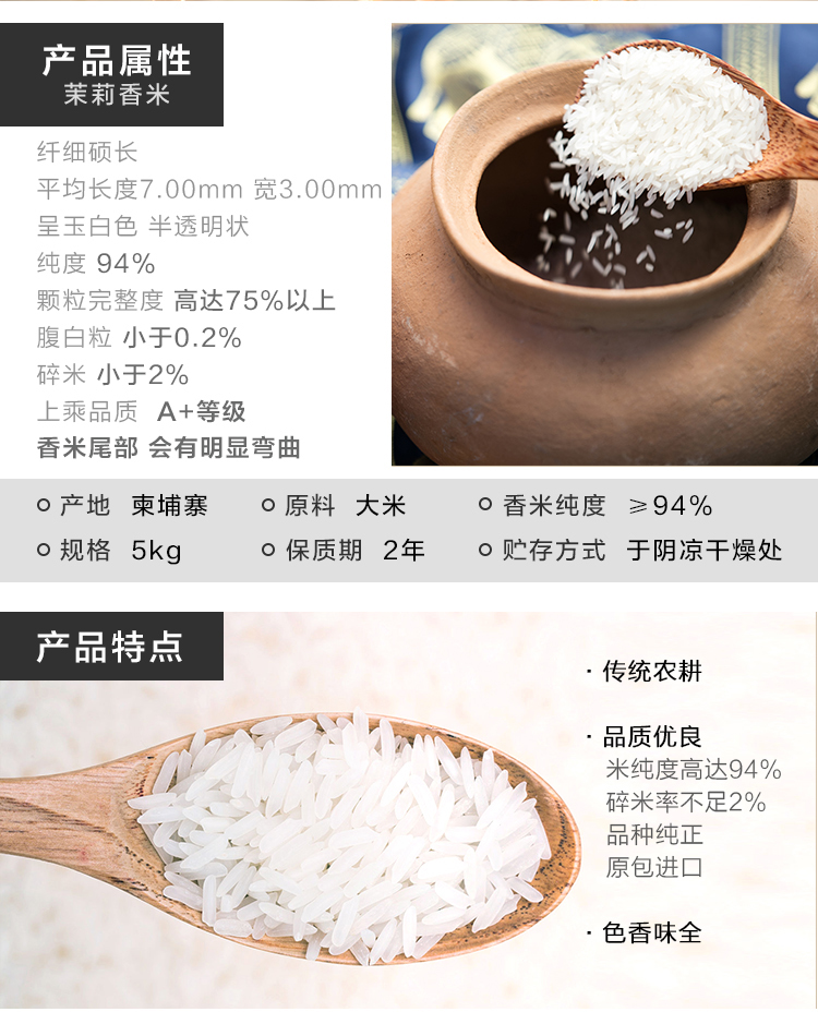 【严选】柬埔寨香米米香清新滑而不黏米粒松软富有嚼劲 柬埔寨香米5kg (厂家直发)