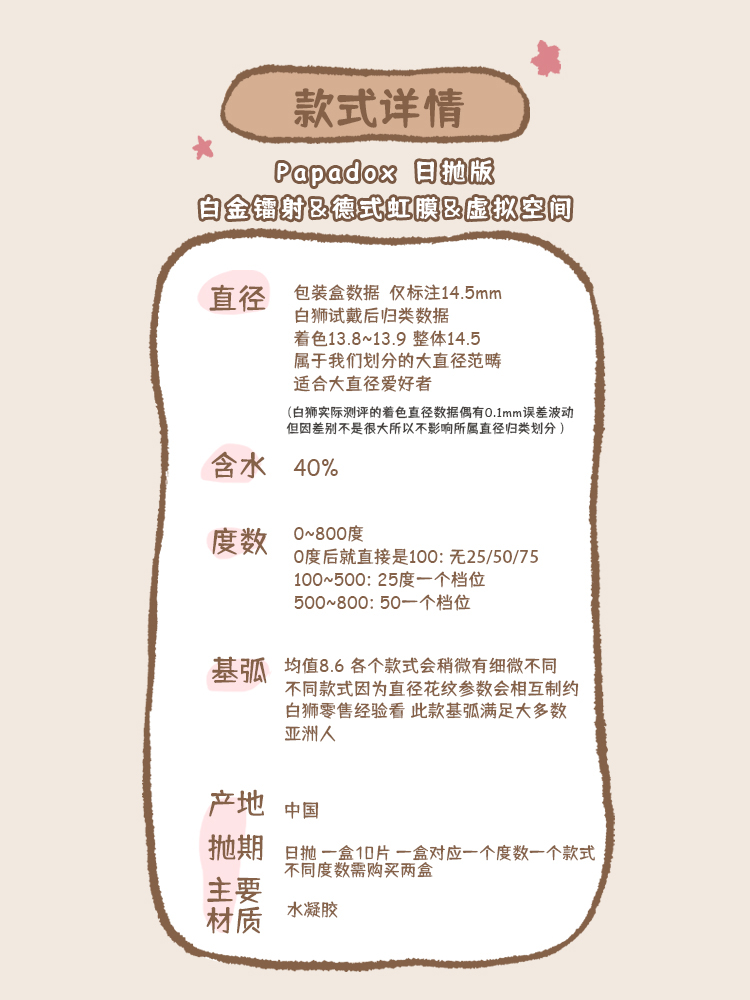 Papadox旗下 ·白金镭射&德式虹膜&虚拟空间|14.5mm白狮参考着色大直径|日抛 一盒十片装