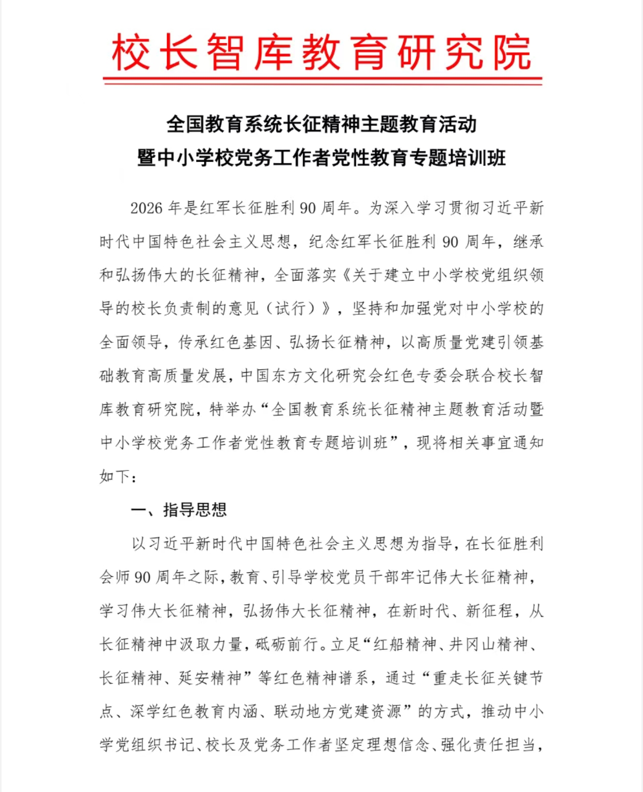 全国教育系统长征精神主题教育活动暨中小学党务工作者党性教育专题培训班 弘扬长征精神 传承红色基因