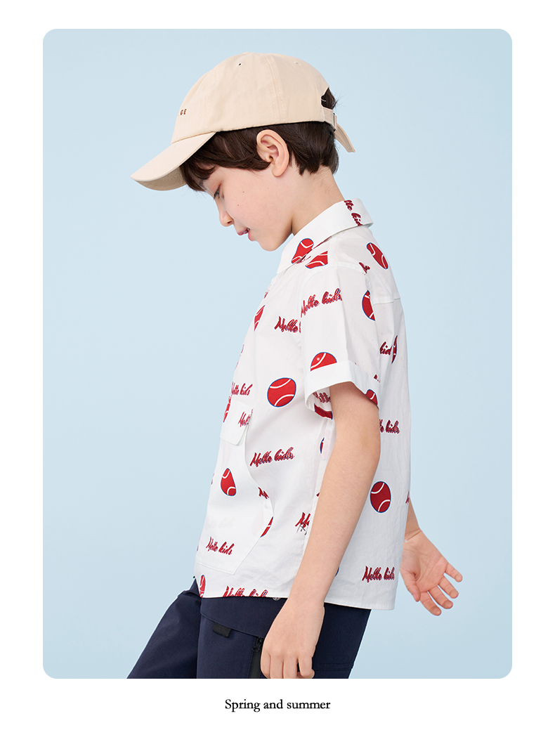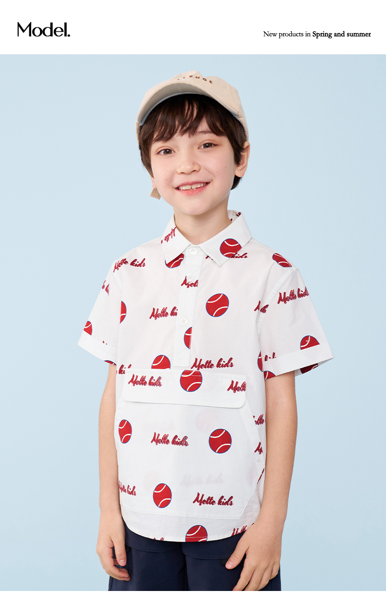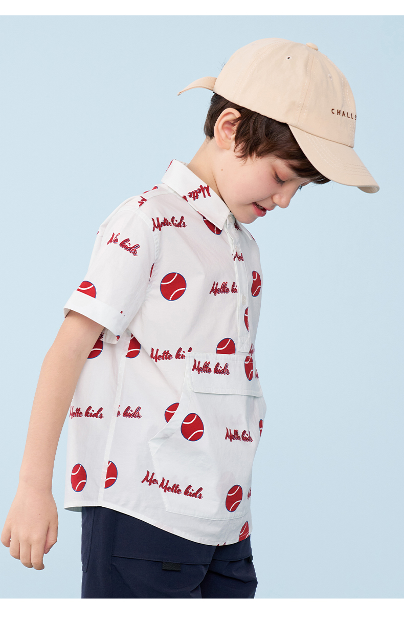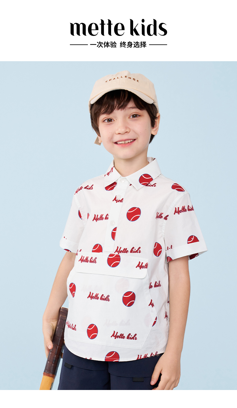 mettekids男童短袖衬衫夏季儿童洋气休闲衬衣中大童字母印花上衣