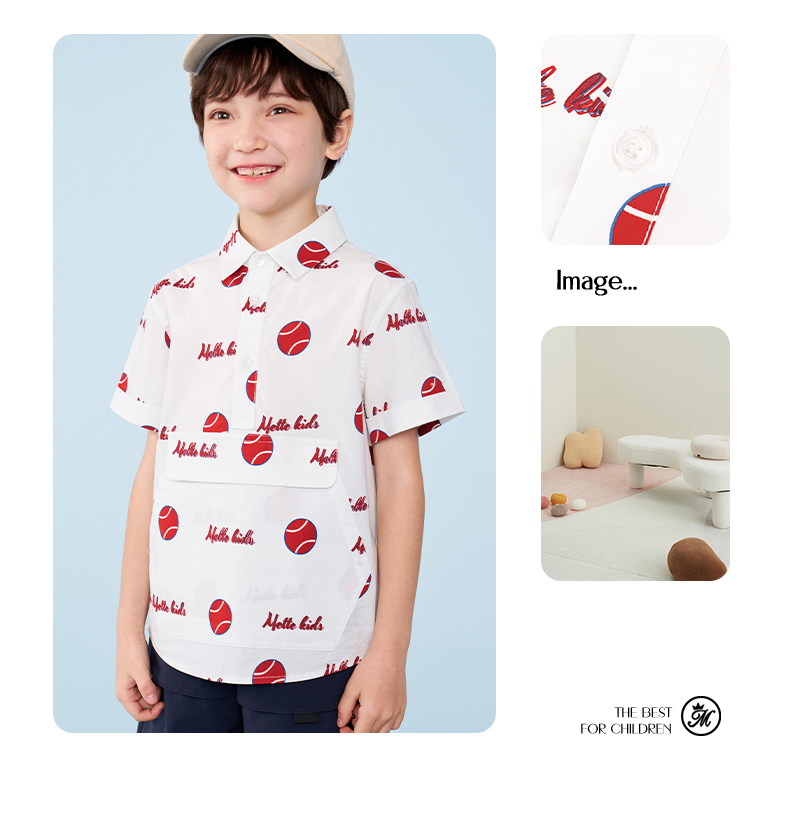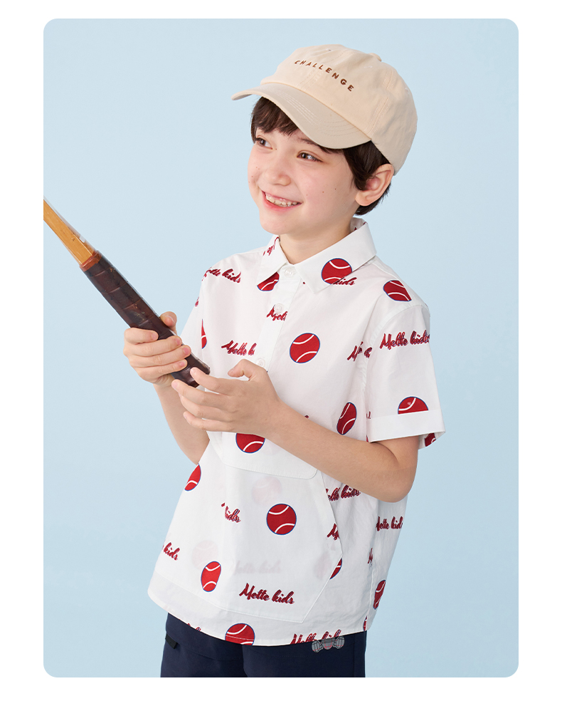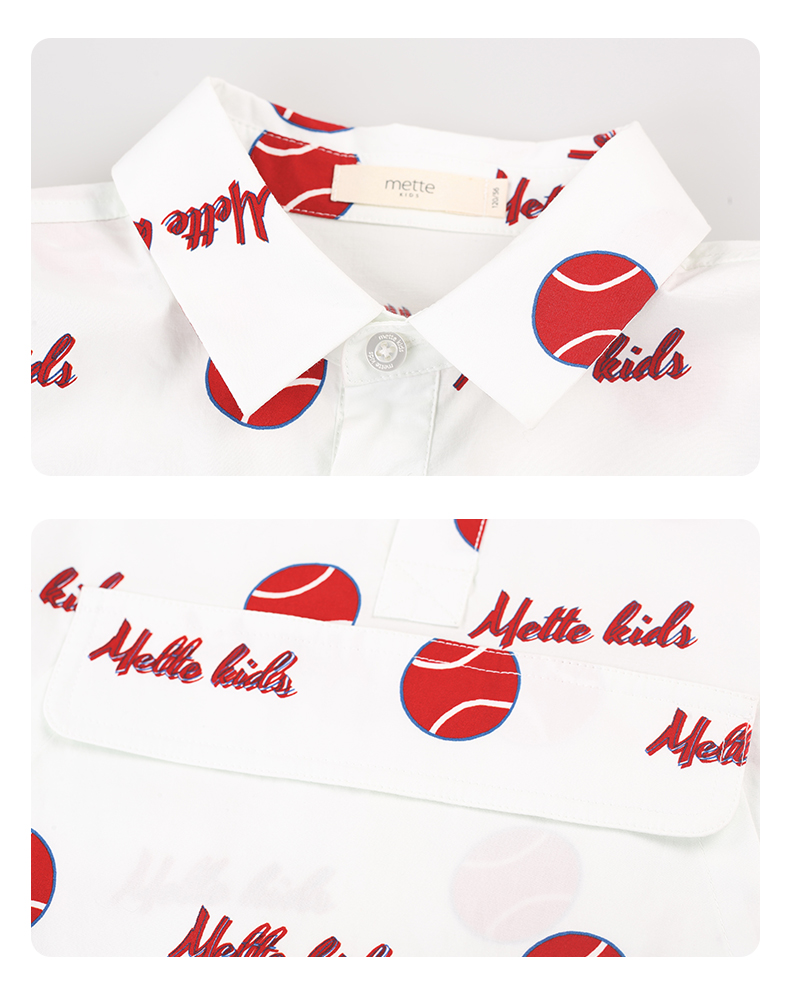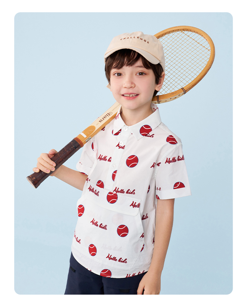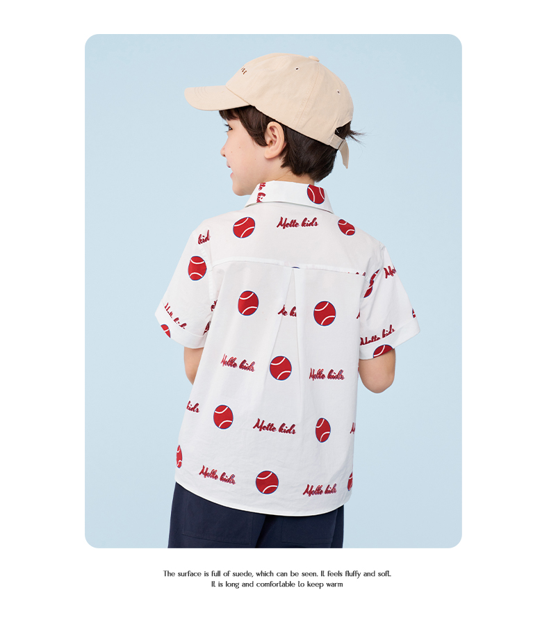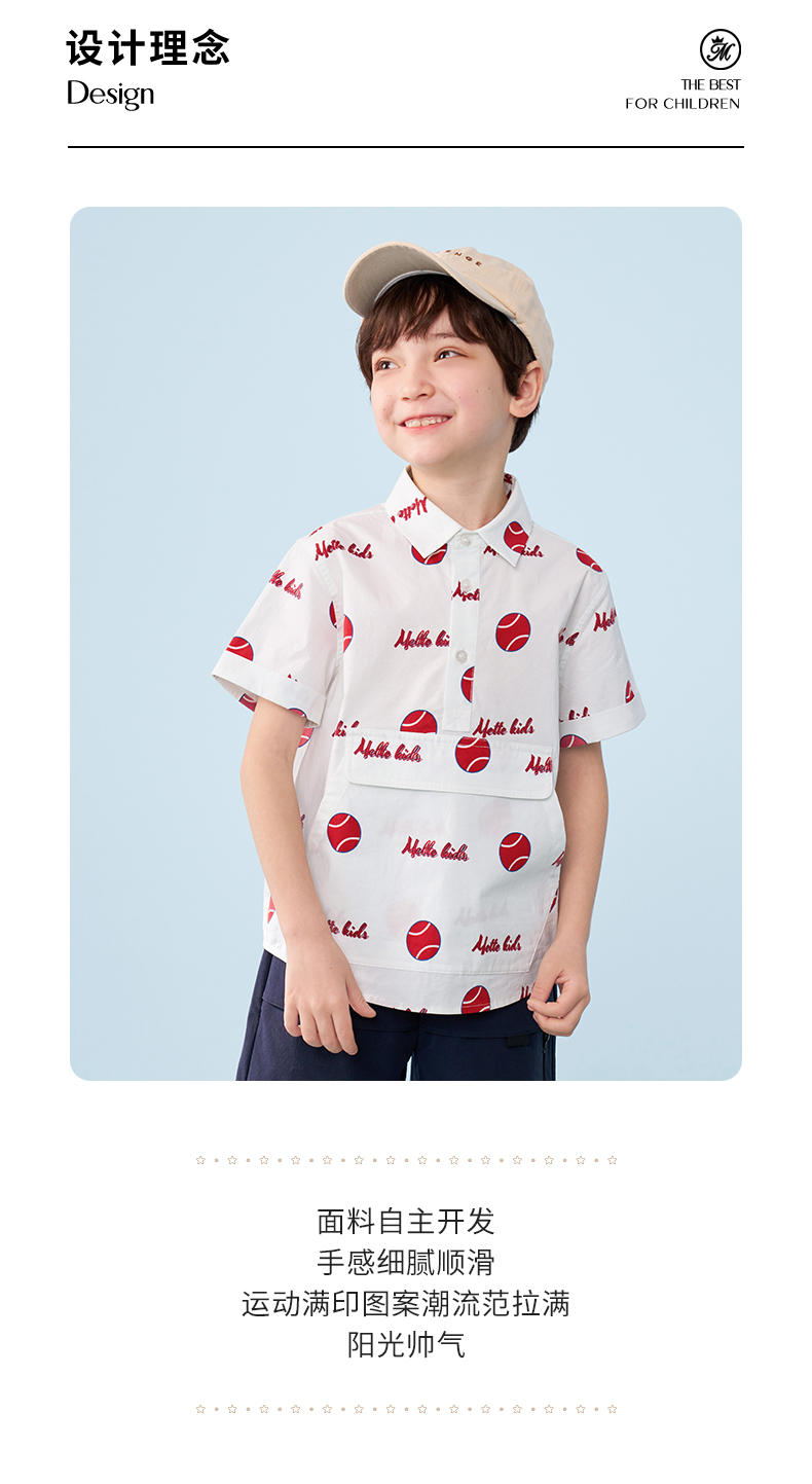 mettekids男童短袖衬衫夏季儿童洋气休闲衬衣中大童字母印花上衣