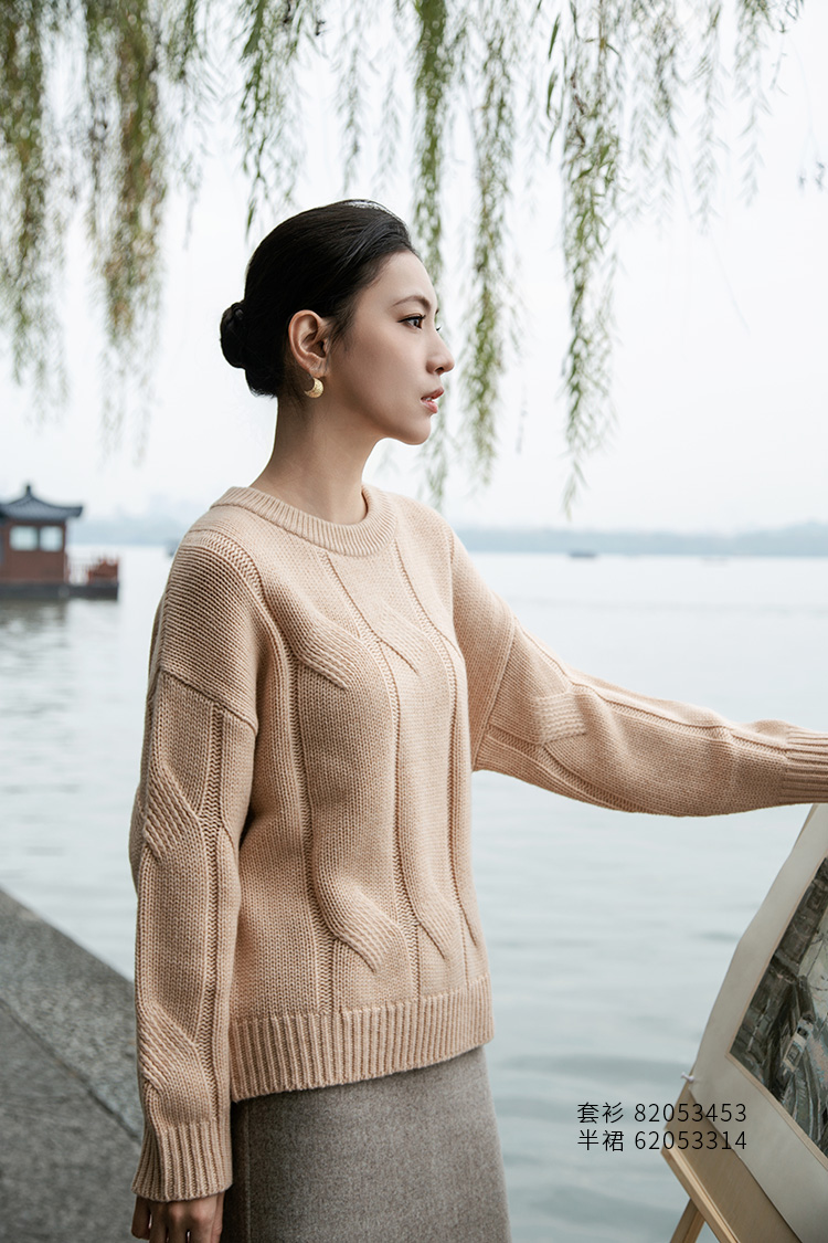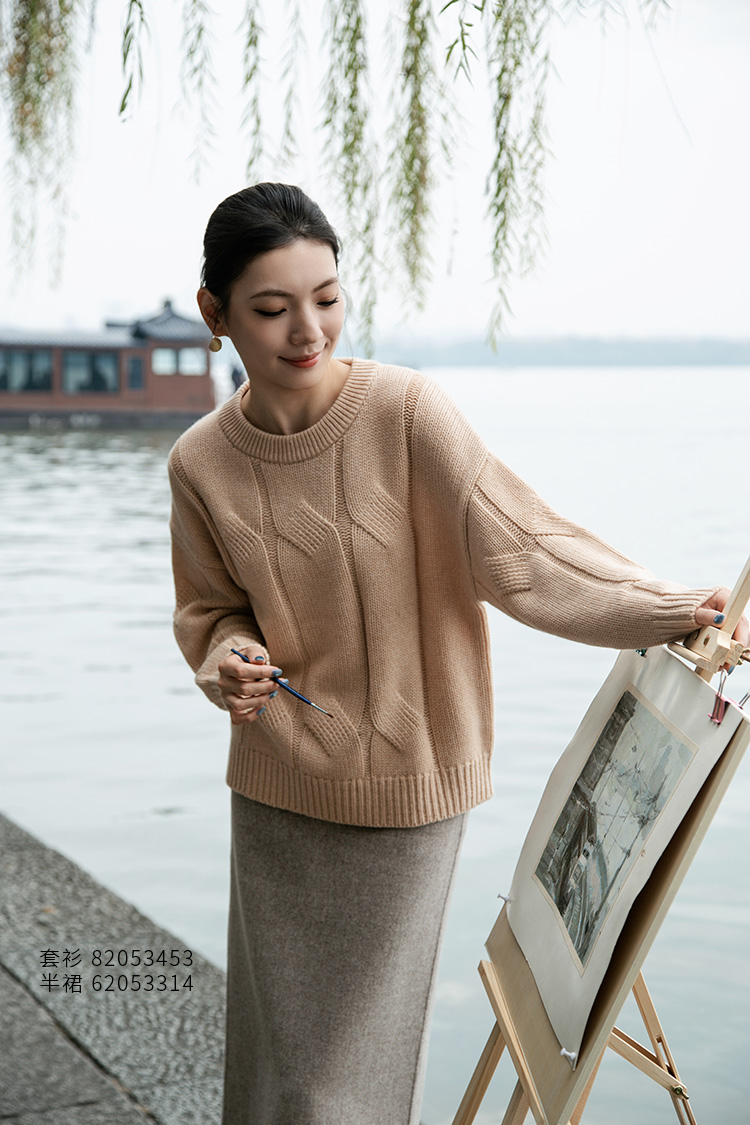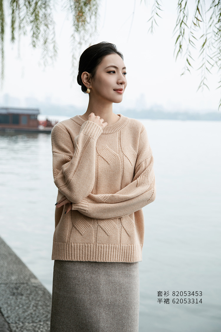 【粗棒针绞花羊绒衫】羊绒世家秋冬新款女士100%山羊绒圆领保暖针织衫
