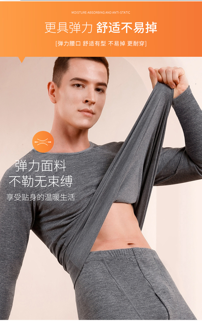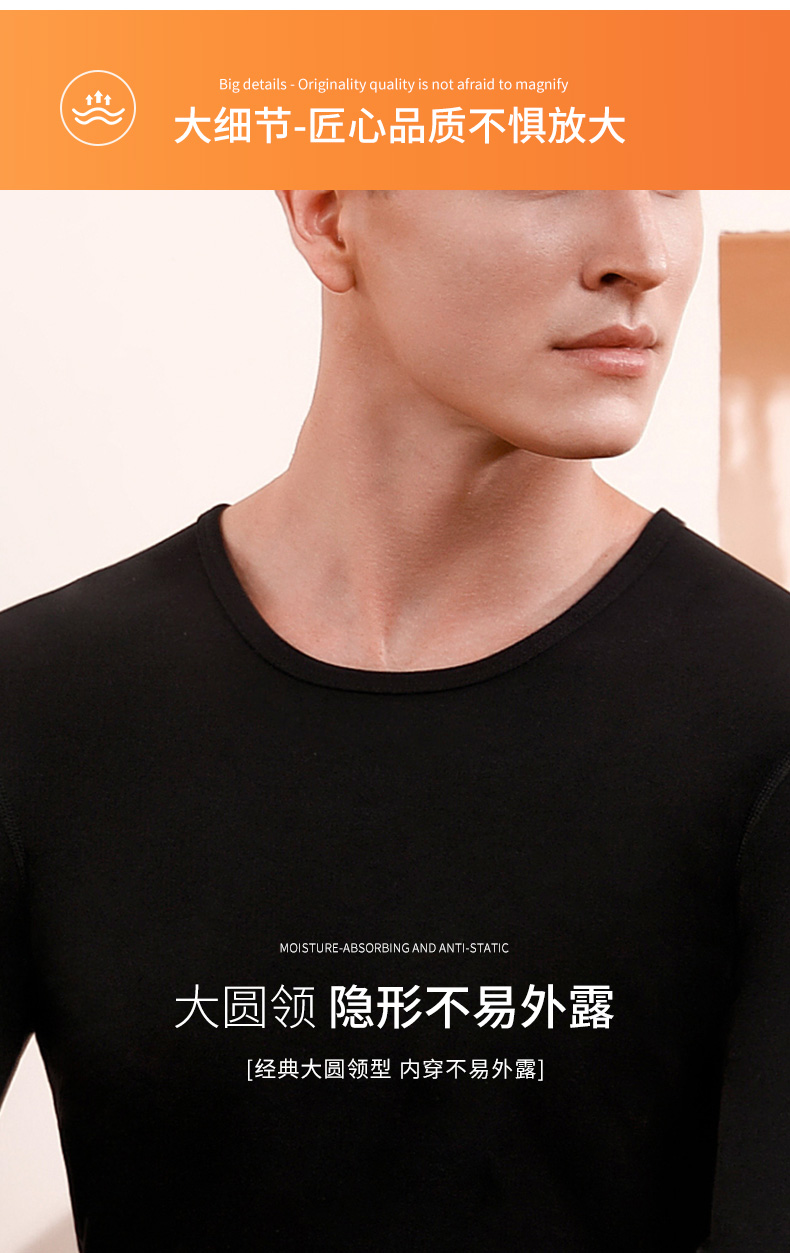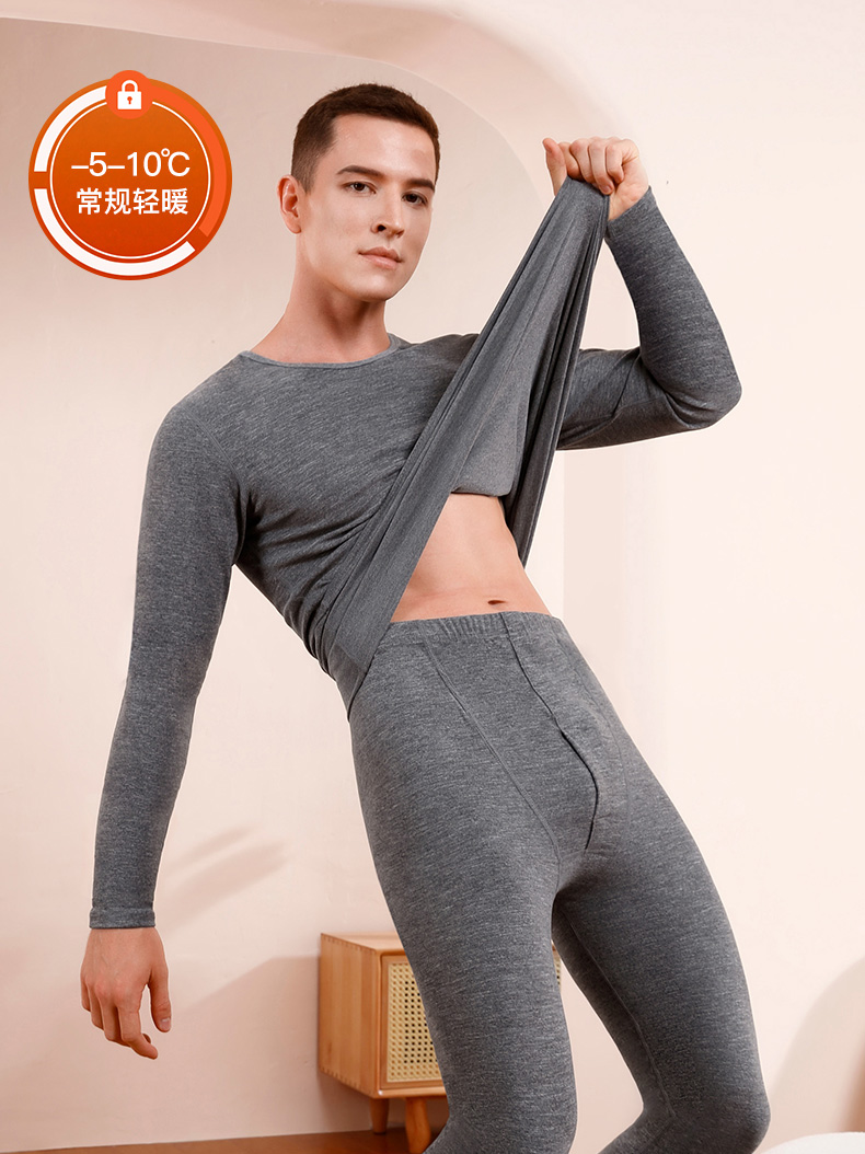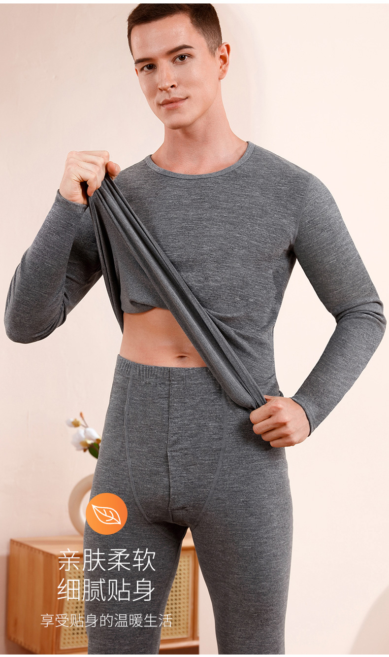洁丽雅男士保暖套装圆领磨毛保暖修身亲肤秋衣秋裤保暖内衣男士