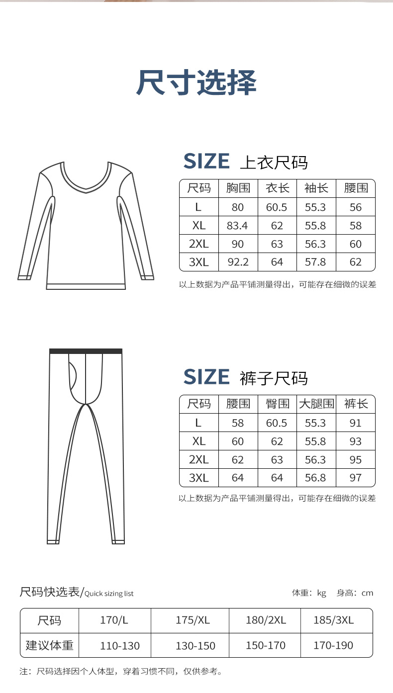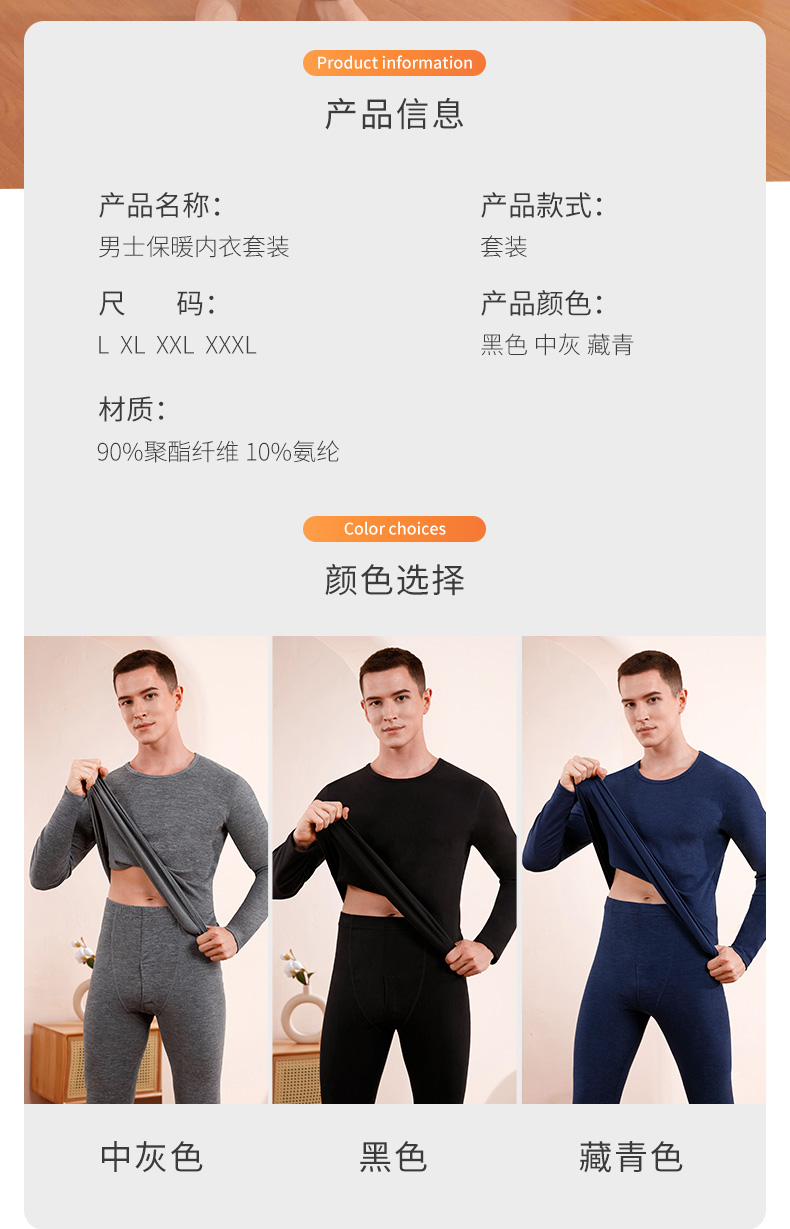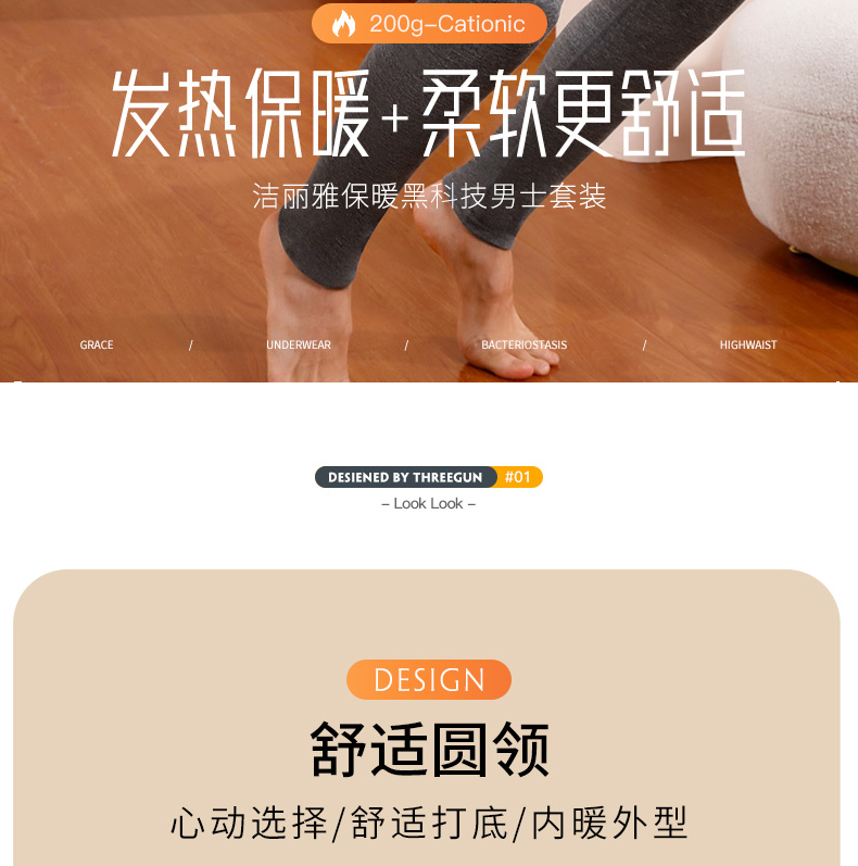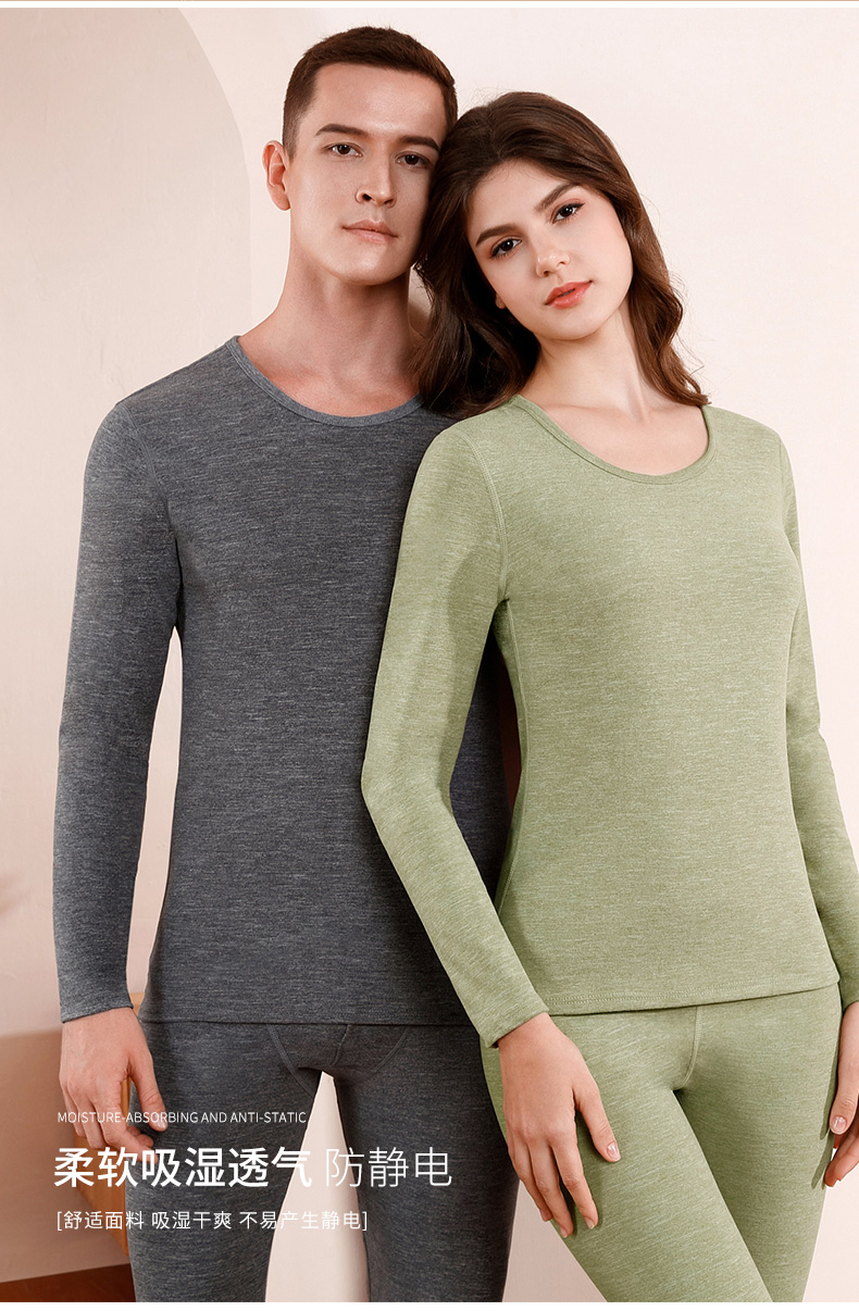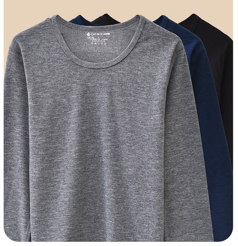 洁丽雅男士保暖套装圆领磨毛保暖修身亲肤秋衣秋裤保暖内衣男士