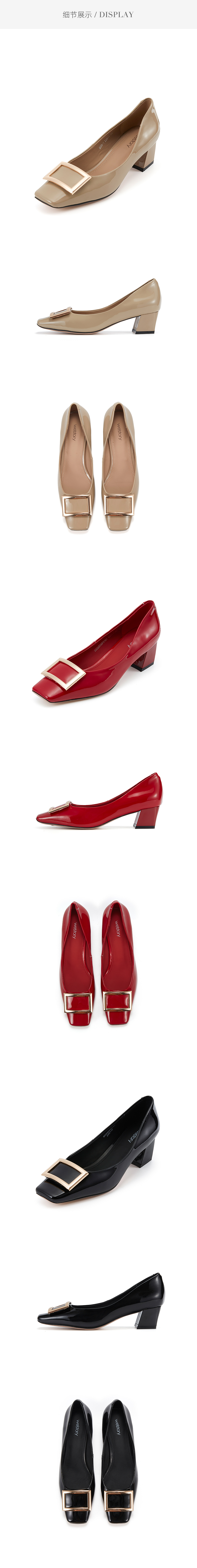 westory2023夏季新款通勤OL单鞋女浅口粗跟一脚蹬百搭女鞋55731