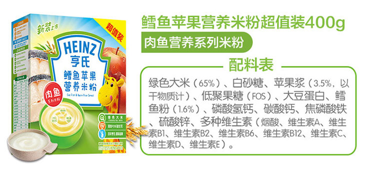 亨氏鳕鱼苹果营养米粉2段400G