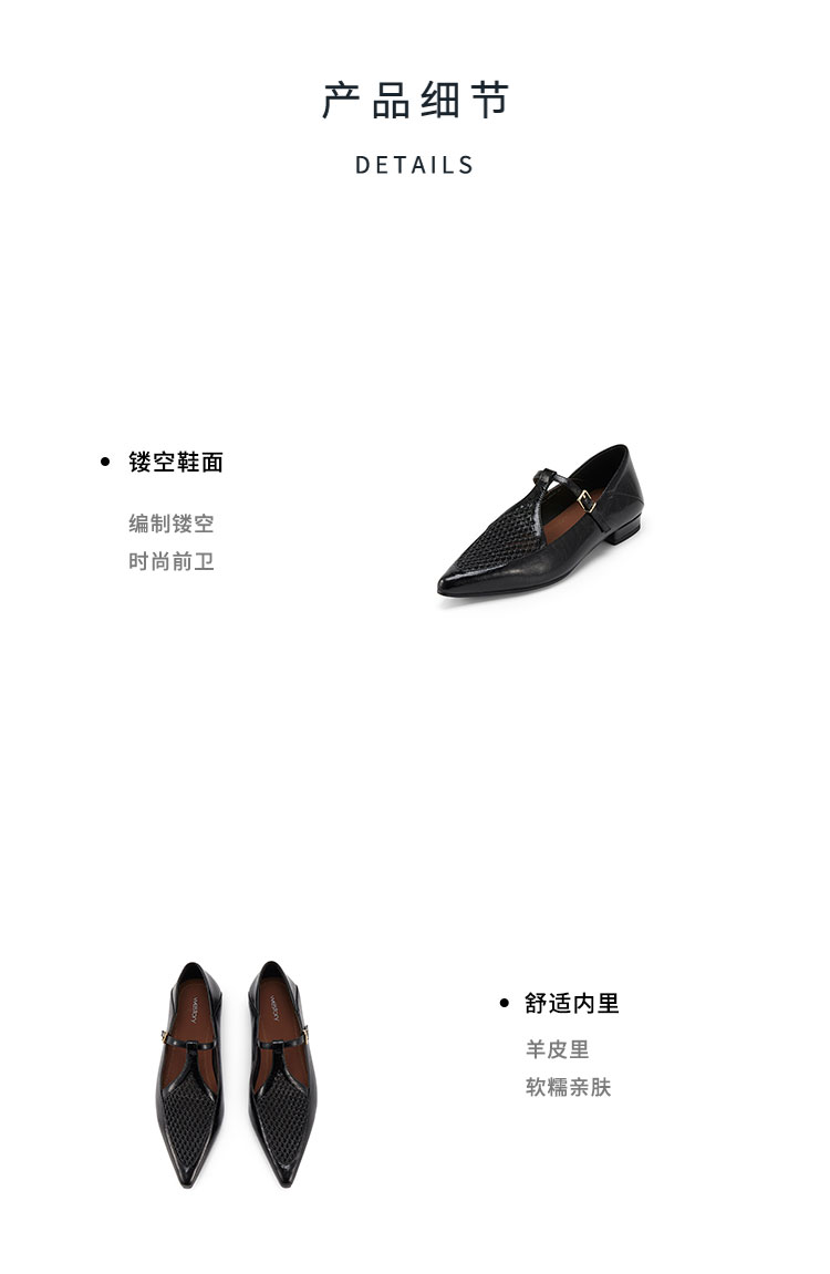 Westory2025年春季平底尖头镂空玛丽珍休闲浅口单鞋W25AH58021