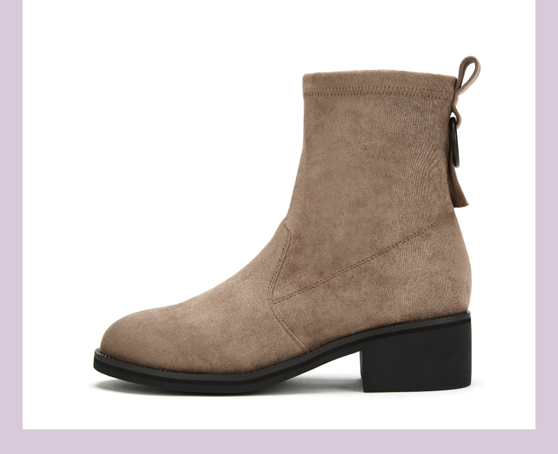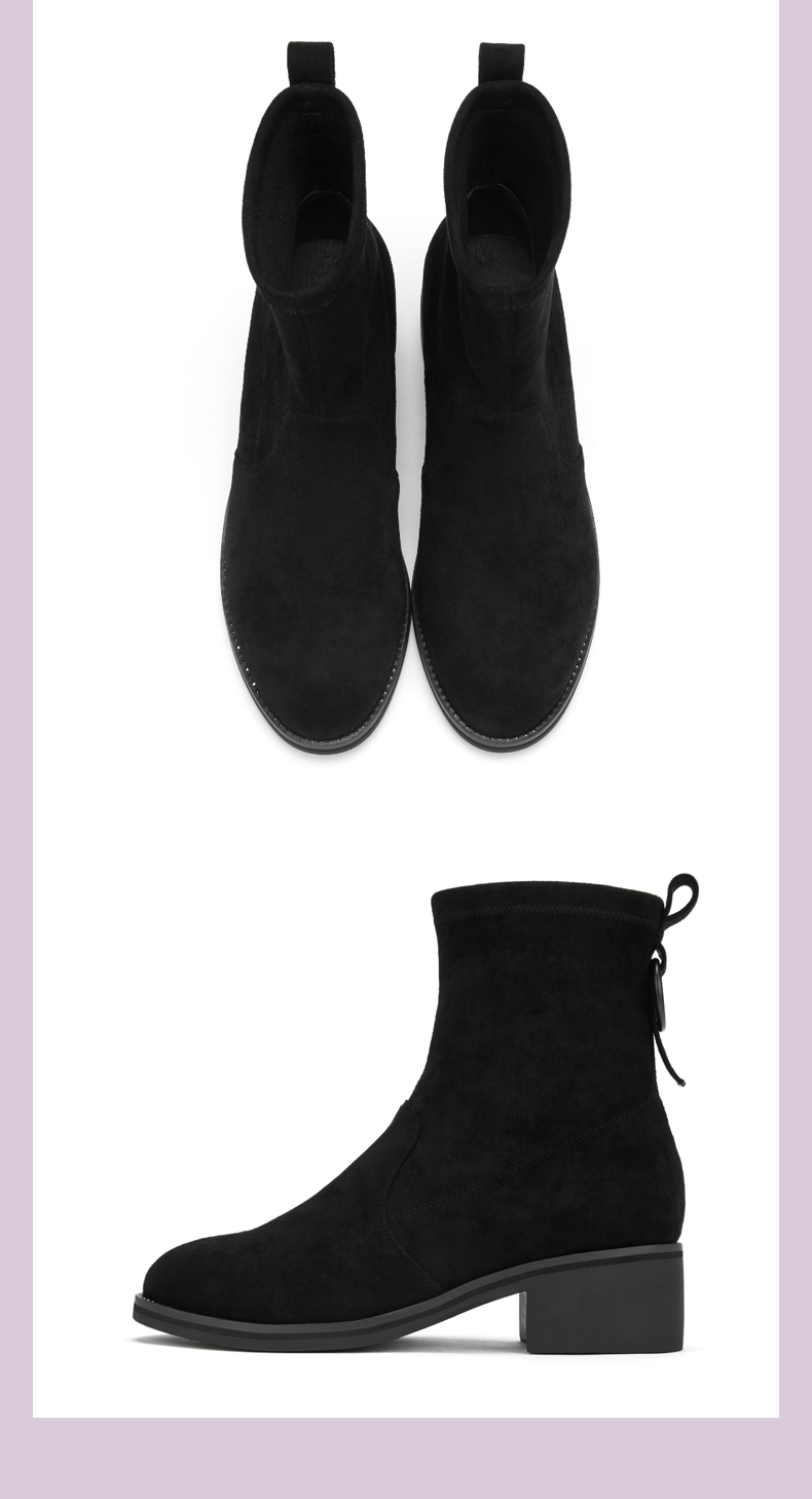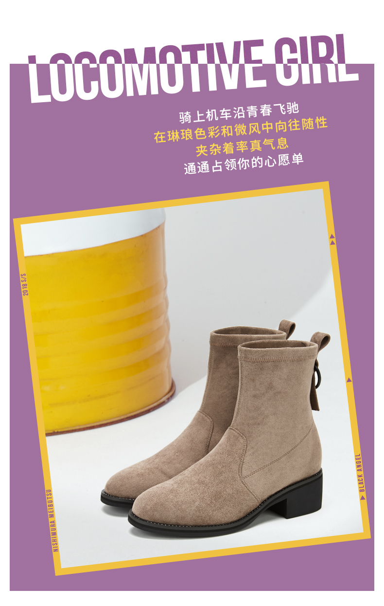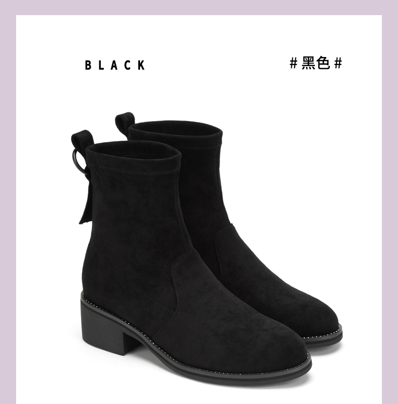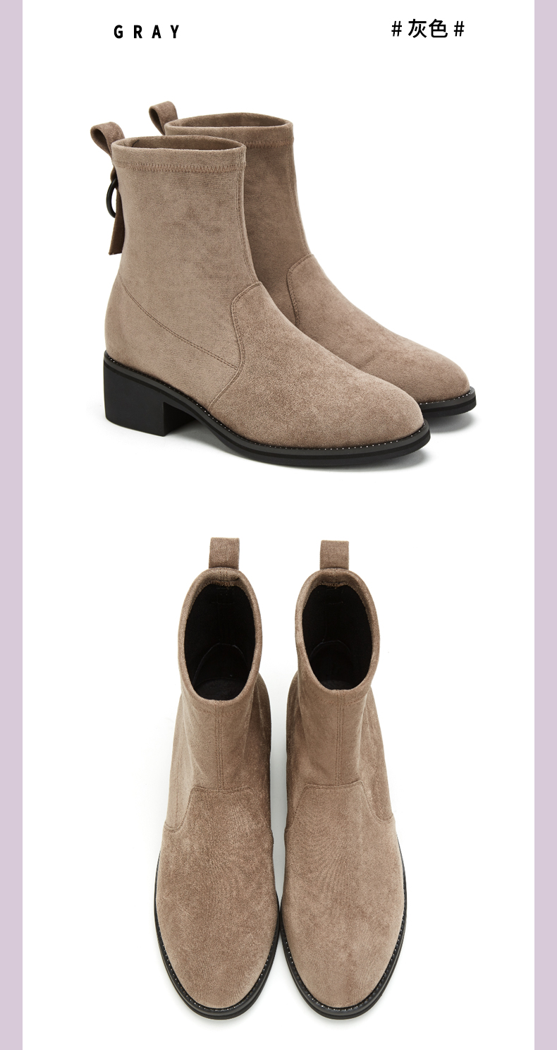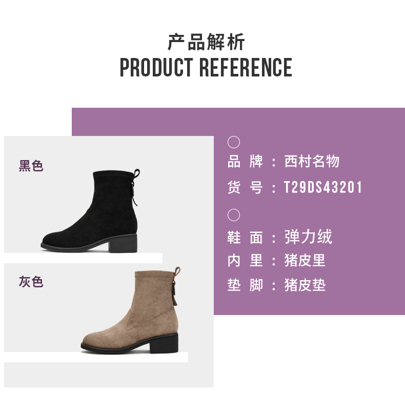 西村名物2020冬季新款时尚短靴女中跟网红百搭弹力靴T29DS43201